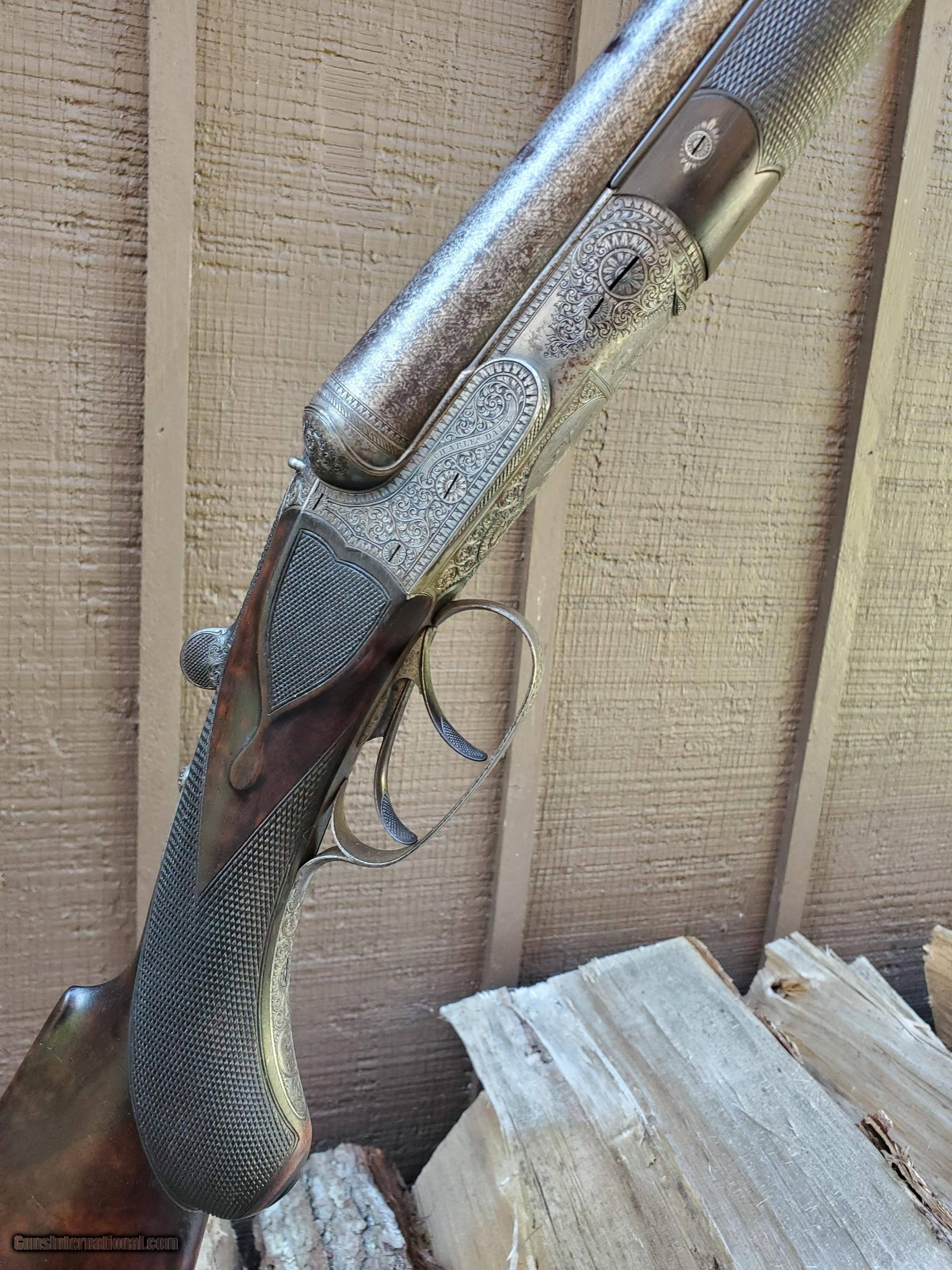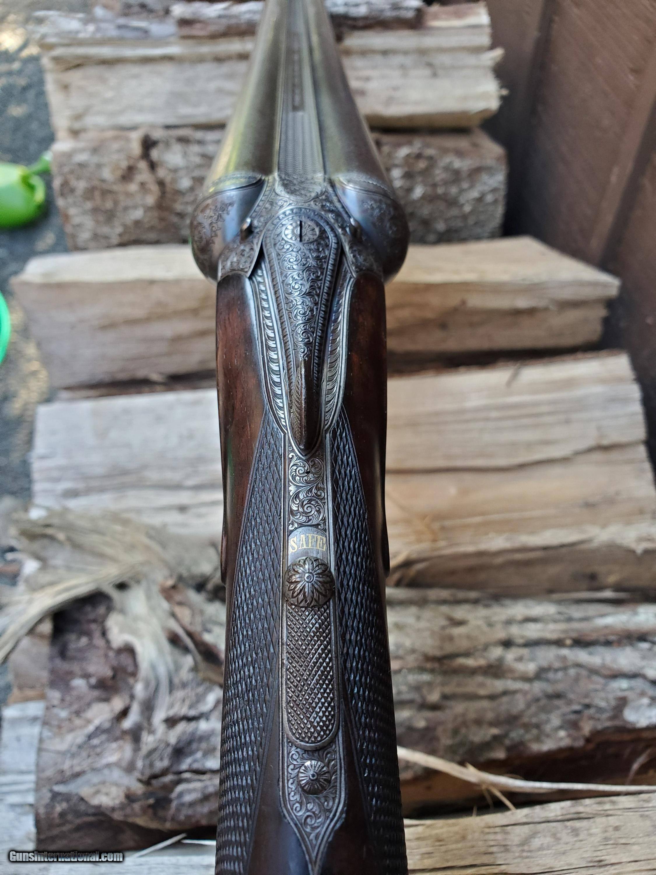 Description: NEW LOWER PRICE! Beautiful, partially restored Diamond Quality Lindner in 16ga with 26 inch barrels that ring true. Barrels have been cut from 28" but still balance ahead of hinge pin. Full coverage engraving on all metal furnishings with some original case colors remaining. All these years later, the action closes like a bank vault. Impeccable workmanship that is second to none (the kind Purdey owners think they're getting). Contact me with any questions or requests for more pictures! SOLD Antique: Yes Shotgun Gauge: 16 Gauge Manufacturer: Charles Daly Model: Diamond Serial Number: 3692 Barrel Length: 26 Chambers: 2 1/2 Ejectors: Yes Condition: Very Good Metal Condition: Very Good Wood Condition: Very Good Bore Condition: Very Good with light pitting at muzzles Barrels: Damascus Triggers: Double Stock Comb: 1 5/8 Stock Heel: 2 7/8 Stock Cast: Neutral Butt Pad: Horn and checkered LOP: 14 1/8 Rib: Solid Weight: 6lbs 7oz Manufacture Date: 1892 Choke Left: Skeet Choke Right: Cylinder Item Location: Union, ME |
