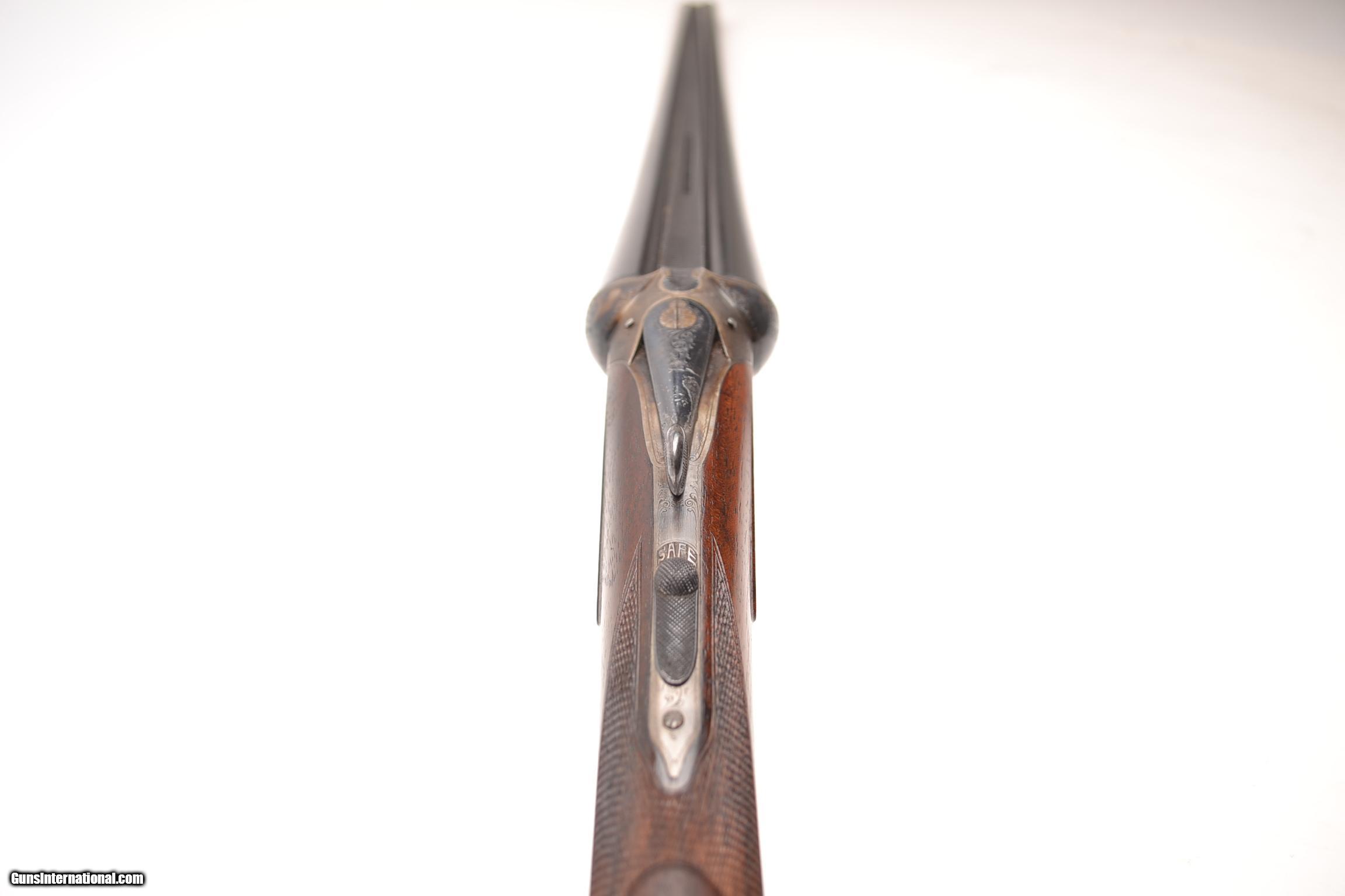 Description: Charles Daly Superior Grade, 20ga., 26″ barrels choked Cyl/Cyl. Almost never encountered, small bore 20ga. weighing exactly 5 lbs. This gun was built in March 1932 and is 100% new and unfired not a 99% gun but new and unfired. All the case color, all the blue, all the wood finish. Shotgun has a scalloped frame, double triggers, auto ejector, matte rib, schnable forend, horn butt, untouched screws, untouched gun in any way, shiny new. Not even top lever wear or forend latch wear. Just a new gun that is beautifully scroll engraved, when you open and close it, it is tight. All original gulling on face of gun, not 1 mark from shooting. Inv: 38111 14 1/2″ x 1 3/4″ x 3″ Price: $16,995 SOLD |
