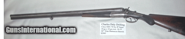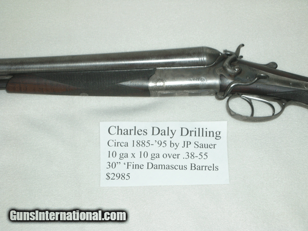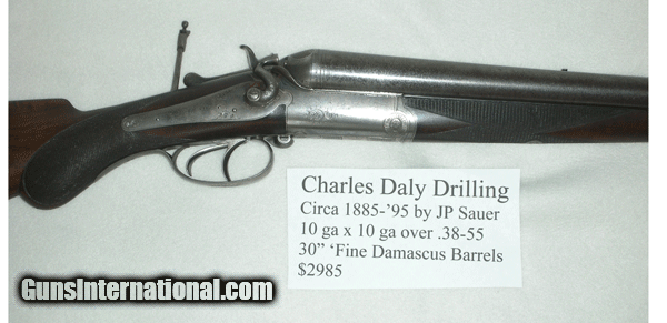 Rare Drilling by Charles Daly, mfg by JP Sauer, 10x10 Ga. over .38-55 Win. 30" Damacus Barrels, Good Condition justifies its asking price.