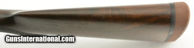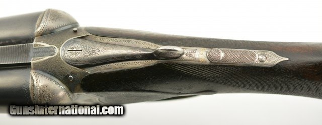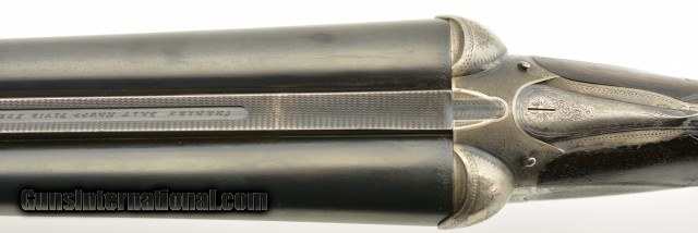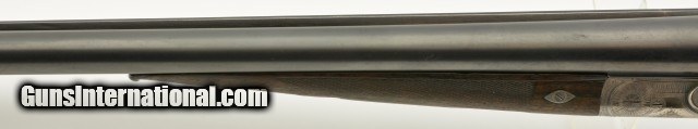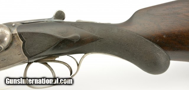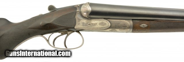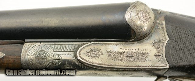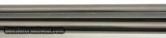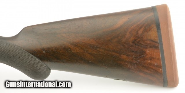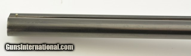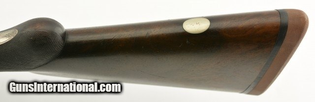Description: Serial #1935, 10 GA (2 7/8" chambers), 29 7/8 inch Krupp fluid steel barrels that have been slightly shortened, with bright, excellent bores showing slight roughness on the left tube at the muzzle rim. This is a Prussian Charles Daly side-by-side shotgun manufactured by Charles Lindner circa 1910. The extremely well built Superior Grade ejector gun with cocking indicators features an Anson & Deeley top lever action with figured walnut and accent engraving. With total production of the Prussian guns estimated at under 4000 this one falls into the second run of serial numbers having the later Lindner crossed pistols below "HAL" proof mark. In near excellent condition the barrels retain most, 90-95% of a professional reblue with some scattered light use marks marked "Krupps Fluid Steel" on the rib, rare for the Prussian models as most were Damascus. The foliate engraved receiver, having about 75-80% coverage, is mostly in the white with perhaps 10-15% of the original case color in the protected areas with excellent crisp detail throughout. The figured walnut stock and forearm are in very good plus condition with the stock solid, showing much of the original, worn fine checkering, darkened with age having some old use marks and contusions. The forend has the same fine checkering, horn tip and beautiful wood grain pattern with some chipping along the wood edges. The barrels are slightly off face but the action locks up tight with the lever resting just left of center. The action has a scalloped back, clipped fences, & raised panels and is equipped with ejectors and cocking indicators. The gun weighs in at 9lbs 7oz with 13" LOP and drops of 1" at the comb and 2" at the heel. A beautiful Lindner made Prussian Charles Daly with rare Krupp steel barrels that will be a pleasure to shoot and the envy of many. FFL or C&R SOLD Curio/Relic: Yes |
