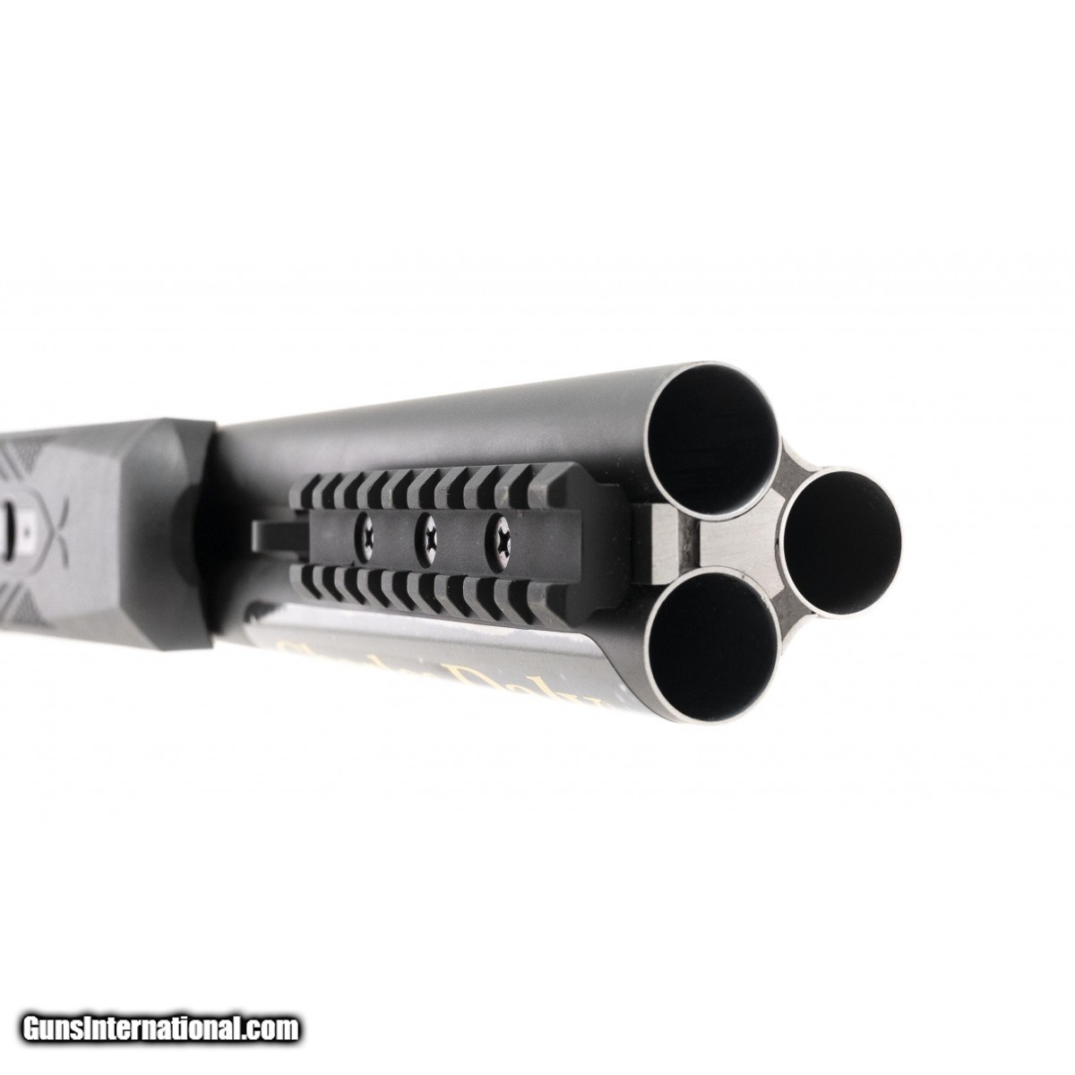 Triple barrel. Yes...triple barrel break-action shotgun with black synthetic grip and extra rifle stock. New. UPC: 8053800940481