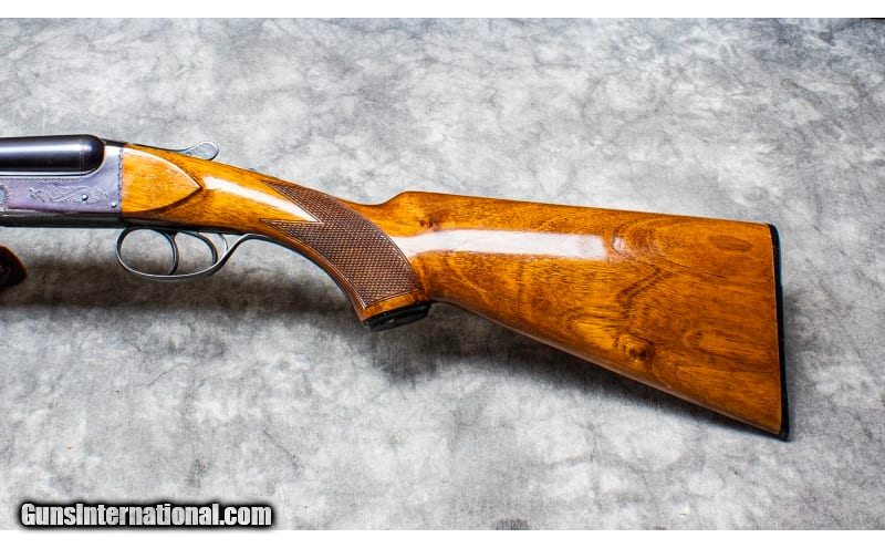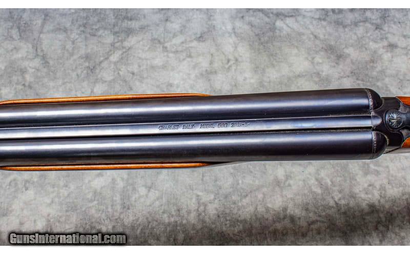 Description: Charles Daly 500 In 20 Gauge. B.C. Miroku (in Kochi, Japan) manufactured the Charles Daly Model 500 side-by-side shotguns. Miroku is best known in the U.S. for producing the famous Browning Citori O/U shotguns, but all Miroku made guns are of excellent quality with fine fit and finish. Miroku produced Charles Daly shotguns from 1963 until 1976. The Model 500 was a straightforward field gun of proven design. It featured an Anson and Deely type boxlock action with a blued receiver, a bit of simple engraving, checkered walnut pistol grip stock and moderate beavertail forend, and blued chopper lump barrels struck full length with a concave (English style) rib. Double underbolts keep the gun closed. A single bead at the end of the rib serves as the sight. The top tang mounted safety is automatic. Forward is "fire" and back is "safe." The safety works fine, but like all safeties it should never be relied on. The 500's walnut pistol grip stock and beavertail forend are hand checkered in traditional point patterns. They align the hands nicely with the target. The forend release is of the Anson push button type. The 500 was equipped with double triggers and plain extractors. Charles Daly's upscale Empire Grade model featured more engraving, a single trigger, and selective ejectors. 20 Gauge SOLD Chambers: 2 Metal Condition: Very Good Wood Condition: Very Good Bore Condition: Very Good Barrels: 28.5 Inch Weight: 96 ounces Sights: Fixed Item Location: Ft. Myers, FL |