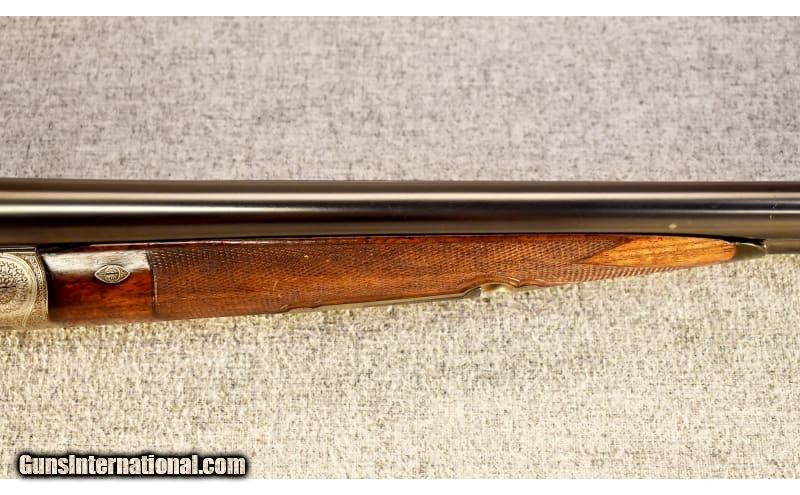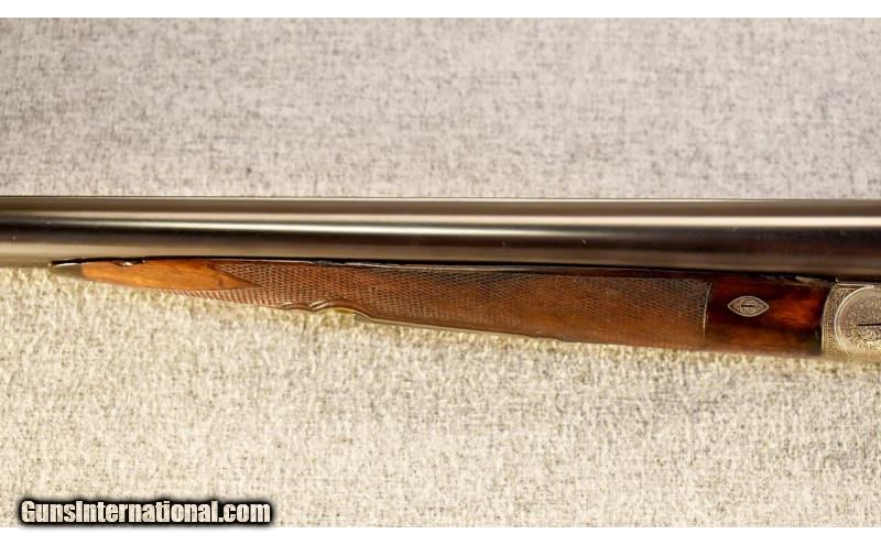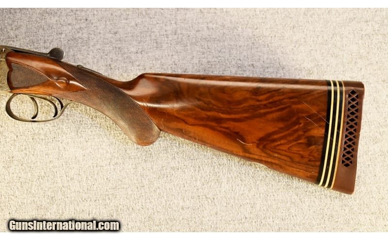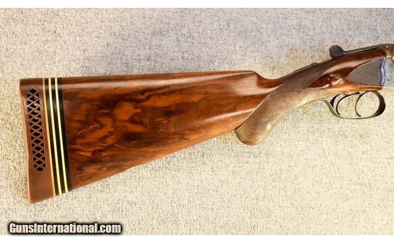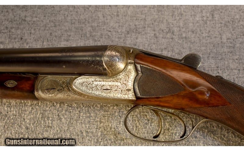 Description: This is a pre-owned Charles Daly Diamond Grade side by side shotgun in 12 gauge made in Prussia by Lindner. "CHARLES DALY DIAMOND QUALITY" is stamped on the concave rib, "PRUSSIA" on the water table and "HAL" over crossed pistols on the barrels above the flats. The shotgun features ejectors, cocking indicators and automatic safety. 12 Gauge SOLD Chambers: 2 1/2 Metal Condition: Very good overall with a number of small scratches Wood Condition: "Quite good overall with a number of scratches and several small chips on the edges of the fore end, no splits or cracks Bore Condition: Clean and bright Barrels: 28" with ejectors Triggers: Double triggers Stock Dimensions: 14 1/4" LOP ~ 1 5/8" DAC ~ 2 3/8" DAH Fore End: Checkered splinter-style Butt Pad: White Line pad Weight: 6 Lbs. 4 Oz. Sights: White bead Chokes: Fixed chokes ~ Right barrel .012" (Imp. Cyl.) ~ Left barrel .037" (Full) Item Location: Glendale, AZ |