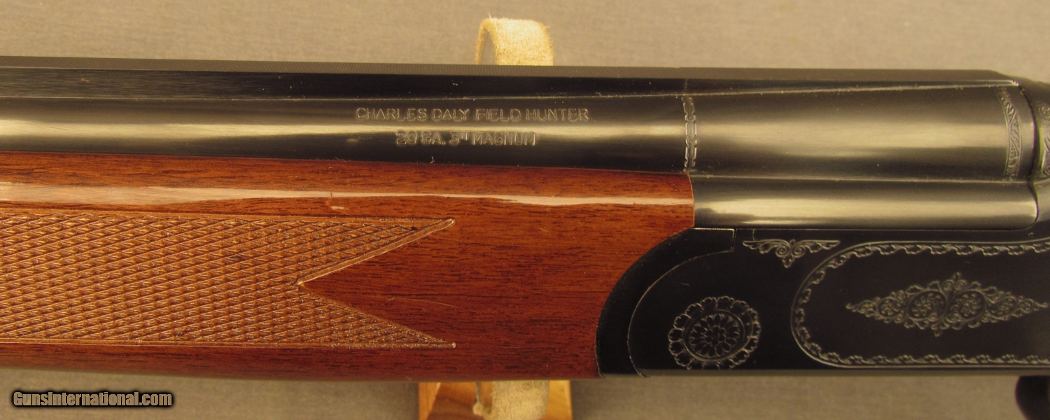 Description: S# 71839, 20 GA 3 inch, 26 inch vent rib barrels choked improved cylinder and improved modified, bright excellent bores. This Italian over-under was built in 2001 and remains in excellent condition with over 97% blue. Left side of barrel has a recolored small scratch. Wood shows a few light handling marks with a few belt buckle scratches behind frame on left side. Features include single selective trigger, geometric engraving, 13 7/8 inch LOP, and high gloss stock finish. A great upland game gun in super shape, just in time for bird season. FFL SOLD Manufacturer: Charles Daly Model: Field Serial Number: 71839 Caliber Info: 20ga Gauge Info: 20ga |