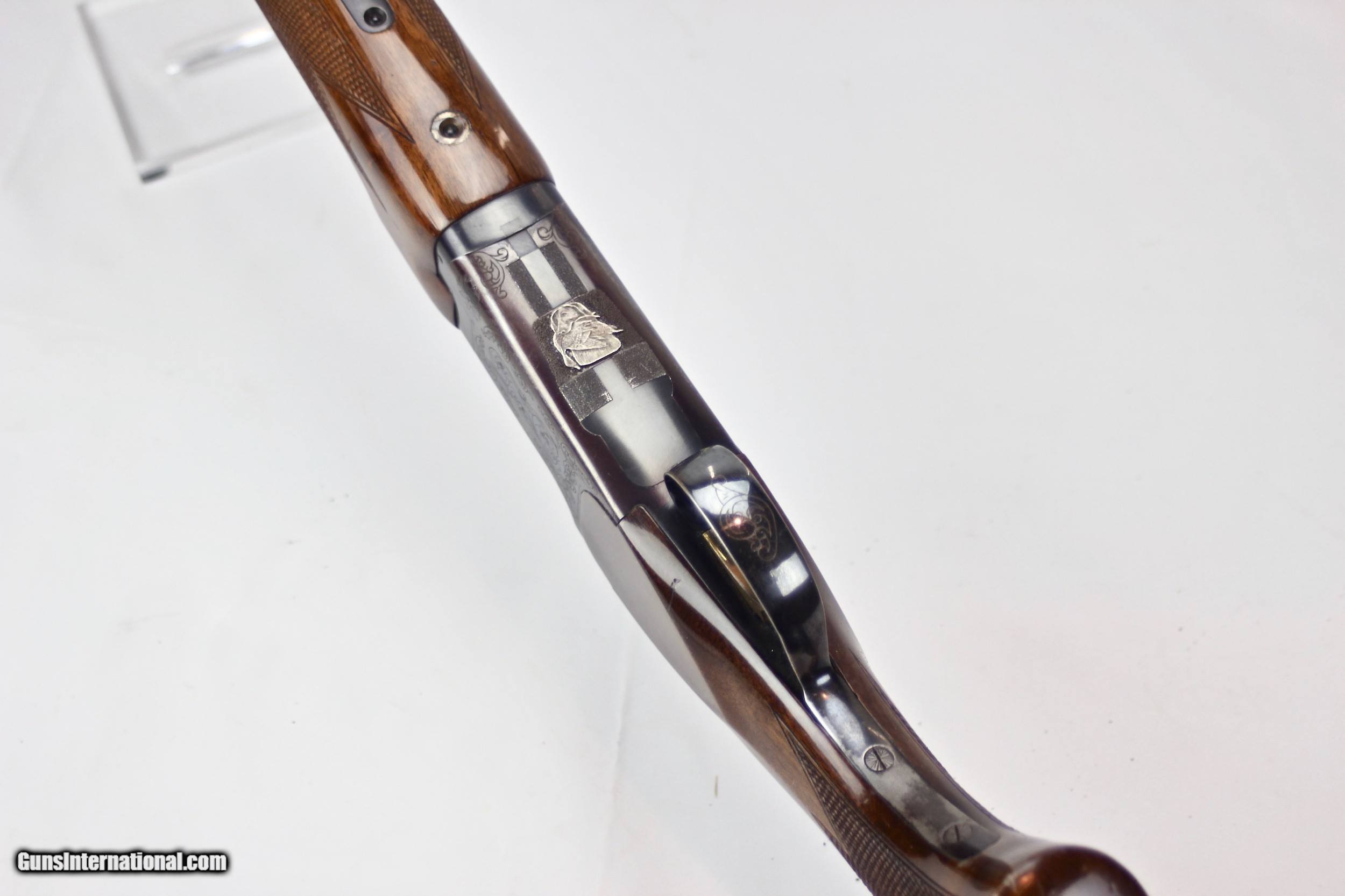 Description: This is a very nice Charles Daly Ventura Grade O/U shotgun. Manufactured by Miroku Firearms, this gun is equipped with selective ejectors, single selective trigger and 28" vent rib barrels. The barrels are choked full/ light mod. CONDITION: The barrels retain aprox. 90% of their original deep blue finish. There are only two small worn spots at the barrel breach. Otherwise the finish on all the metal surfaces is excellent. The walnut stock and foreand have some minor damage to the checkering that does not effect the handling or use of the gun. The stock and forend are free of chips or cracks. The original acrylic finish is in very good condition with no chiping or crazing. Lenght of pull is 14" over a 5/8" Pachmayr "White Line" recoil pad. Drop at comb is 1 9/16" and drop at heel is 2 1/16". There is no apparent cast to the stock. This would make an excellent pheasant or Sporting Clays gun. SOLD Manufacturer: Miroku Arms Mfg. Co. Model: Hunter Serial Number: S 708739 Chambers: 2 3/4 Ejectors: Selective Condition: Excellent Metal Condition: Excellent Wood Condition: Very Good Bore Condition: Bright and Clean Barrels: 28" vent rib Barrel Type: O/U Action: Box Lock Triggers: Single Selective Gauge Info: 12 Stock: Walnut Pistol Grip Stock Comb: Drop at comb 1 9/16 Stock Heel: Drop at heel 2 1/16 Stock Cast: no Fore End: Walnut Butt Pad: 5/8" Pachmayr White Line LOP: 14 Rib: Vented Finish: Acrylic Weight: 7lbs, 6oz. Manufacture Date: U.K. Choke Left: Over - Full Choke Right: Under - I. M. Engraving: Full cover on Receiver Item Location: Coweta,Ok |