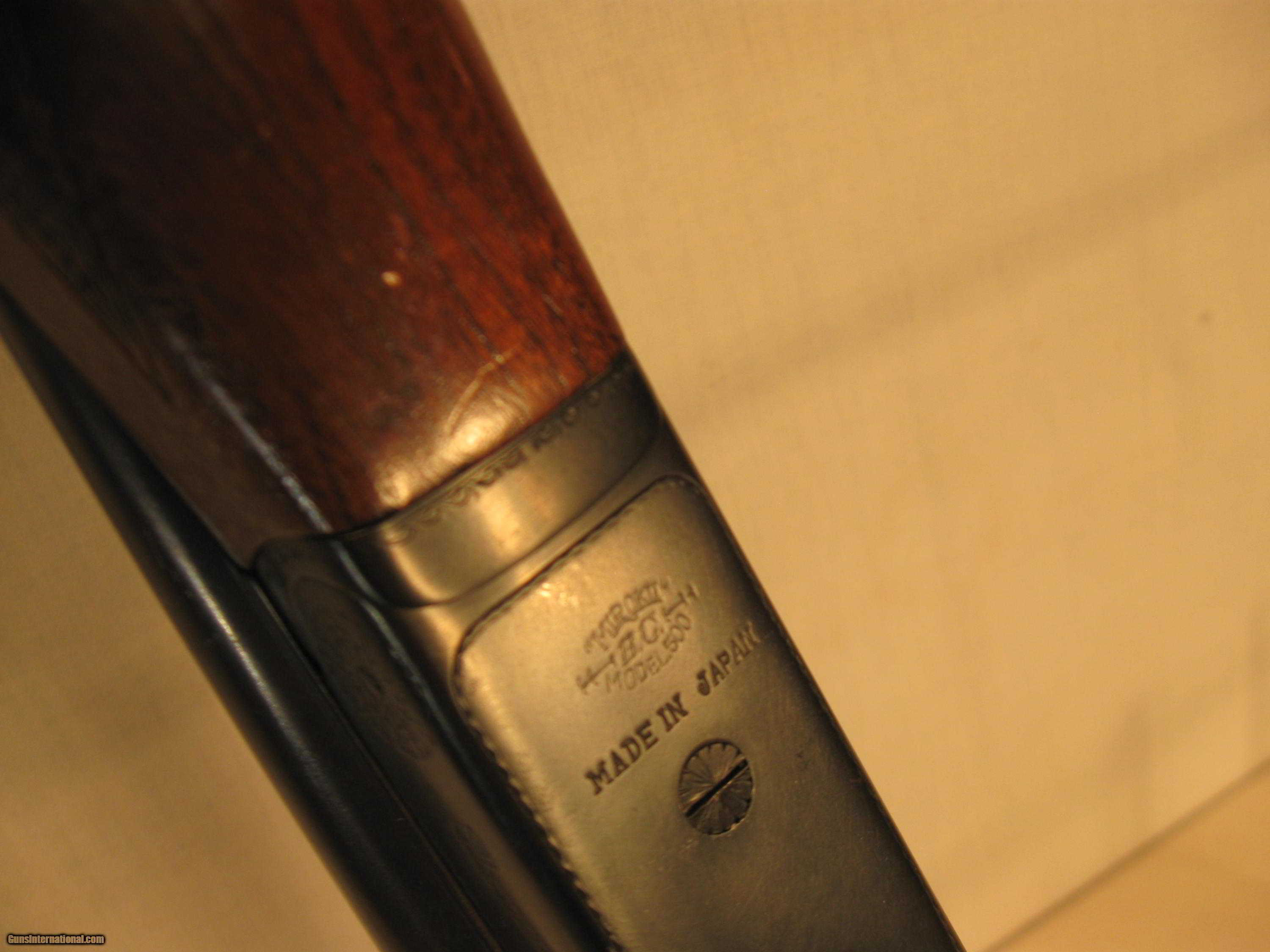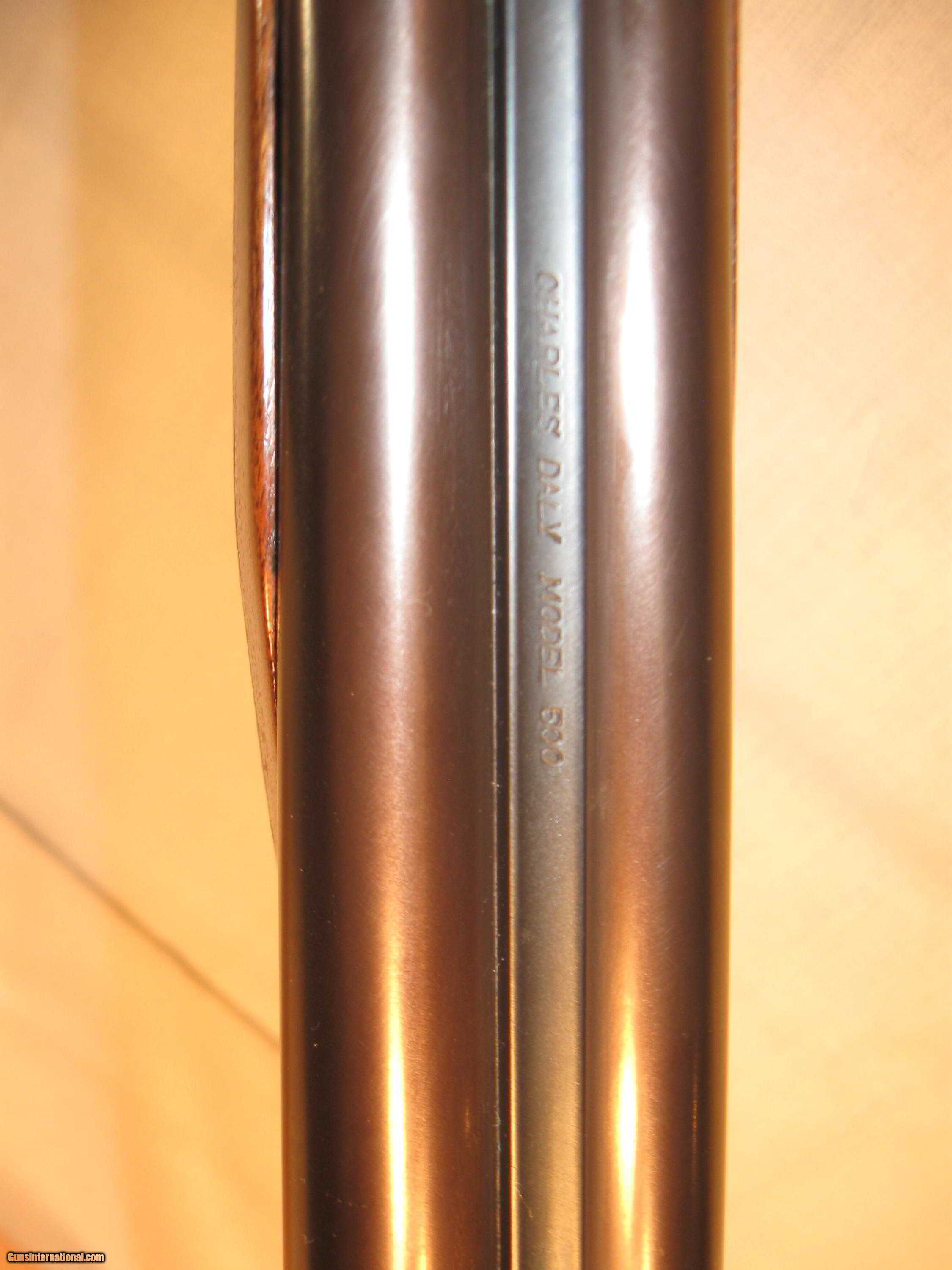 Description: Charles Daly M500 Double barrel non-ejector shotgun made by Mirokii in Japan. Some light border engraving, double triggers and beavertail fore end. Choked Modified and Full 30" barrel. Non-automatic safety. 2 3/4" chambers A very nice gun with very minor handling marks. Ivory bead front sight. FFL required. I take plastic for 3%. $50.00 shipping and insurance via USPS Priority Mail. SOLD |