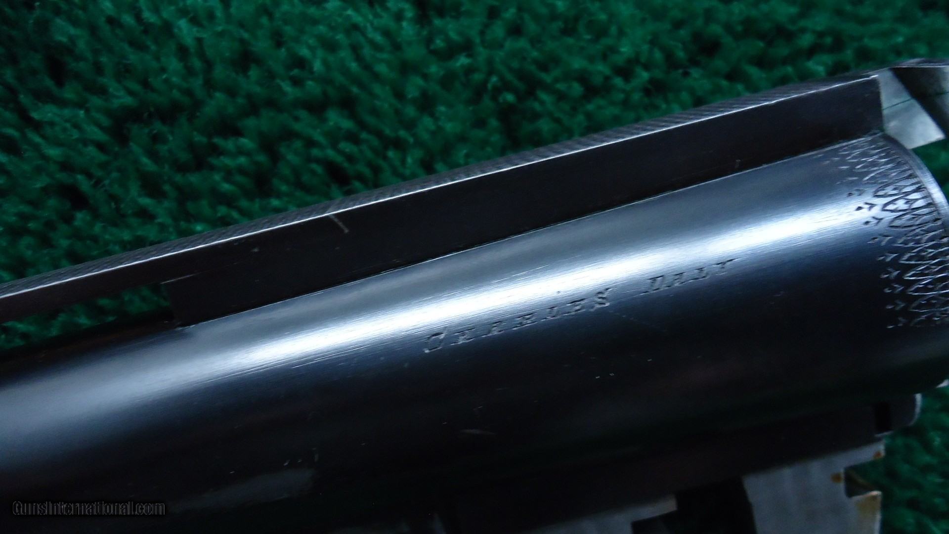 Description: 30 inch ventilated rib barrel with Full choke. Fine bore. The checkered pistol grip walnut buttstock is very good being professionally-modified. The top of the buttstock was cut away and a raised comb and Pachmayr Decelerator pad with black spacer were expertly added. 14-3/8 inches LOP. Gun is beautifully engraved with a delicate scroll style engraving. Retains about 75% case colors and most all the blue, slightly toning. This is just a great looking gun. Leroy Merz Antique Firearms specializes in antique and vintage Winchesters and other fine American firearms. Since 1965 Mr. Merz has taken part in the world of firearms and has been a contributor to many well known reference books. We have hundreds of additional guns in every price range at our home online. Search for Merz Antiques in google. SOLD Curio/Relic: Yes Shotgun Gauge: 12 Gauge |