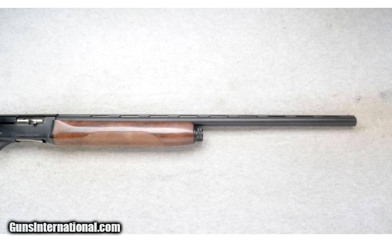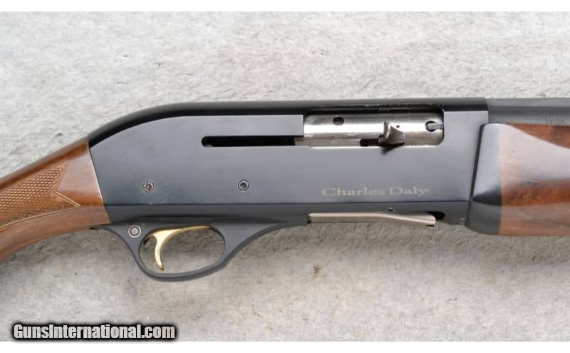 Description: This Charles Daly Model Superior is a right hand semi-auto shotgun in 12 Ga. It has a 28 inch barrel with a ventilated rib. A brass bead front sight. With a 3 inch chamber it comes with a Full choke tube in the gun. The butt stock is a checkered grip hardwood pistol grip. The forearm is a checkered grip hardwood. 12 Gauge SOLD Chambers: 3 inch. Metal Condition: Good. Shows a little handling/use. Barrel has a little very minor freckling. Wood Condition: Good. Has handling and use marks. Bore Condition: Shiny. Barrels: 28 inch barrel with a ventilated rib. Stock Dimensions: LOP 14 1/4 inches. Fore End: Checkered grip hardwood. Butt Pad: Brown rubber recoil pad. Weight: 6 lb. 8 oz. Sights: Brass bead front. Chokes: Comes with a Full choke tube in the gun. Item Location: Richfield, WI |