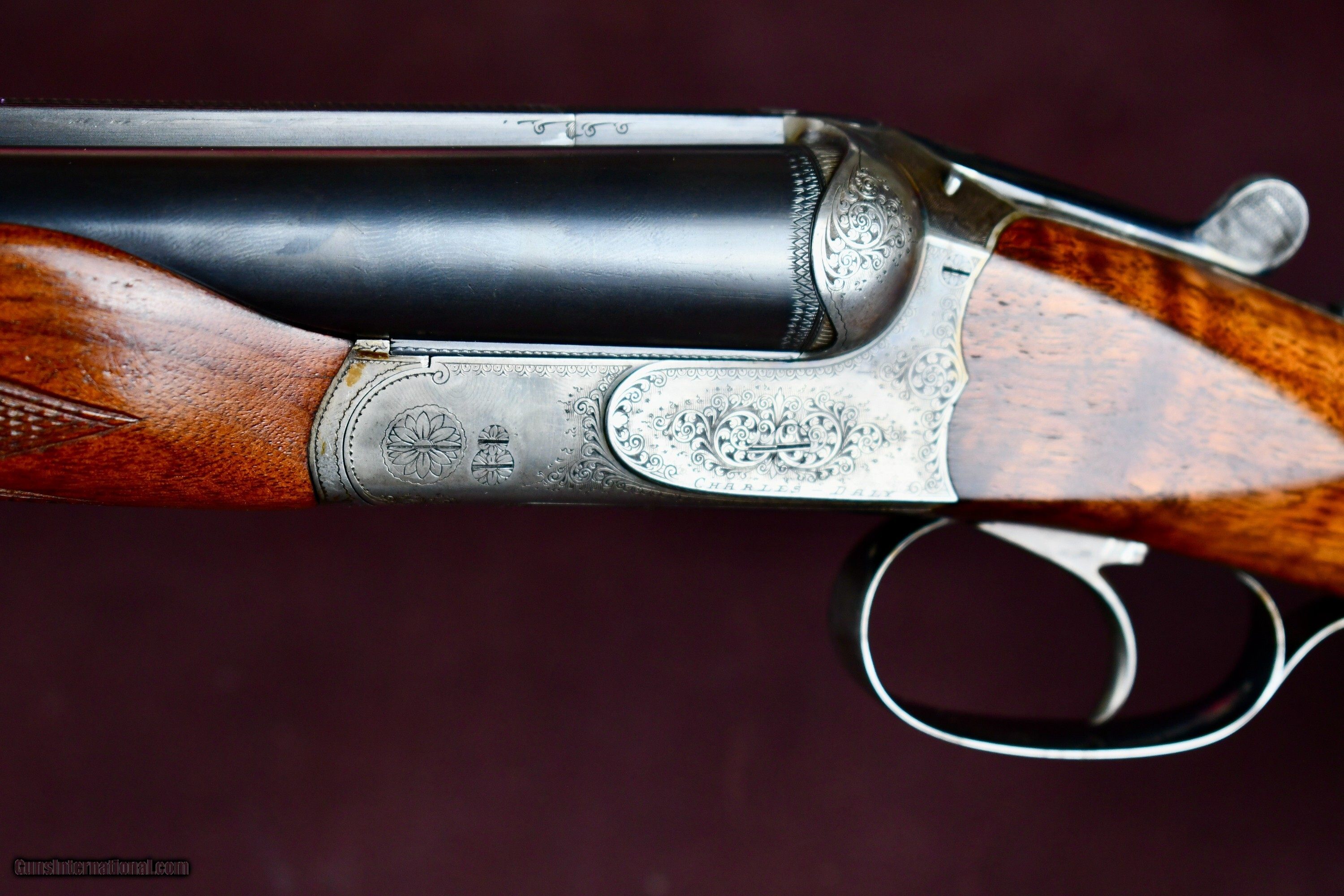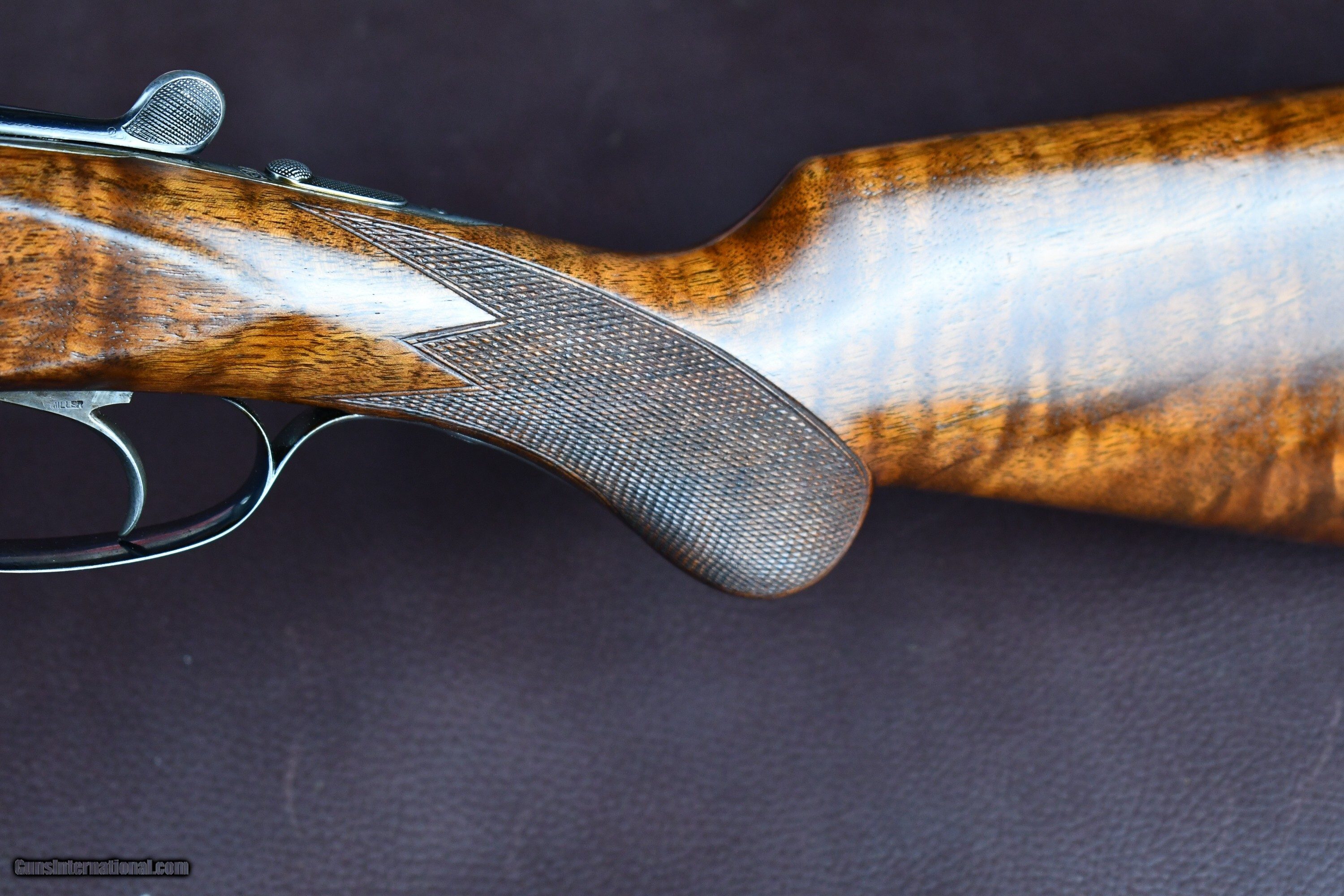 Description: CHARLES DALY SUPERIOR GRADE 12GA -- PRINCE OF WALES GRIP--MILLER SINGLE TRIGGER -- 28" MOD/MOD -- BEAVERTAIL FOREND -- EJECTORS -- SIDE CLIPS -- SINGLE FRONT BRASS BEAD -- ORANGE PACHMAYER PAD -- THIS IS A VERY NICE DALY THAT HAS HAD A BEAVERTAIL AND MILLER SINGLE TRIGGER ADDED TO ENHANCE THE SHOOTABILITY OF THE GUN -- PERFECT SKEET STYLE CONFIGURATION THAT BALANCES AND SHOOTS INCREDIBLY WELL -- A GREAT ALL AROUND CHOKE CONFIGURATION AT MODIFIED BOTH BARRELS -- INCREDIBLE LITTLE BELGIUM SXS THAT WOULD PERFORM WELL WITH RST 2 1/2 #8'S -- JUST ADD DOG! Shotgun Gauge: 12 Gauge Manufacturer: CHARLES DALY Model: SUPERIOR Barrel Length: 28 Chambers: 2 3/4 Ejectors: YES Metal Condition: EXCELLENT Wood Condition: EXCELLENT Bore Condition: EXCELLENT Action: SXS Triggers: SINGLE Stock Comb: 1 1/2 Stock Heel: 2 1/2 LOP: 14 3/8 Weight: 6lbs 9.5oz Sights: 1 Choke Left: MOD Choke Right: MOD Price: $3,250.00 Contact Seller |