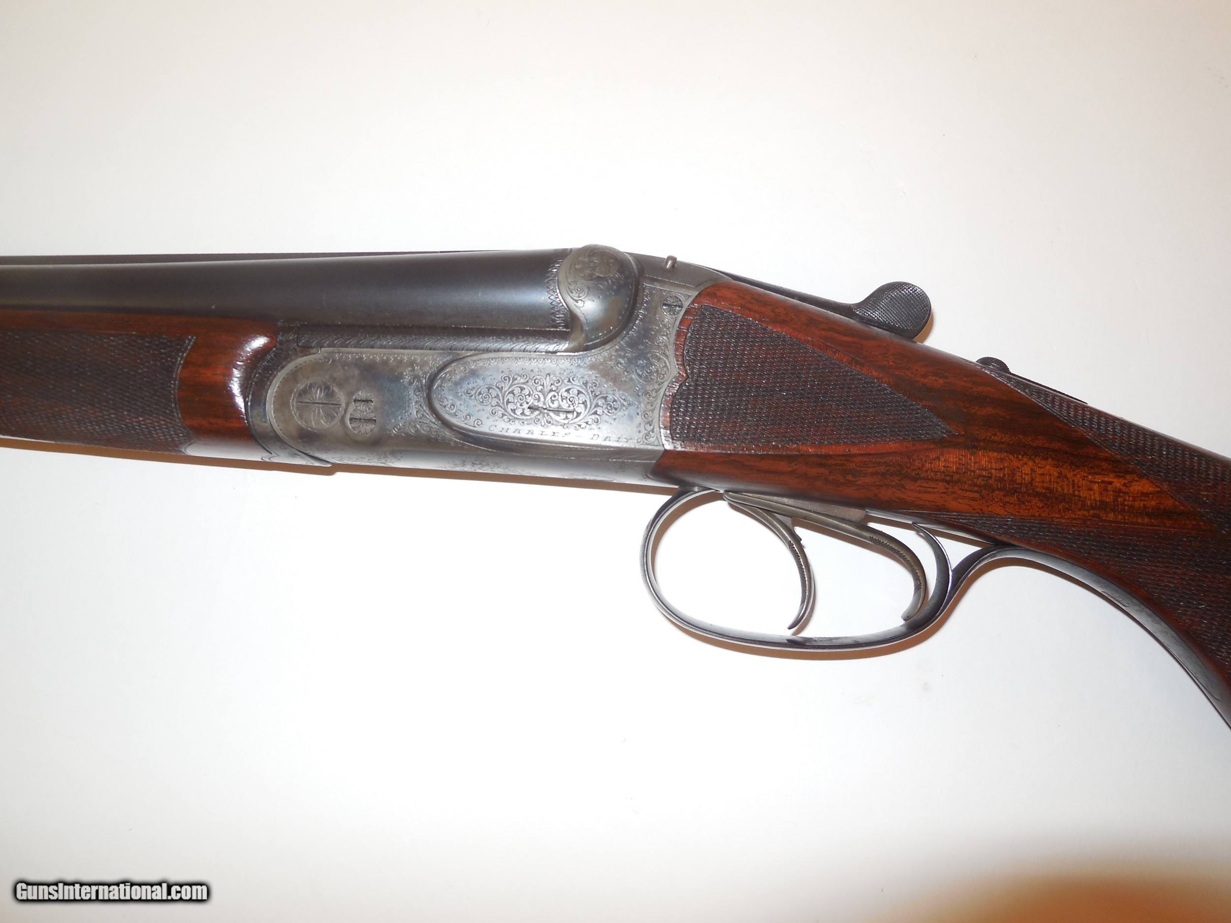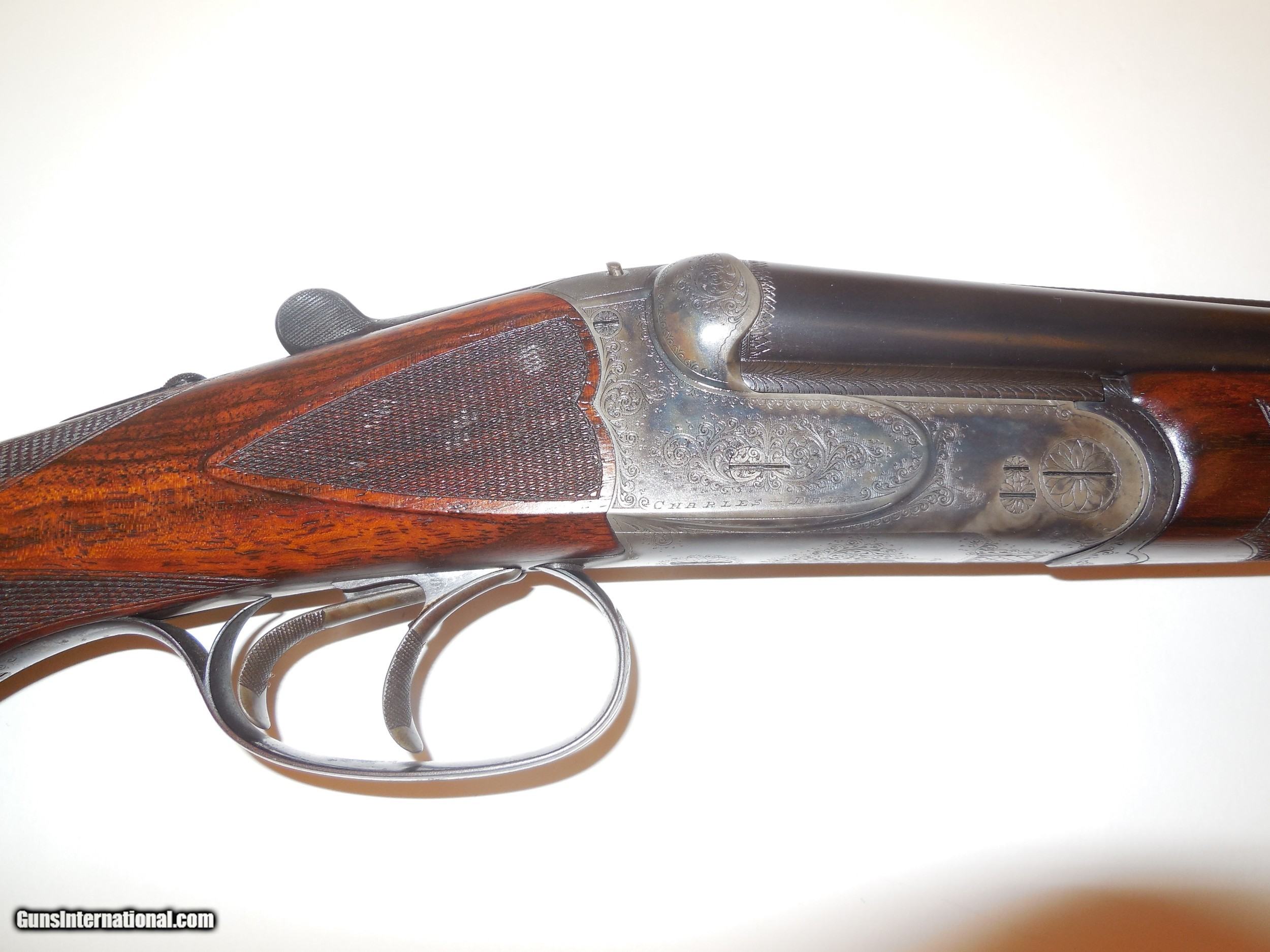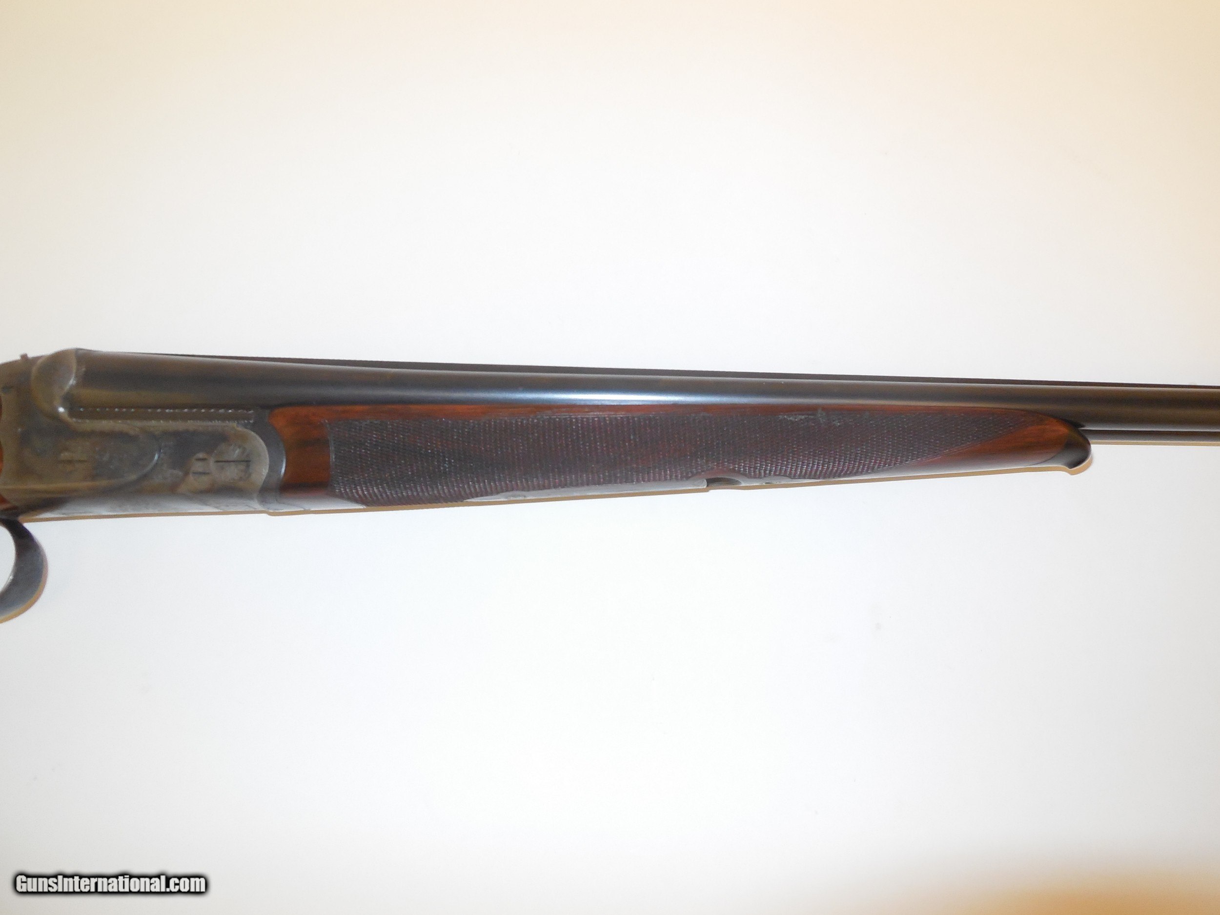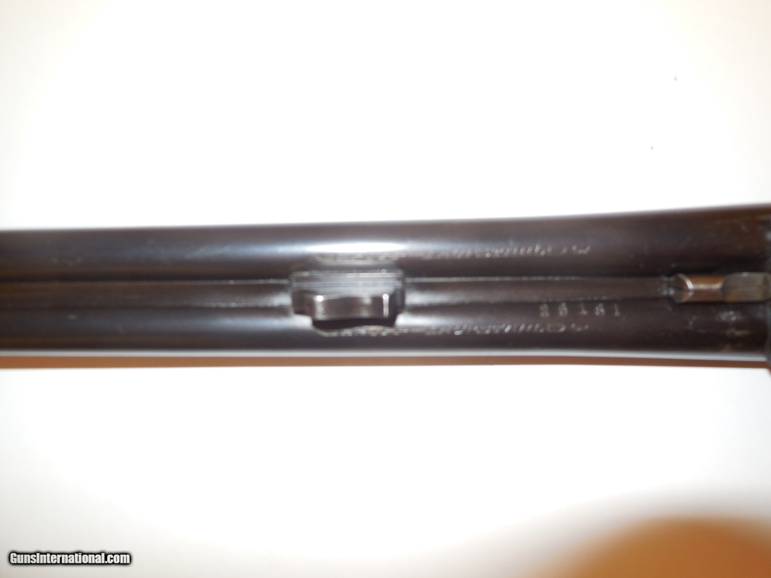 Description: Charles Daly, Superior Grade, .410, 26” barrels choked Mod/Mod. Small tiny beavertail, fine line checkering , semi pistol grip, checkered butt, made in Prussia, cocking indicators, double trigger, auto ejector, proofed in 1932. Features beautiful Turkish walnut, auto safety, perfect, untouched screws ABSOLUTELY UNFIRED. 99% blue wood finish and case color. This gun even has all the trigger guard blue and case color on the forend latch with a horn tip and forend. This is a once in a lifetime find and has double ivory bead sights. Still has the original polishing marks on water table and forend. Inventory # 43467 Price $ 21,995 SOLD |