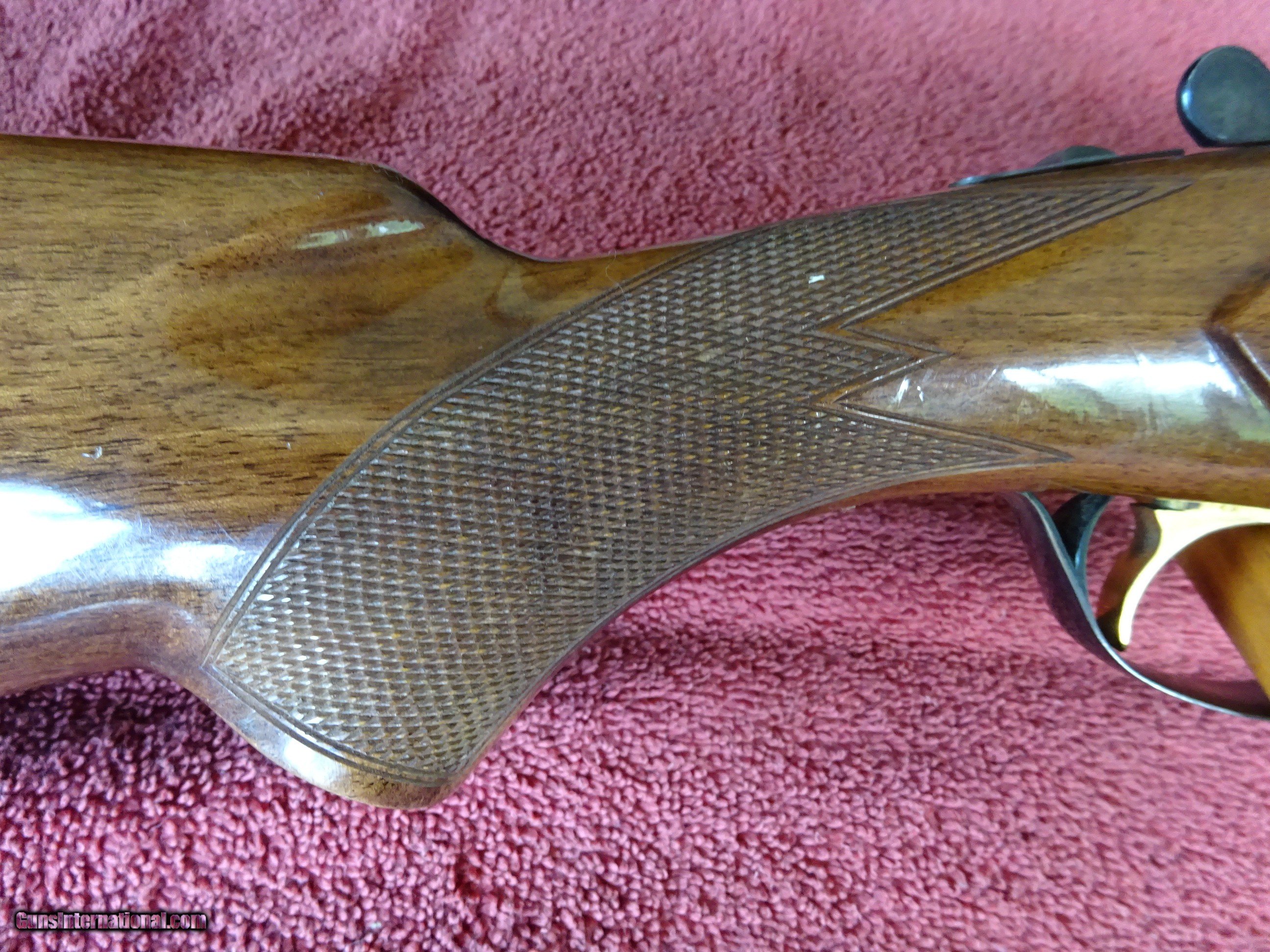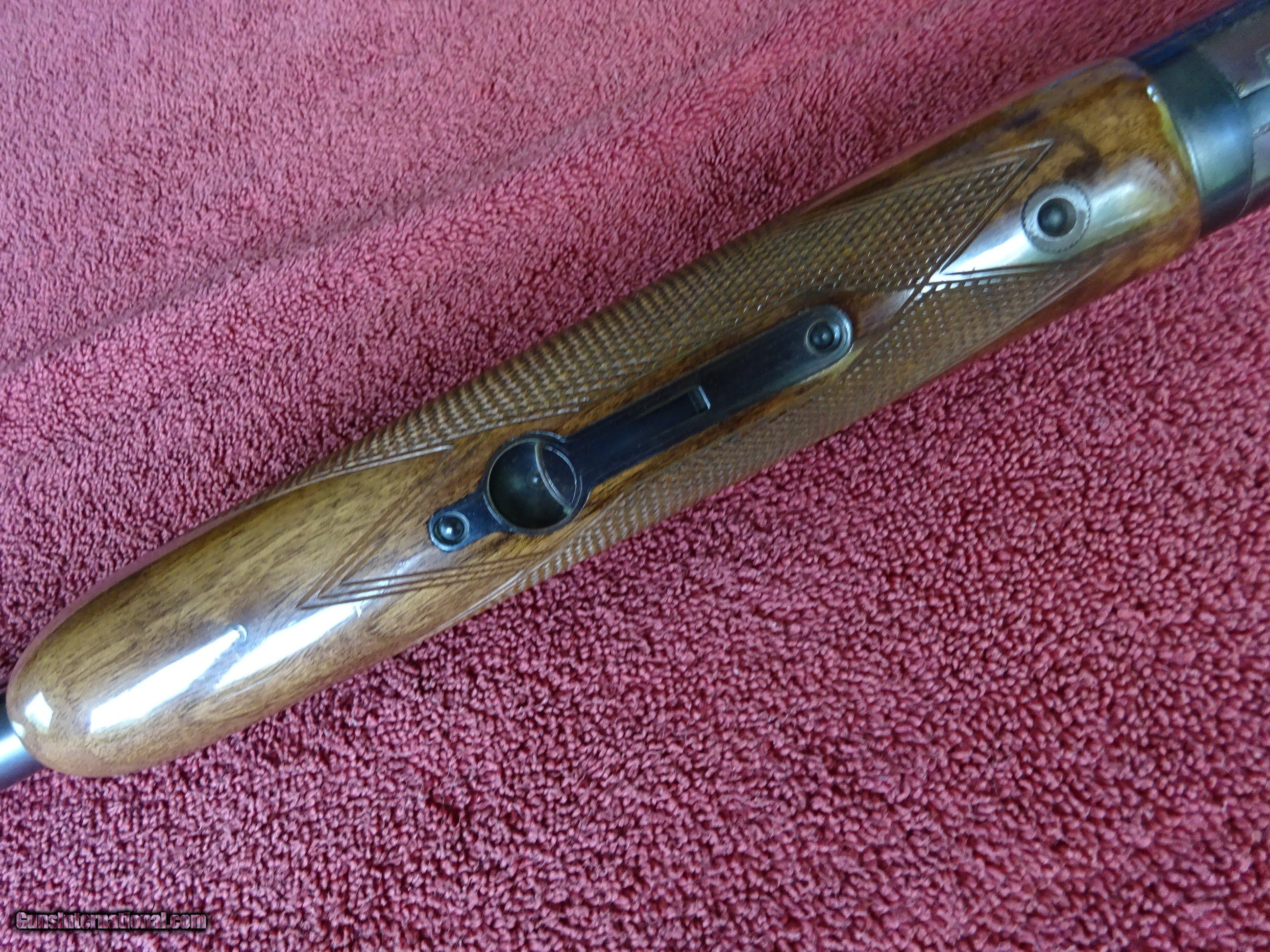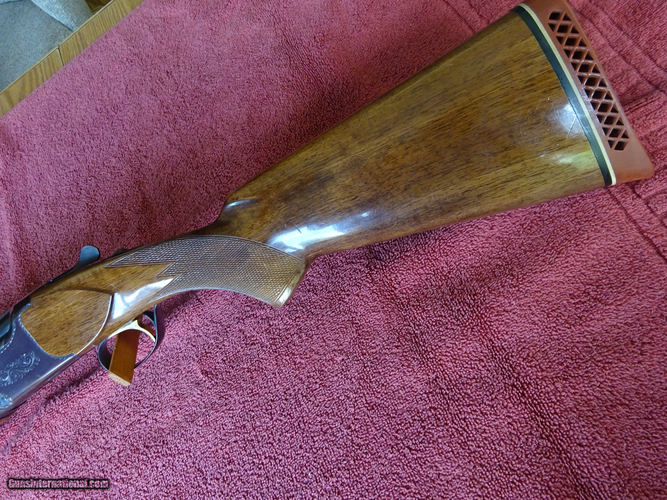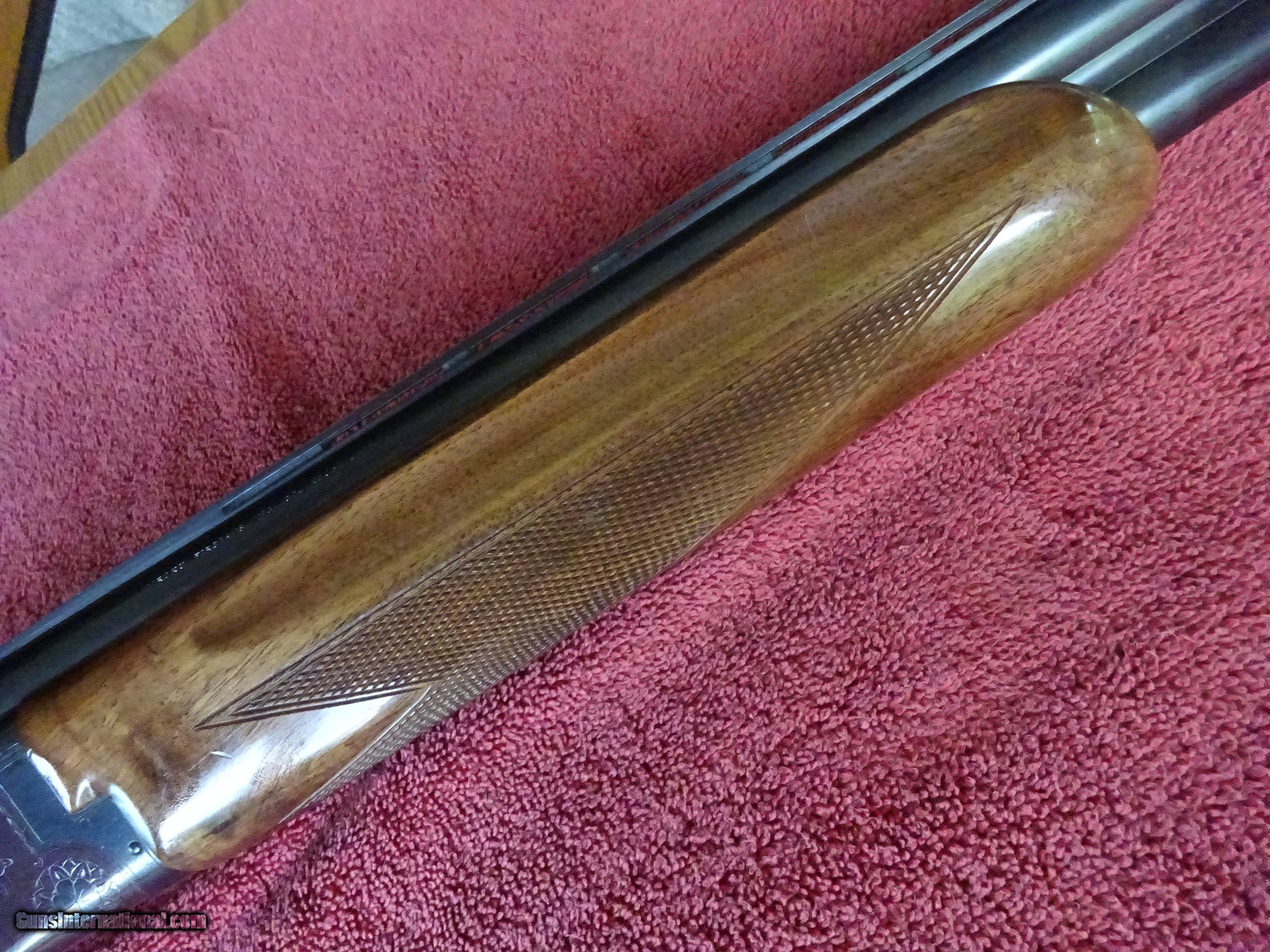 Description: CHARLES DALY VENTURE MODEL 20 GAUGE. OVER AND UNDER 26" VENT RIB BARRELS, IMCYL. (.005) AND MODIFIED (.012), 3" CHAMBERS. EXCELLENT BRIGHT BLUE, MIRROR-PERFECT BORES, SINGLE BEAD SIGHT. AUTOMATIC EJECTORS BOXLOCK FRAME WITH SCROLL ENGRAVING PATTERN, FINE LINE BORDERS, GOLD SINGLE SELECTIVE TRIGGER AND AUTO-SAFETY. PISTOL GRIP STOCK, BEAVERTAIL FOREARM, EXCELLENT WOOD AND CHECKERING, 1 1/2" X 2 1/4" X 13 1/2", WHITE LINE PAD. MADE BY B. C. MIROKU, KOCHI JAPAN, CIRCA 1970S. VERY SIMILAR TO A BROWNING SUPERPOSED IN LOOK AND QUALITY. ALL ORIGINAL FINISH. $975.00 + $70.00 Insured shipping to an FFL address. Layaway is available. See all Pats gun listings on this site! We also have hundreds of ORIGINAL gun company advertising & memorabilia pieces available for sale on our site SPORTINGCOLLECTIBLES. We have no reprints or reproductions. Email for more information. If you need to call, morning or evening is best, and please note the Seller's Inventory number. SOLD |