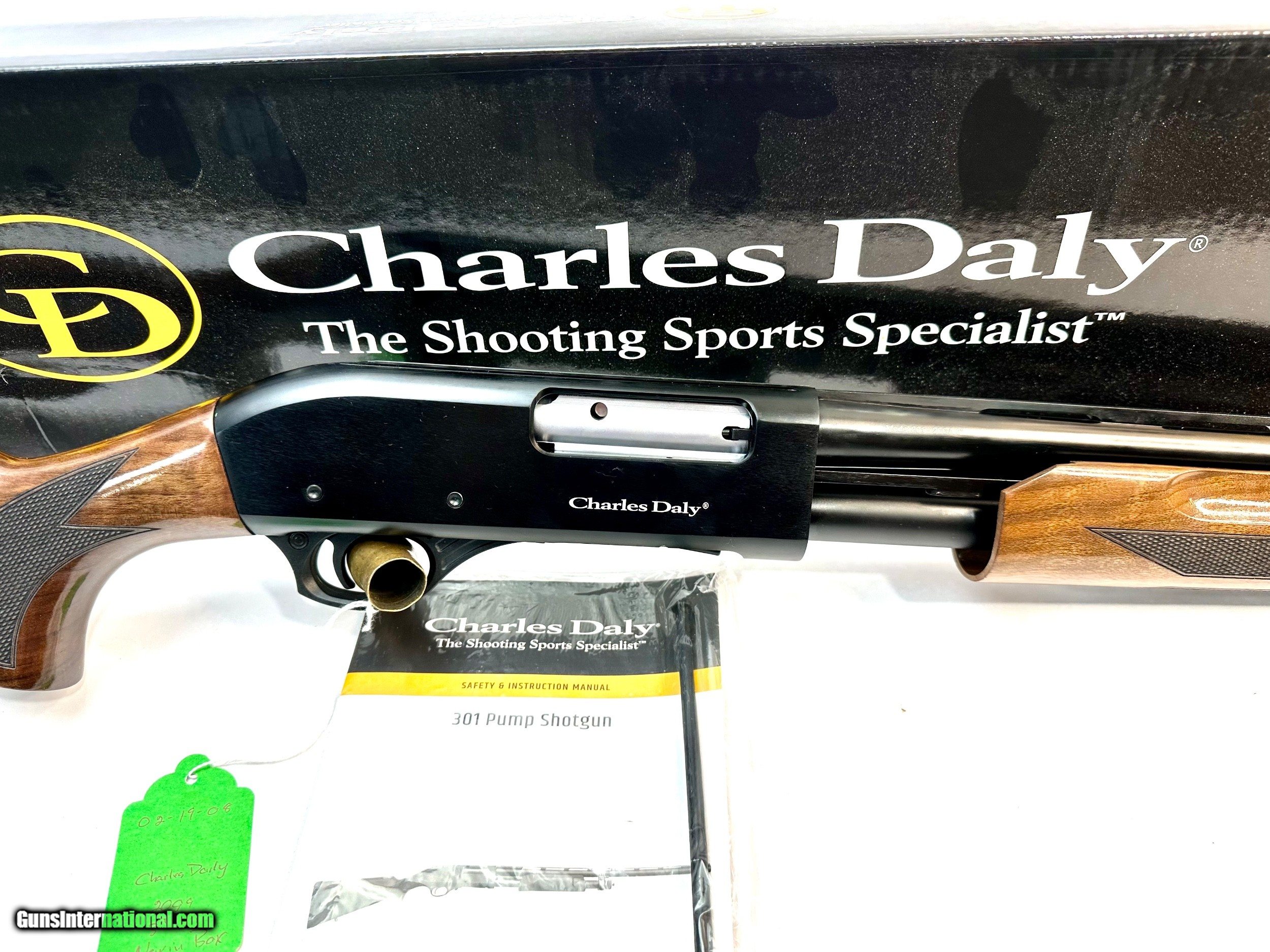 Description: New in Box, Charles Daly 301 Black/Wood 20ga 3in Pump Action Shotgun - 28in - The 301 features Beretta/Benelli Mobil Choke Thread MC-3 with IC, M, and F chokes.