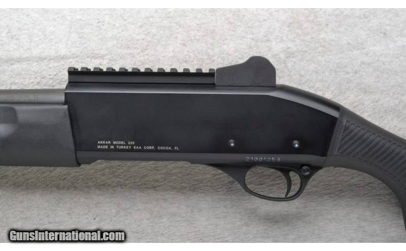 Description: This Churchill Model 220 is a right hand semi-auto shotgun in 20 Ga. It has an 18.5 inch barrel with a 3 inch chamber and an extended Tactical Choke tube. A raised red high visibility front sight with protective sides and an adjustable aperture rear sight with protective sides. The butt stock is a textured grip black polymer pistol grip. The forearm is a textured grip black polymer with finger grooves. 20 Gauge SOLD Chambers: 3 inch. Metal Condition: Very Good. Bore Condition: Bright and shiny. Barrels: 18.5 inch. Stock Dimensions: LOP 13 3/4 inches. Fore End: Textured grip black polymer with finger grooves. Butt Pad: Black rubber recoil pad. Weight: 6 lb. 4 oz. Sights: Raised red high visibility front with protective sides. Adjustable aperture rear with protective sides. Chokes: Extended Tactical Choke Tube. Item Location: Richfield, WI |