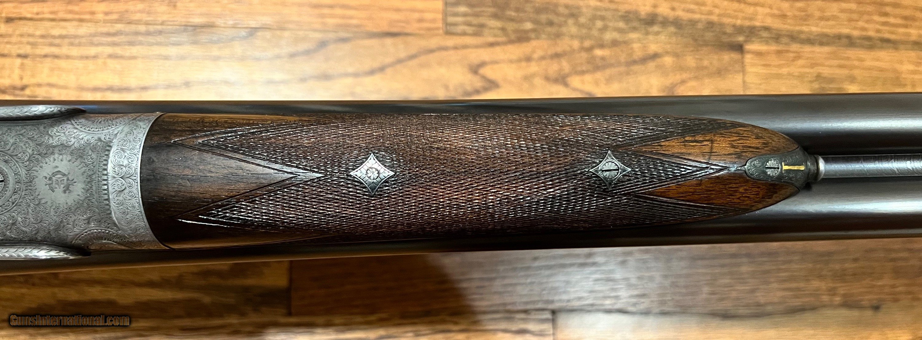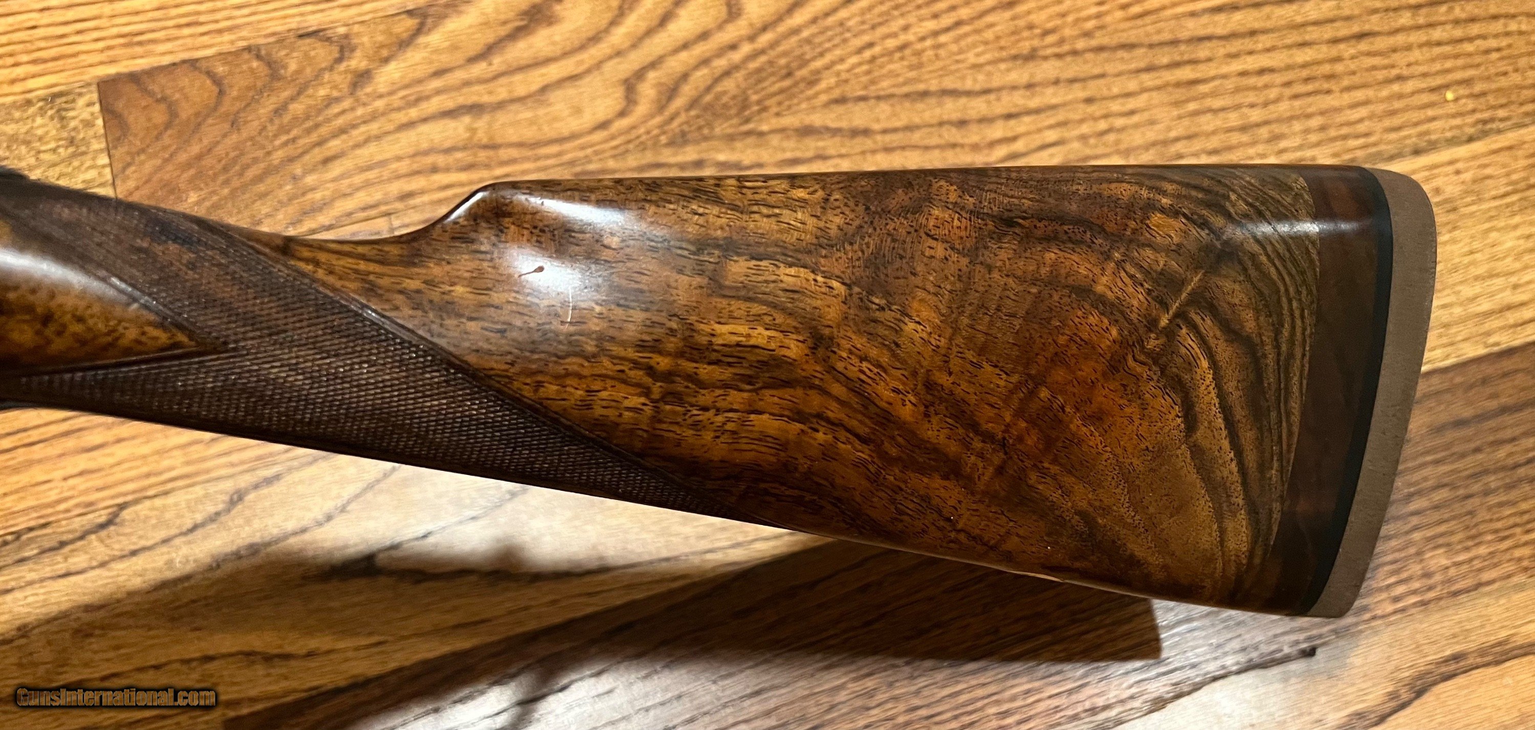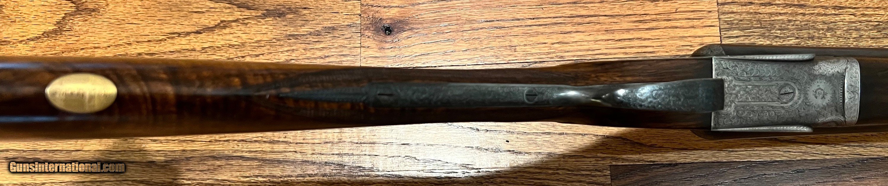 Description: EJ Churchill 12ga best quality sidelock ejector game gun 27" ejector barrels with matted concave rib with mid/front bead 2 5/8" 1 1/8oz nitro proof Bores: .728/.728 proofed at .719/.719 Chokes: .010/.010 IC/IC Minimum wall thickness: 0.029/0.030 LOP 14 1/4 DAC 1 5/8 DAH 2 1/4 Neutral cast 6lbs 7oz Full coverage Churchill house style scroll engraving with some case color remaining and well figured wood. Top quality early Churchill owned and used extensively by Billy Perdue for game shooting(his name engraved on the stock oval). Overall the gun is very nice with a repaired crack on top of both locks (has been like this for 50+ years) and the gun is slightly off face. Really nice fast handling Churchill game gun. Open to reasonable offers. SOLD Curio/Relic: Yes Shotgun Gauge: 12 Gauge |