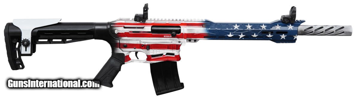 Description: Guns Listing ID: 262787 Citadel‚‚s Boss-25 is a semi-auto AR style shotgun that features a synthetic stock with an adjustable comb, adjustable sights, and upper picatinny rail. This model has an American Flag cerakote finish. - MAGAZINE (1) 5rd capacit SOLD Manufacturer: CITADEL Model: Boss-25 Condition: new Barrels: 18.75 BARREL Gauge Info: 12 GA Finish: AMERICAN FLAG |