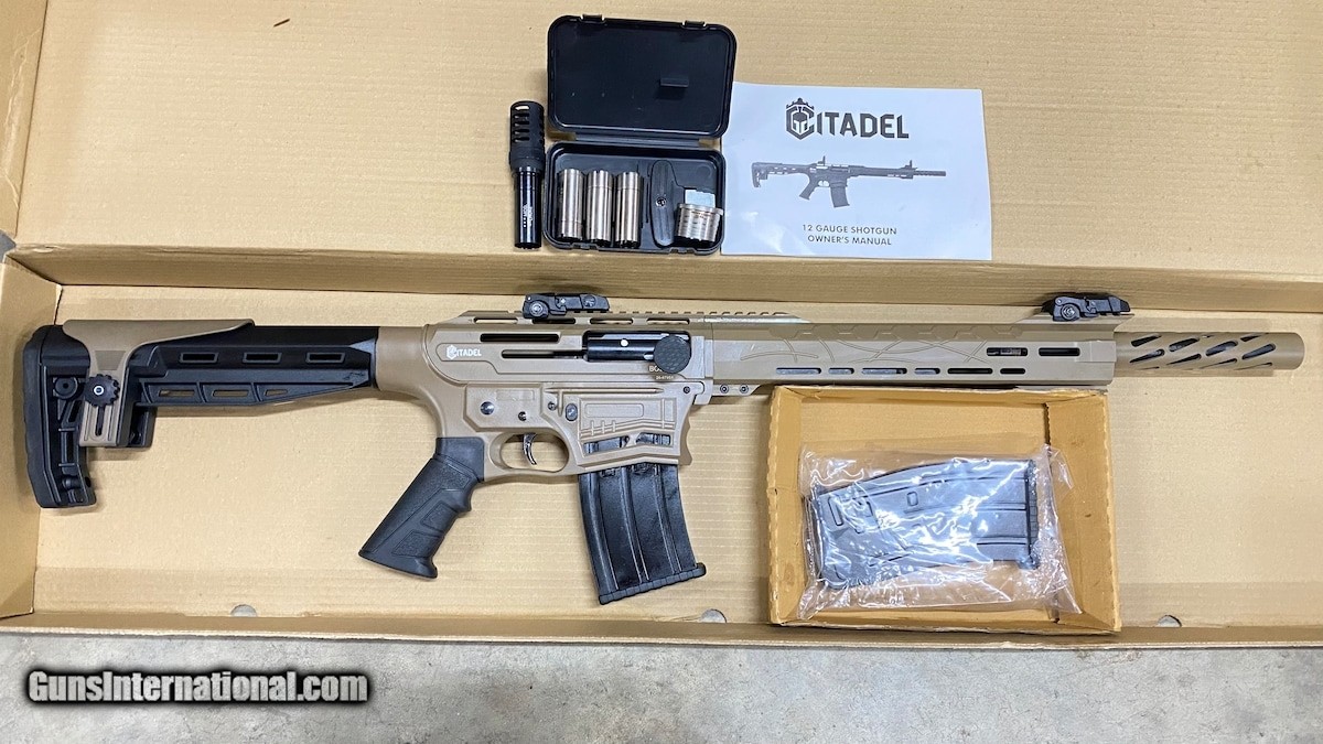 Description: Guns Listing ID: 248242 Citadel Boss 25 12 GA AR Style Semi Auto Shotgun 5+1 FDE Cerakote AR-12 (like Panzer) Type: AR Style Semi-Auto Shotgun Caliber: 12 Gauge Finish: FDE Cerakote Stock: Black Synthetic W/Adj Comb Sight: Front: Adjustable Rear: Adjustable Weight: 8.0 lbs Barrel: 18.75\" OAL: 37.75\" Capacity: 5+1 Receiver: FDE Cerakote, Upper Picatinny Rail Butt Plate: Black Rubber Recoil Pad SOLD Manufacturer: CITADEL Model: Boss Condition: new Barrels: 18.75" barrel Gauge Info: 12 GAUGE |