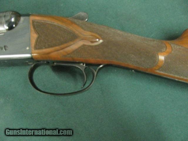 Description: 7238 Classic Doubles 201 20gauge 26 inch barrels 2 3/4 &3 inch,ic/mod, STRAIGHT GRIP, 99% CONDITON, all original, lop 14 1/2, vent rib 2 white beads, ejectors, fleur-des-lies forend checkering & wrist.AA++fancy walnut. checkered side panels, great specimen SOLD Shotgun Gauge: 20 Gauge |