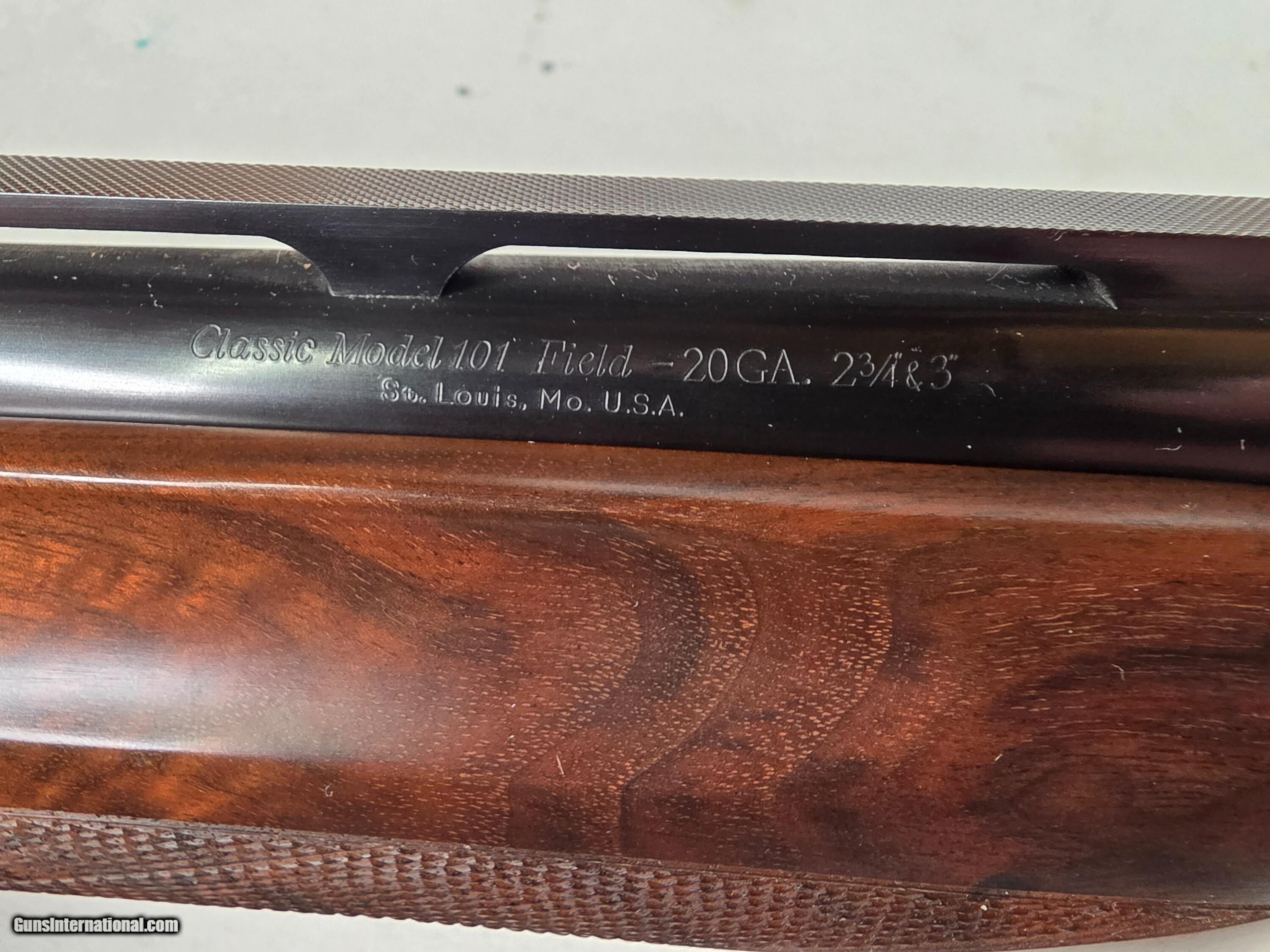 Classic Doubles- Classic 101 Field , IC/MOD screw in chokes, 20 Gauge, 2 3/4 and 3” chambers, straight grip, vent rib, ejectors, will take Winch