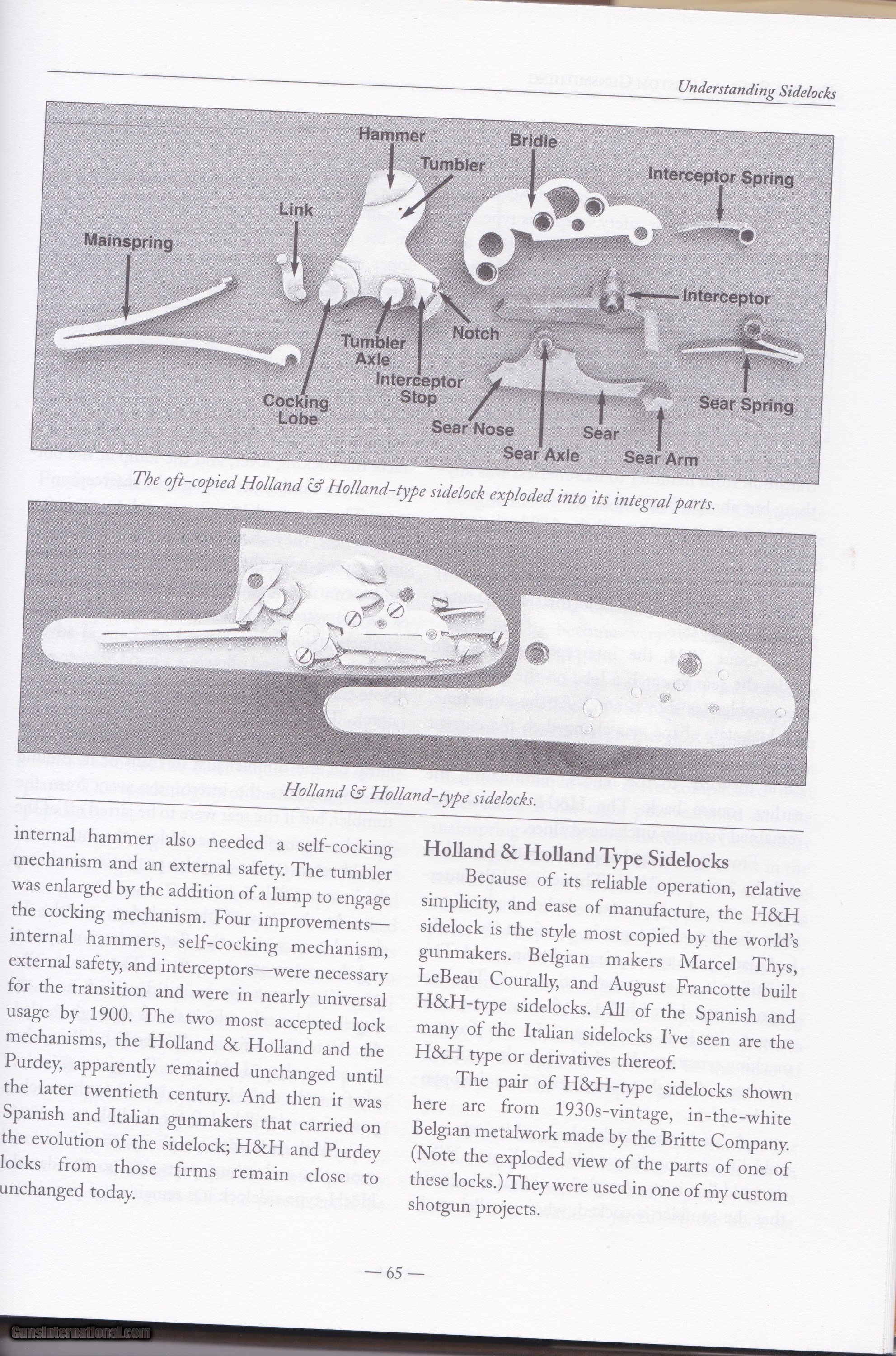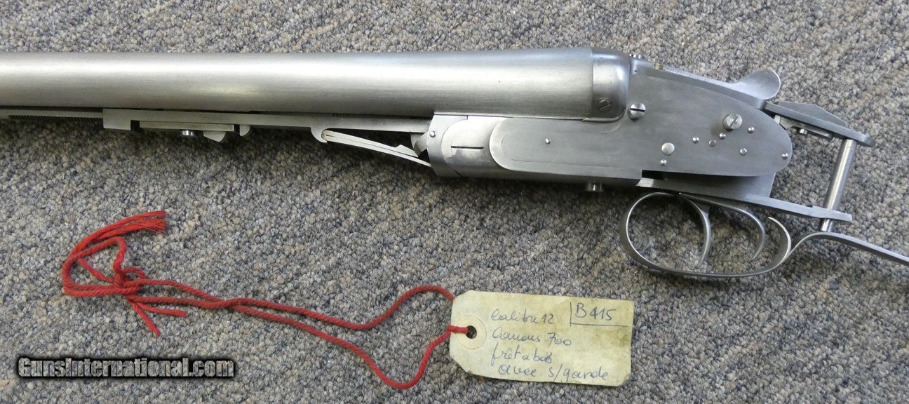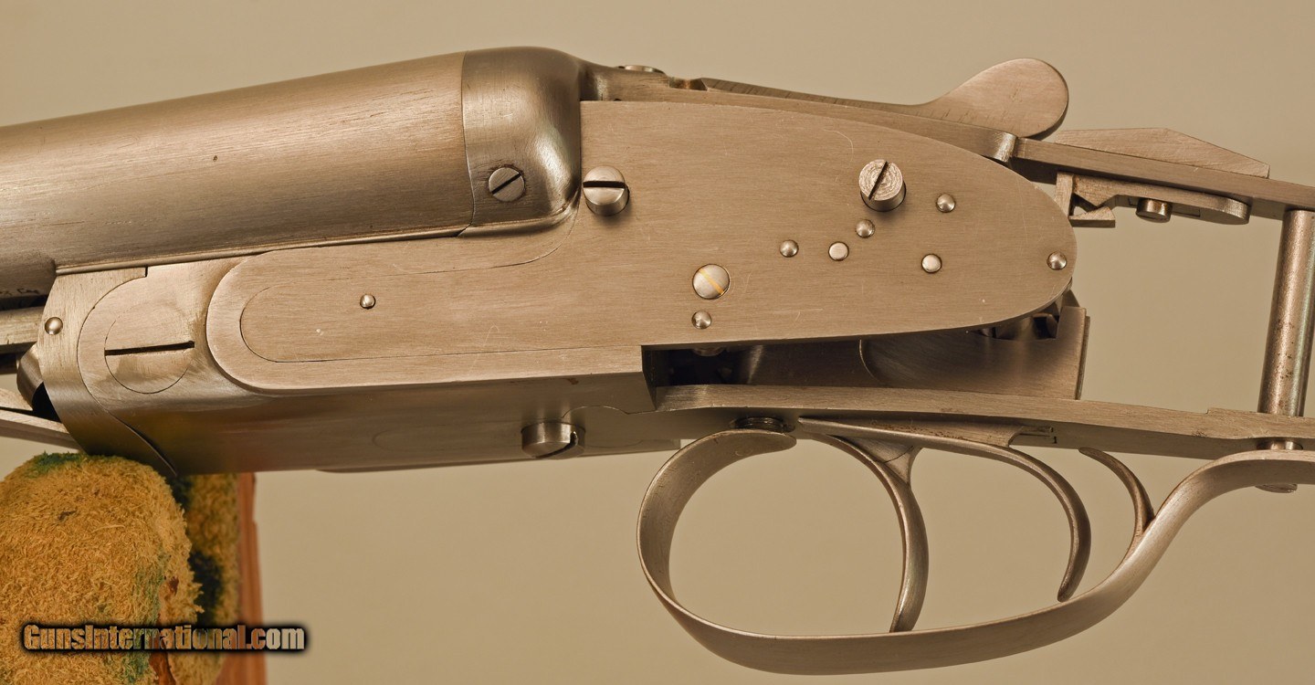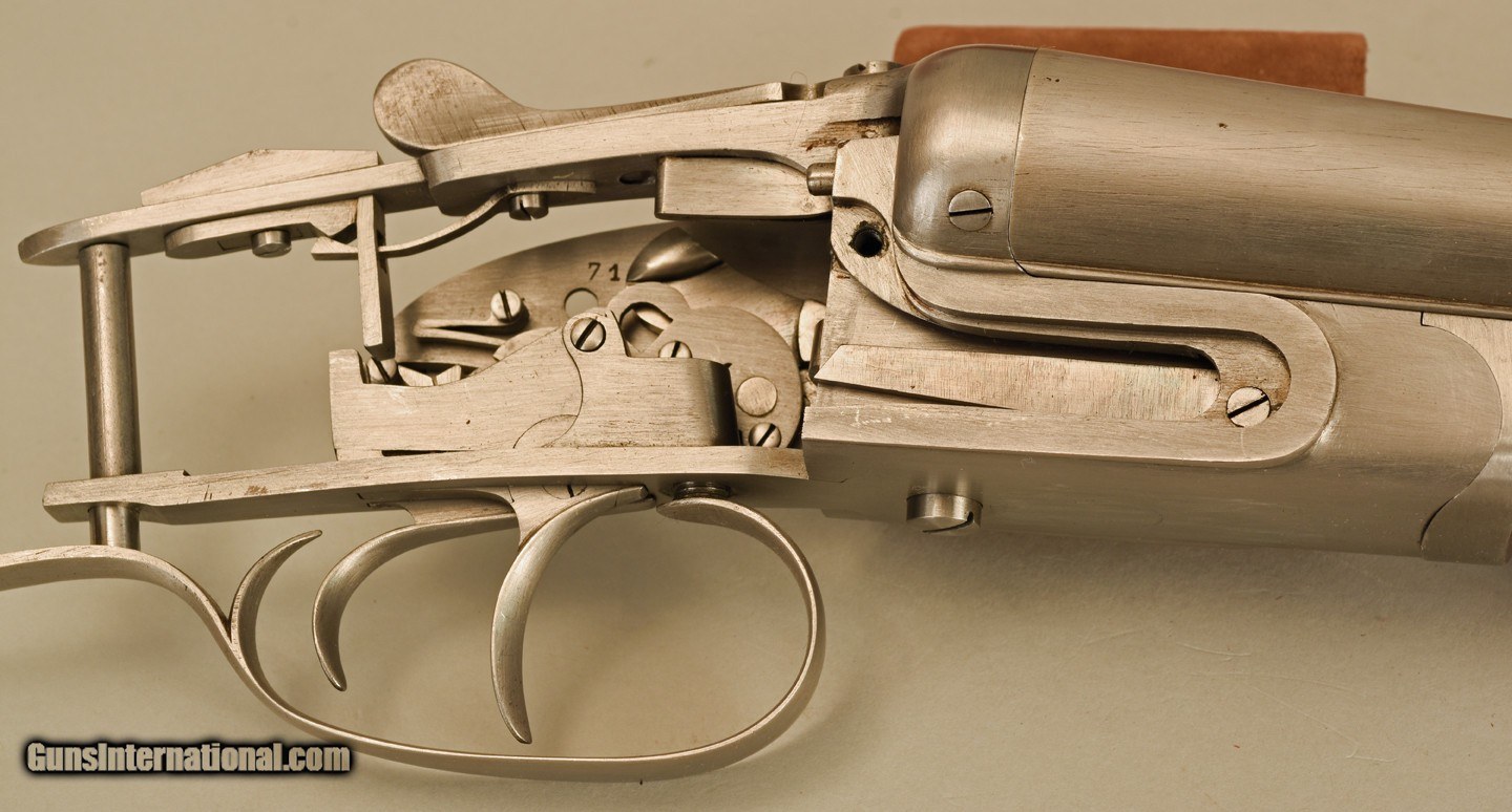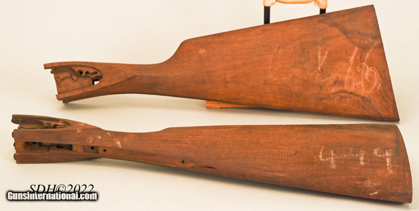 Description: BRITTE 12 Gauge Barreled Action, 27 1/2" barrels ~~ $6750 This Britte Barrreled action was manufactured in Belgium by the Britte Arms En Blanc (Britte Guns In The White) Company in the 1930's. This company supplied a number of small Belgian Gunmaking Shops with metalwork they could stock and finish under their own name. One such company known to use Britte metalwork was Jules Bury a well respected Belgian Gunmaker. These are some of the pieces known as the Britte Collection. In 1936 Britte secured a contract with the Belgian Government for military arms and cease making sporting guns. Approximately 100 Britte shotgun barreled action were in storage from the 1930's until the year 2000. This barreled action had been sitting in storage in a basement in Belgium for about 70 years. Over the course of about 6 months I managed to purchase and import six of these barreled actions and Griffin & Howe bought the rest. The action is a typical Holland & Holland style sidelock with Purdey double under bolts, a hidden third faster, articulated front trigger and Deeley ejector system. All of these features were considered Best Quality for "between the wars" double gunmaking. I sent two barreled actions to well respected Double Gunsmith Dennis Potter. Dennis finish bored the barrels, cut chokes (.012" and .020"), forcing cones and 2 3/4" 12 ga. chambers. He finished fit the barrels to the action, installed, tuned and set the double triggers pulls, timed the ejectors, hardened the internal lock parts and installed gold line cocking indicators in the tumblers. Potter also made several needed screws, removed action bolsters below barrel flats and rough shaped the top lever. The Barreled actions were ready for stockmaking. I stocked and finished one shotgun, the finest custom shotgun to ever come from my workshop. Much of the work I did is detailed in my book Duble Guns and Custom Gunsmithing and a few pages are shown here. This very special and singular metalwork has been sitting in my workshop for 20years and as I move into retirement am offering it for sale. This metalwork is as fine as one could imagine and probably the finest offered For Sale anywhere. It will require a dedicated and skilled craftsman to make it into an extraordinary 12 gauge double shotgun. At my clients request, I stocked the gun as a pistol grip but the metal will made a lovely straight grip gun as well. AS a bonus Included are two walnut pre-machined stocks that are contemporary and came with the metalwork. One could be used to stock the gun and either could be used to make a pattern stock for machining. If desired, with my 40 years of custom gunmaking experience I will help the buyer to determine procedure and move this project towards completion. Sale price $6750 SOLD Shotgun Gauge: 12 Gauge Manufacturer: BRITTE Model: EN BLANC Serial Number: B415 Bore: 12 gauge Chambers: 2 3/4 Ejectors: yes Condition: As New Barrels: Double Action: Sidelock Triggers: Double Rib: smooth Choke Left: .012 Choke Right: .020 Minimum Wall Thickness Left: .030 Minimum Wall Thickness Right: .030 |