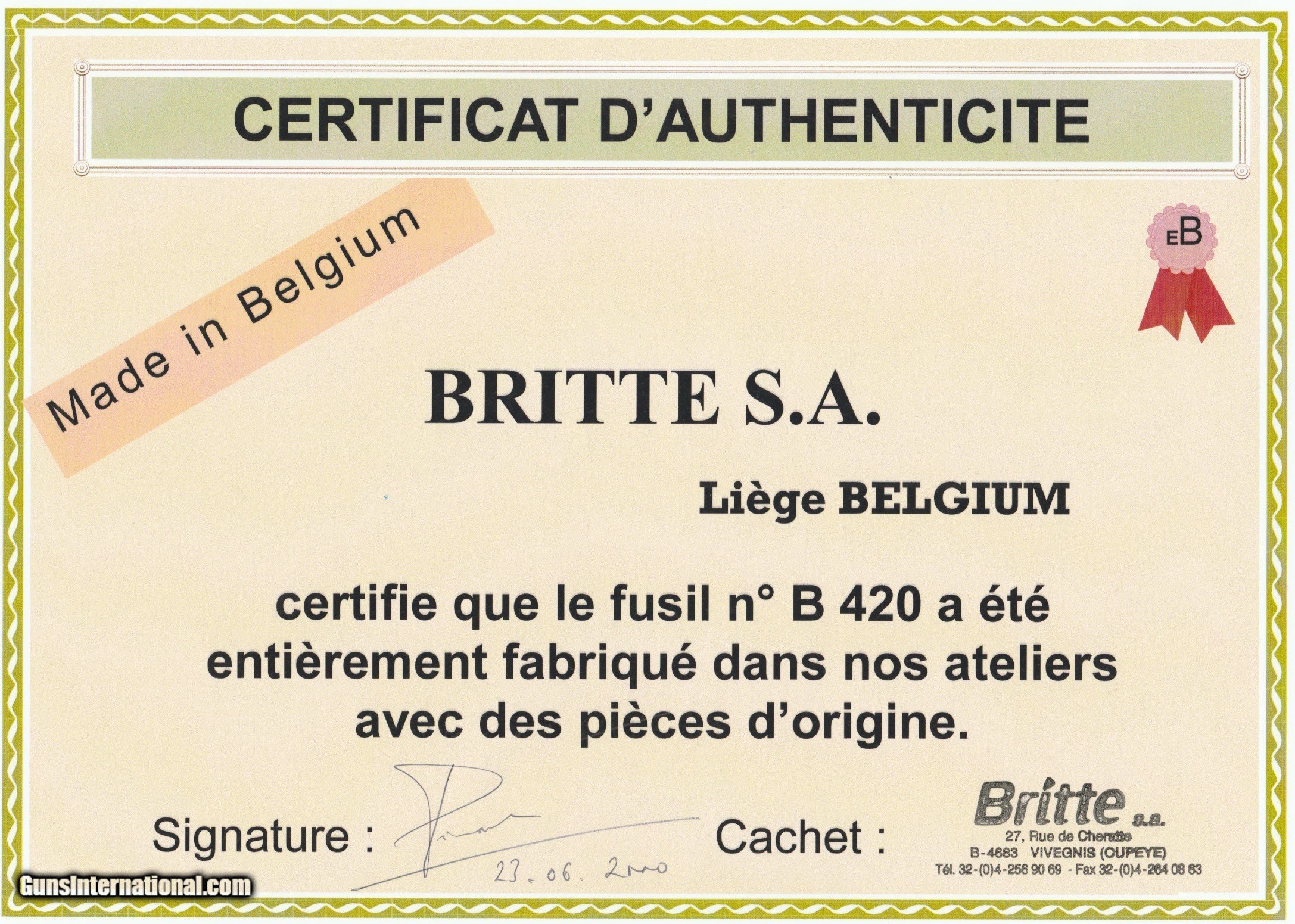 please mention that you saw their listing on GunsInternational.com