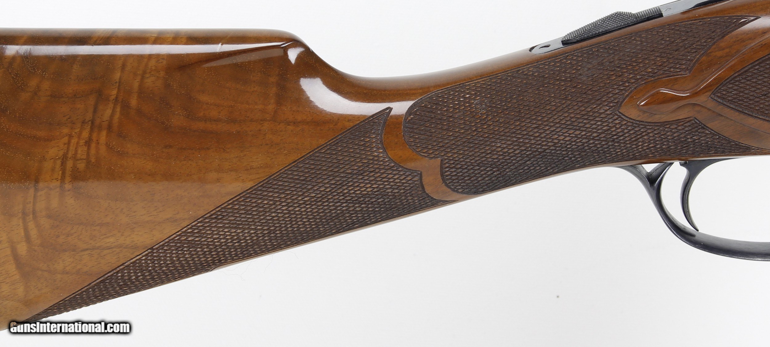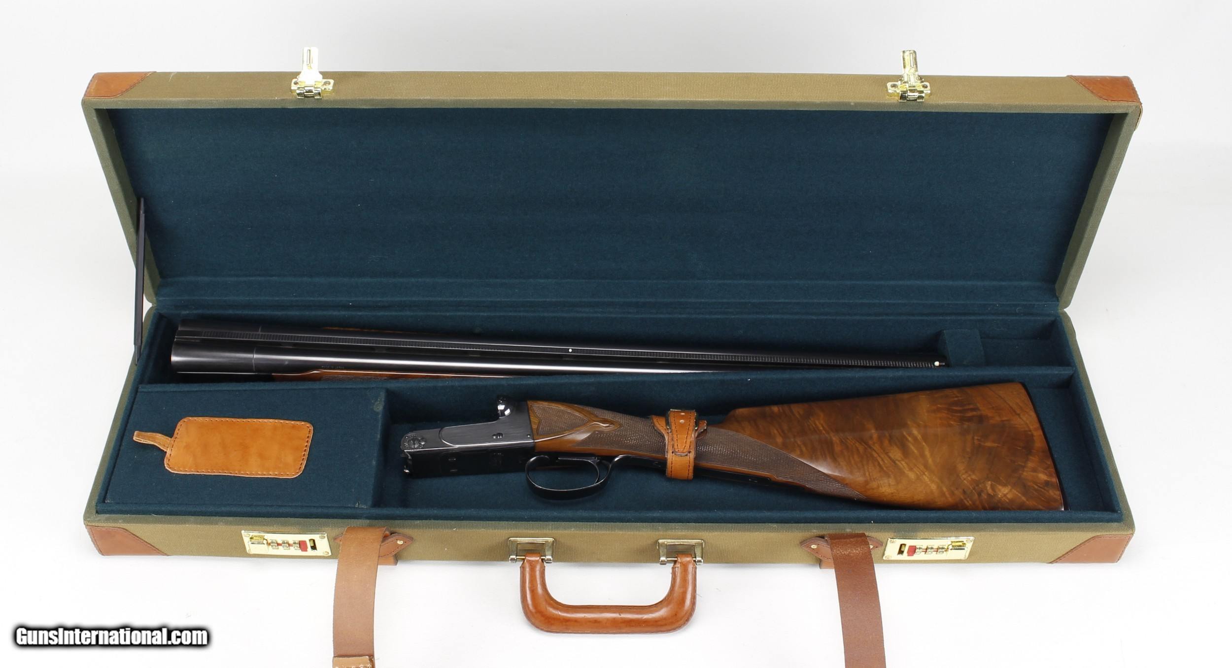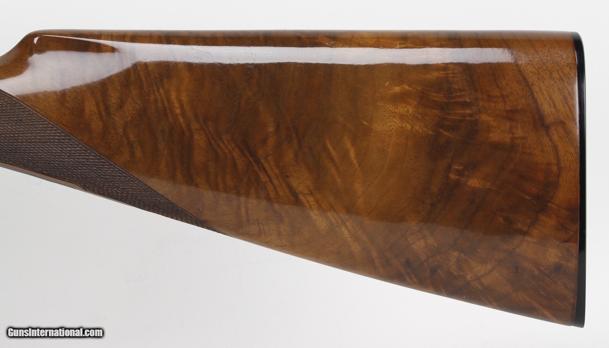 Description: CLASSIC DOUBLES, 201 FIELD, 25 1/2" Barrel, Single Select Trigger, Choked IC & Mod. Mfr'd in Japan by Olin-Kodensha. SN#CL5776, MFG: 1987. This Side X Side, is a close copy of the Winchester Model 21. Olin found out that the Winchester Market would not Accept guns made in Japan in the 1980's, and soon moved production back to USA. This is a very fine Shotgun, from the factory that still makes the Browning Line, and also built Many Winchester Re-production and Collectible Guns in the late 90's and early 2000's. LOP: 14 1/4", DAC: 1 1/2", DAH: 2 1/4", Weight: 6lbs, 9ozs. Ships to Lower 48, with Insurance: $45.00 SOLD |