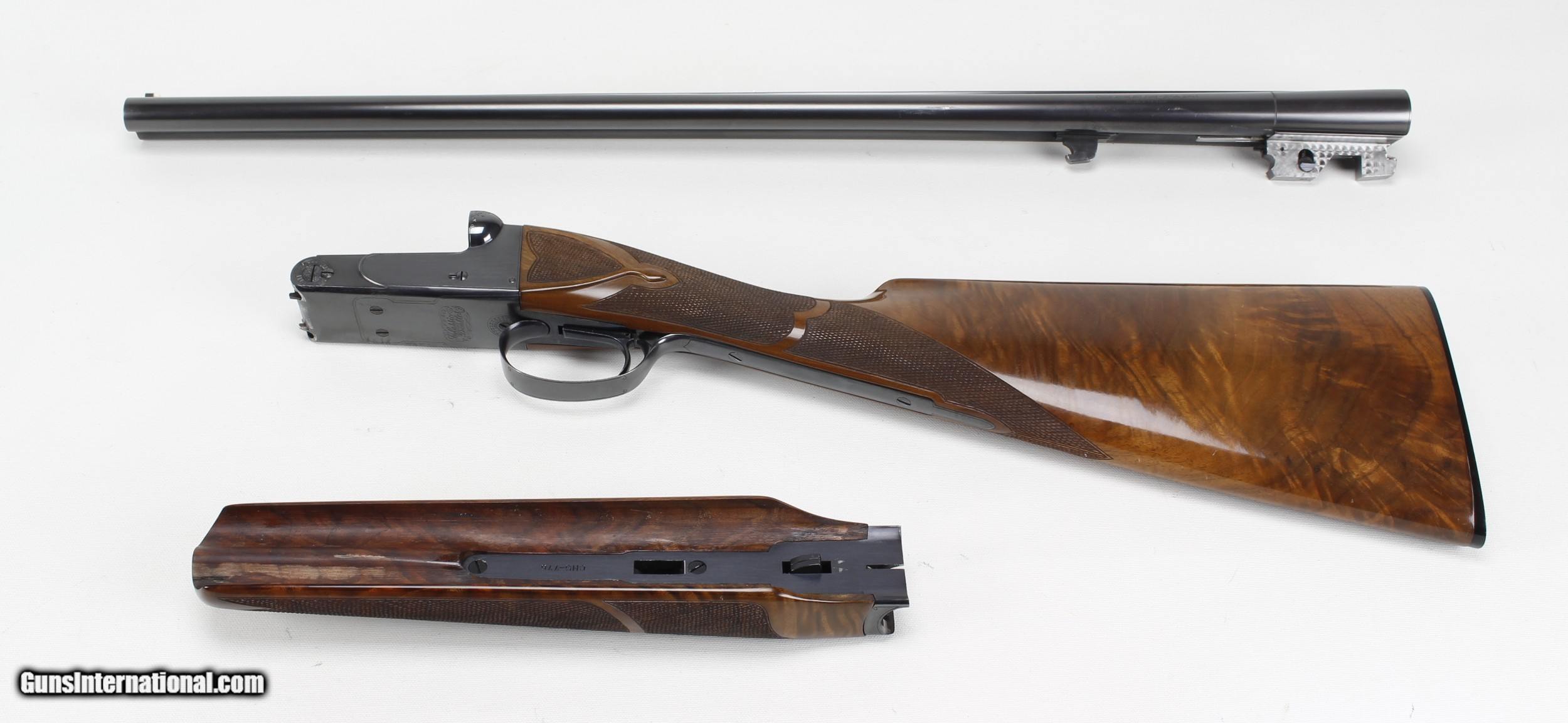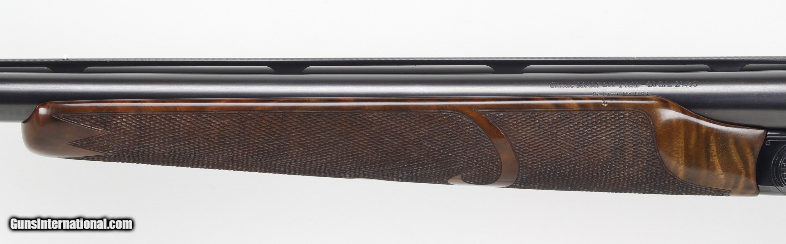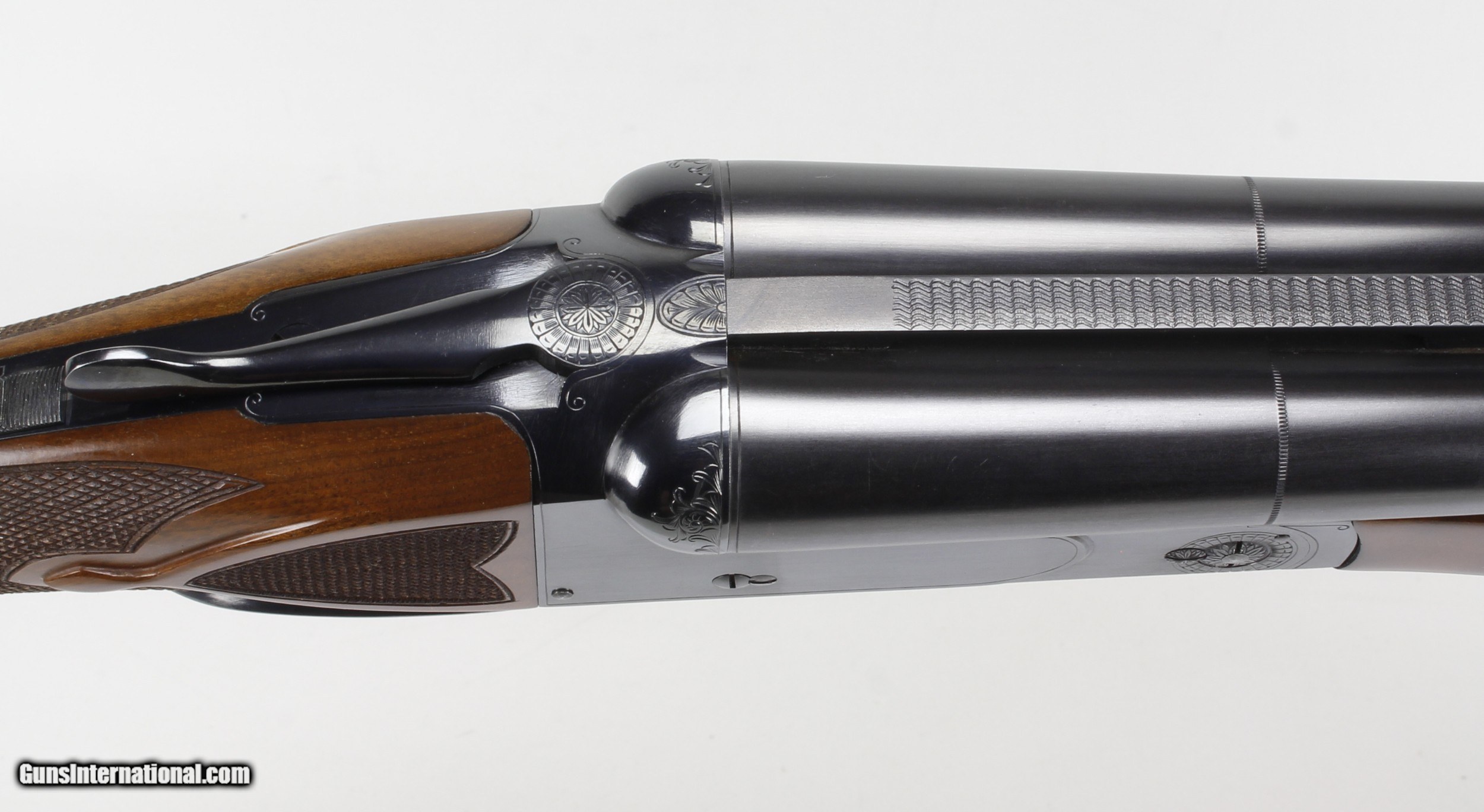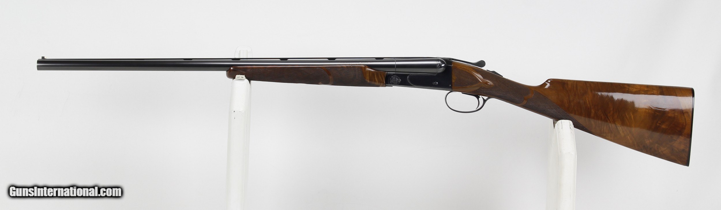 Description: CLASSIC DOUBLES, 201 FIELD, 25 1/2" Barrel, Single Select Trigger, Choked IC & Mod. Mfr'd in Japan by Olin-Kodensha. SN#CL5776, MFG: 1987. This Side X Side, is a close copy of the Winchester Model 21. Olin found out that the Winchester Market would not Accept guns made in Japan in the 1980's, and soon moved production back to USA. This is a very fine Shotgun, from the factory that still makes the Browning Line, and also built Many Winchester Re-production and Collectible Guns in the late 90's and early 2000's. LOP: 14 1/4", DAC: 1 1/2", DAH: 2 1/4", Weight: 6lbs, 9ozs. Ships to Lower 48, with Insurance: $45.00 SOLD |