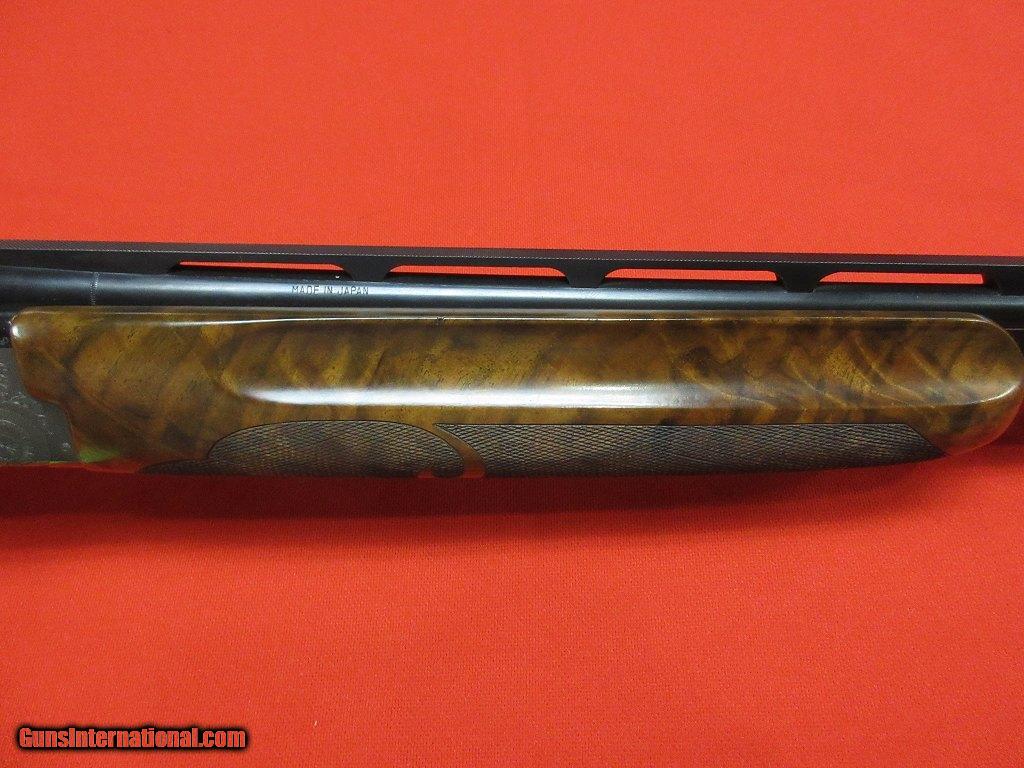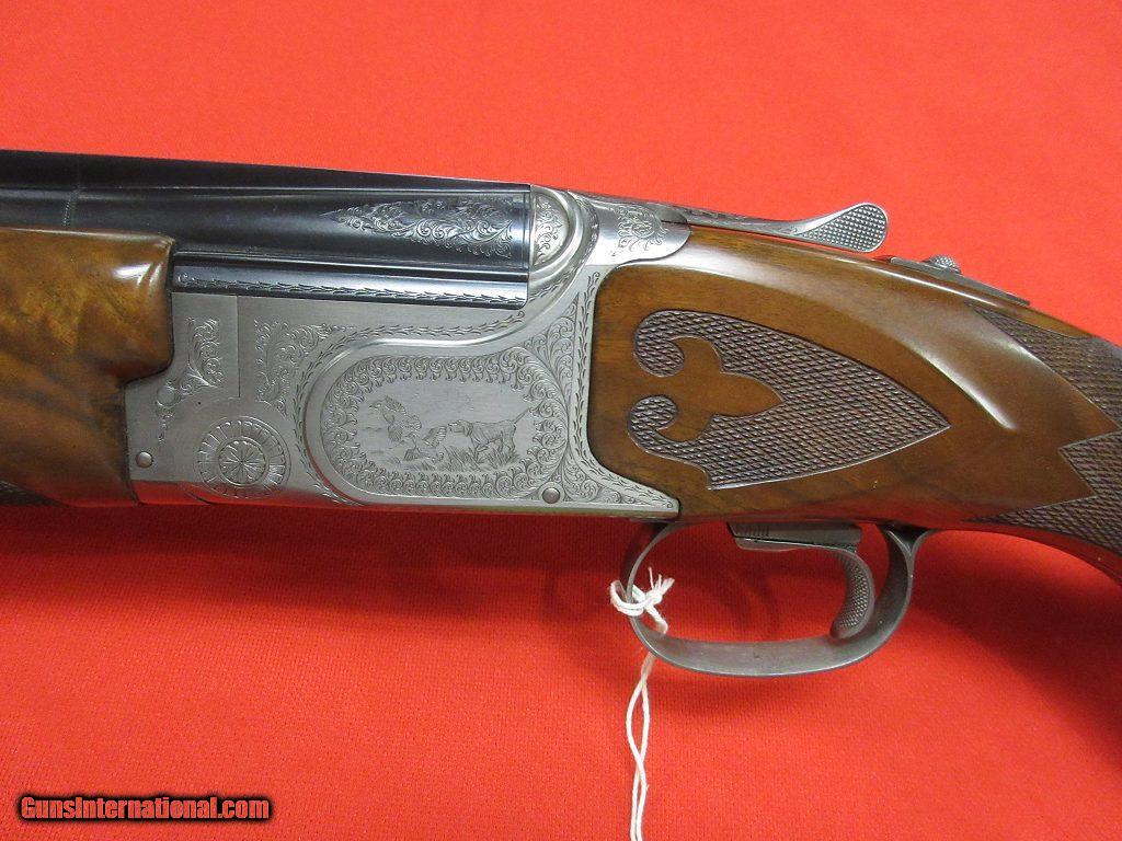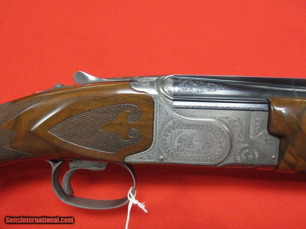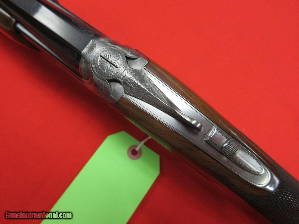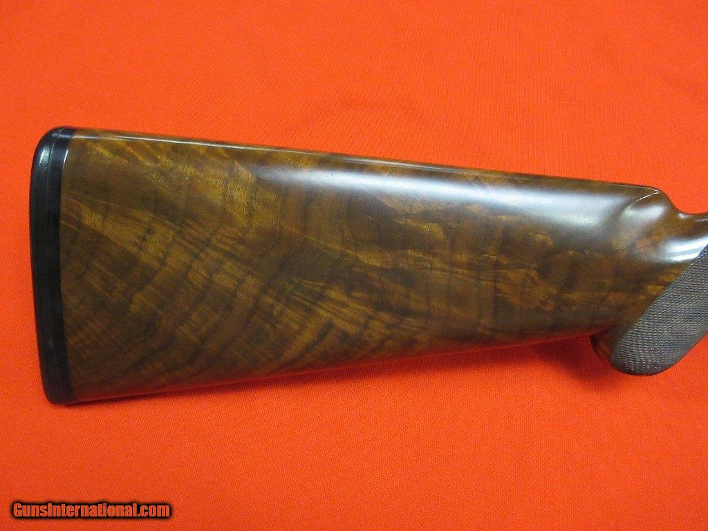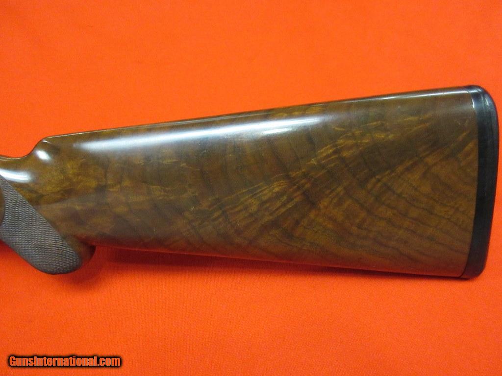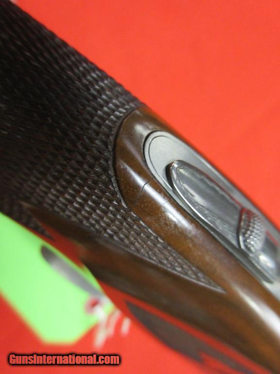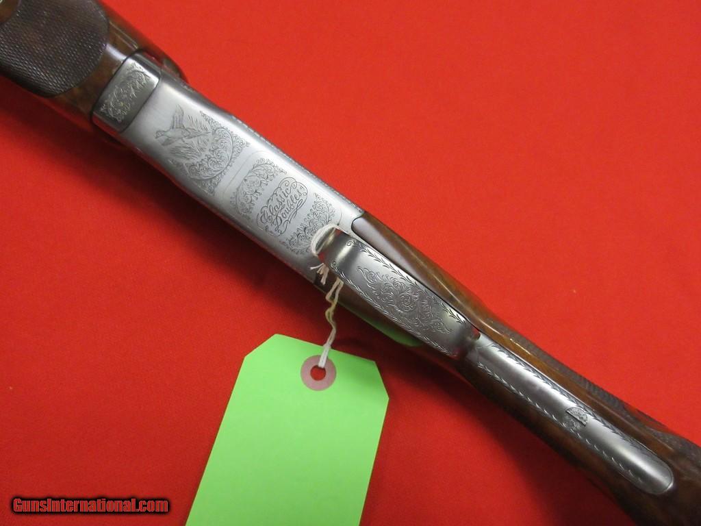 Description: Classic Doubles 101 Classic 410ga/28" Multichoke (USED) -- Coin finished "baby frame" with game scene engraving in scroll. Factory original with five Briley screw-chokes (F, M, IC & 2-SK). Fleur-de-lis checkering with round knob pistol grip. 14 1/2" lop over thin Pachmayr pad. Condition is excellent showing some light use. There is a very small crack in the stock comming of the right side rear of the top tang. You don't see these often and this is priced to sell. SOLD |