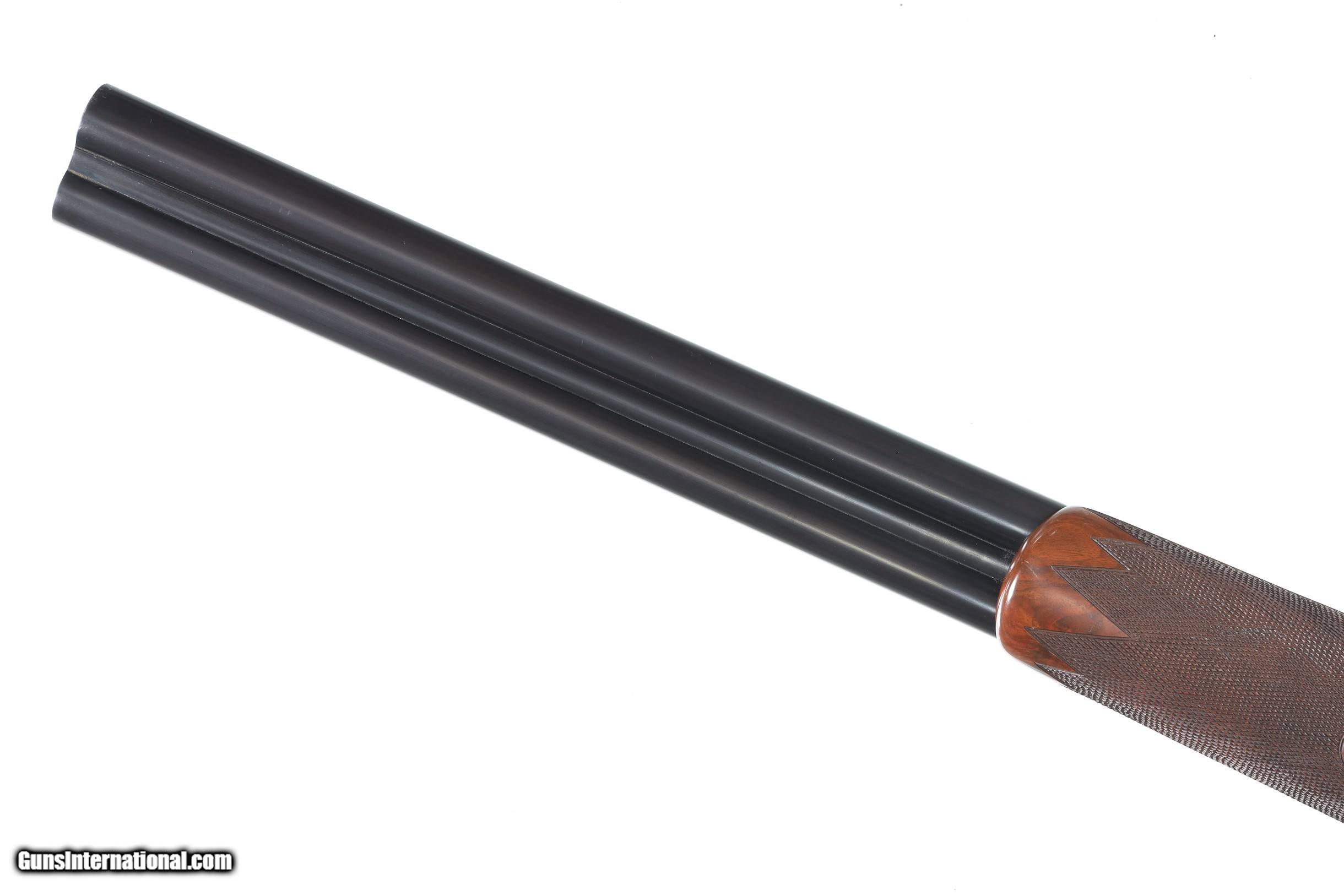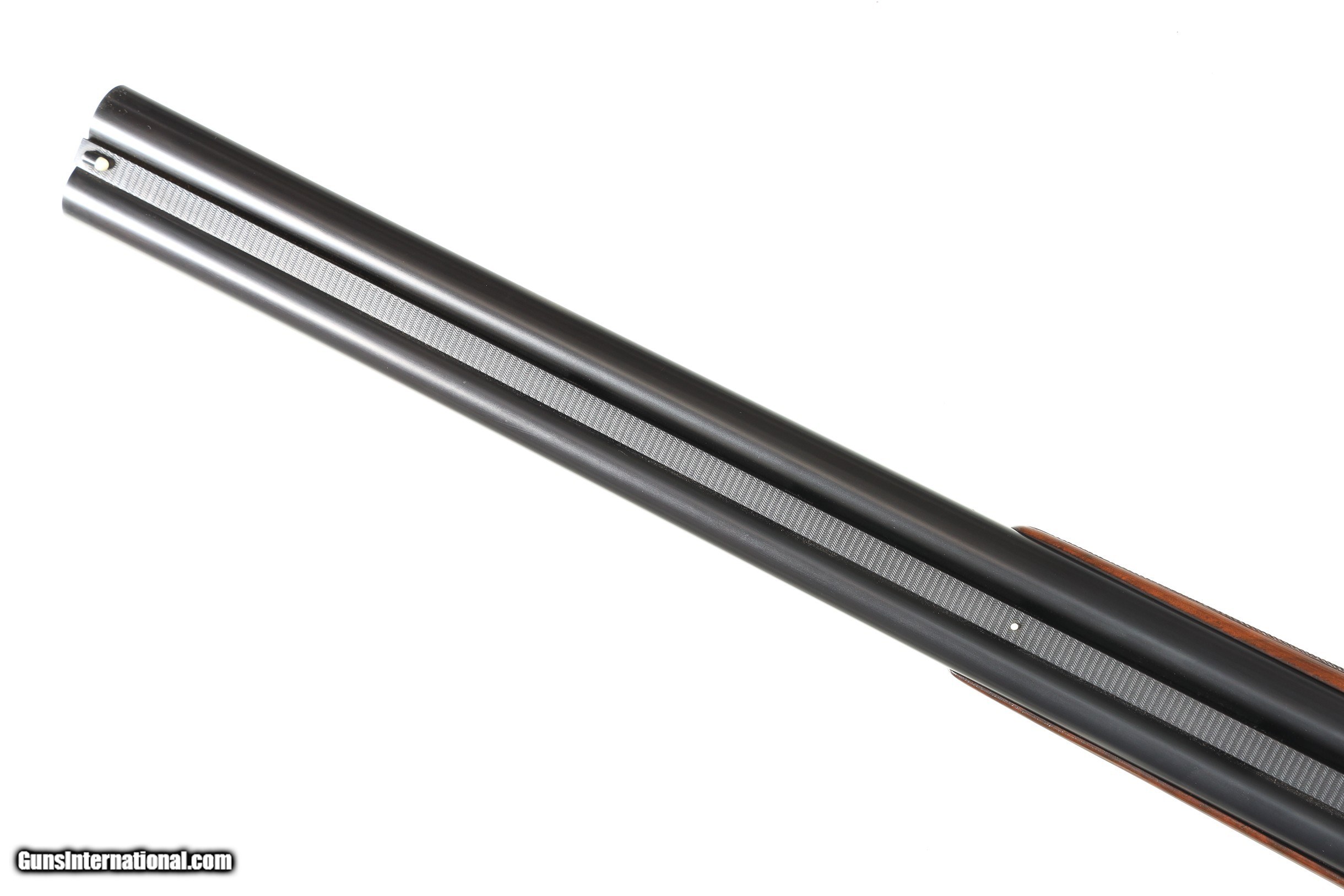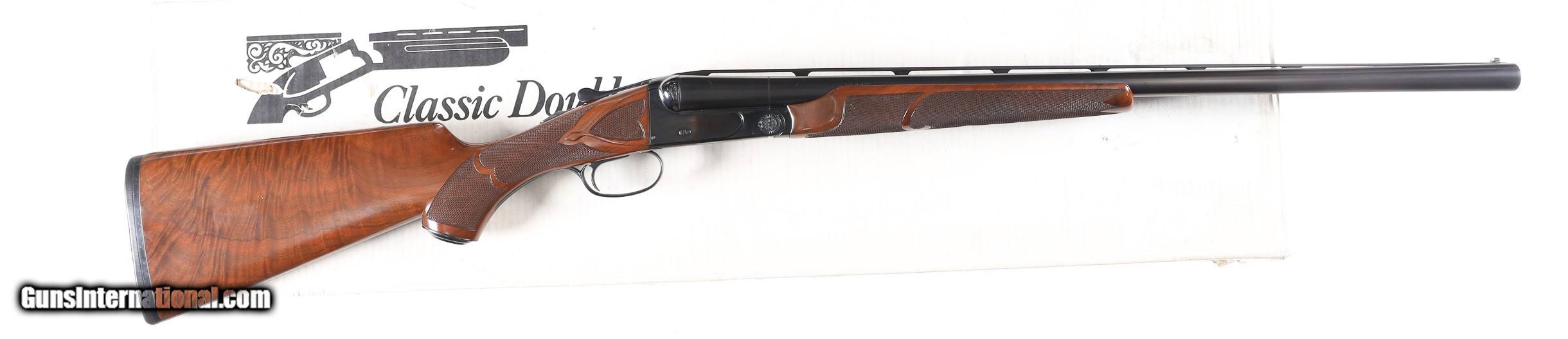 Description: Classic Doubles Winchester 201 12 ga. Faithful reissue of the Winchester 21 with blue finished boxlock action, raised vent rib bbl with single sight bead. Single selective trigger with ejectors. Varnished checkered pistol grip walnut stock with steel pistol grip cap and factory recoil pad. Interchangeable chokes. Barrel 26"LOP 14-1/2", DAC 1-1/2" DAH 2-1/4", Chamber 3". Condition is extremly fine showing little use. Stocks are excellent and action operates properly. Comes in factory shipping box with spare choke tube. Mfg in 1987 SOLD Shotgun Gauge: 12 Gauge Manufacturer: Classic Doubles Model: 201 Field Serial Number: CH2-838 Barrel Length: 26 |
