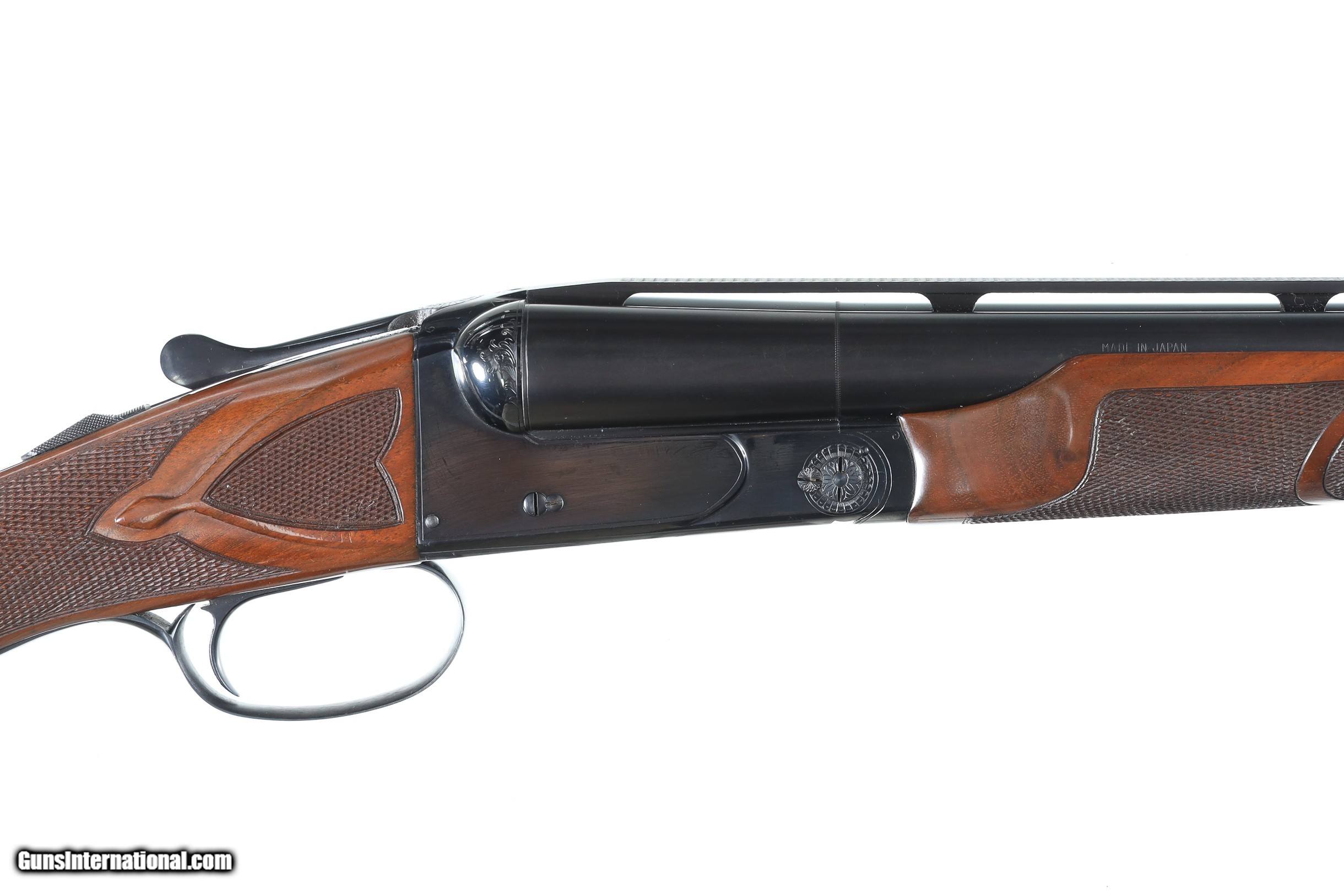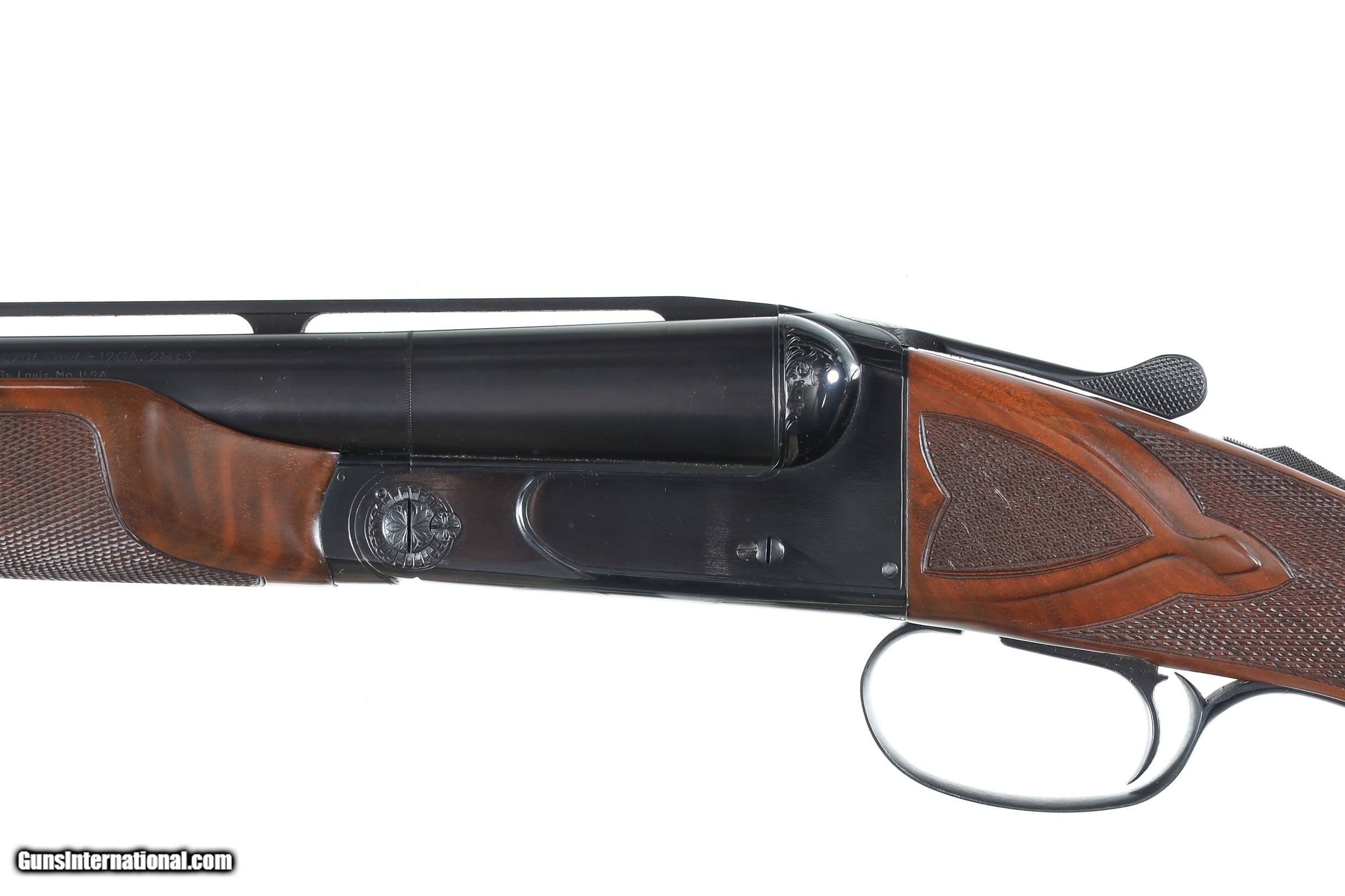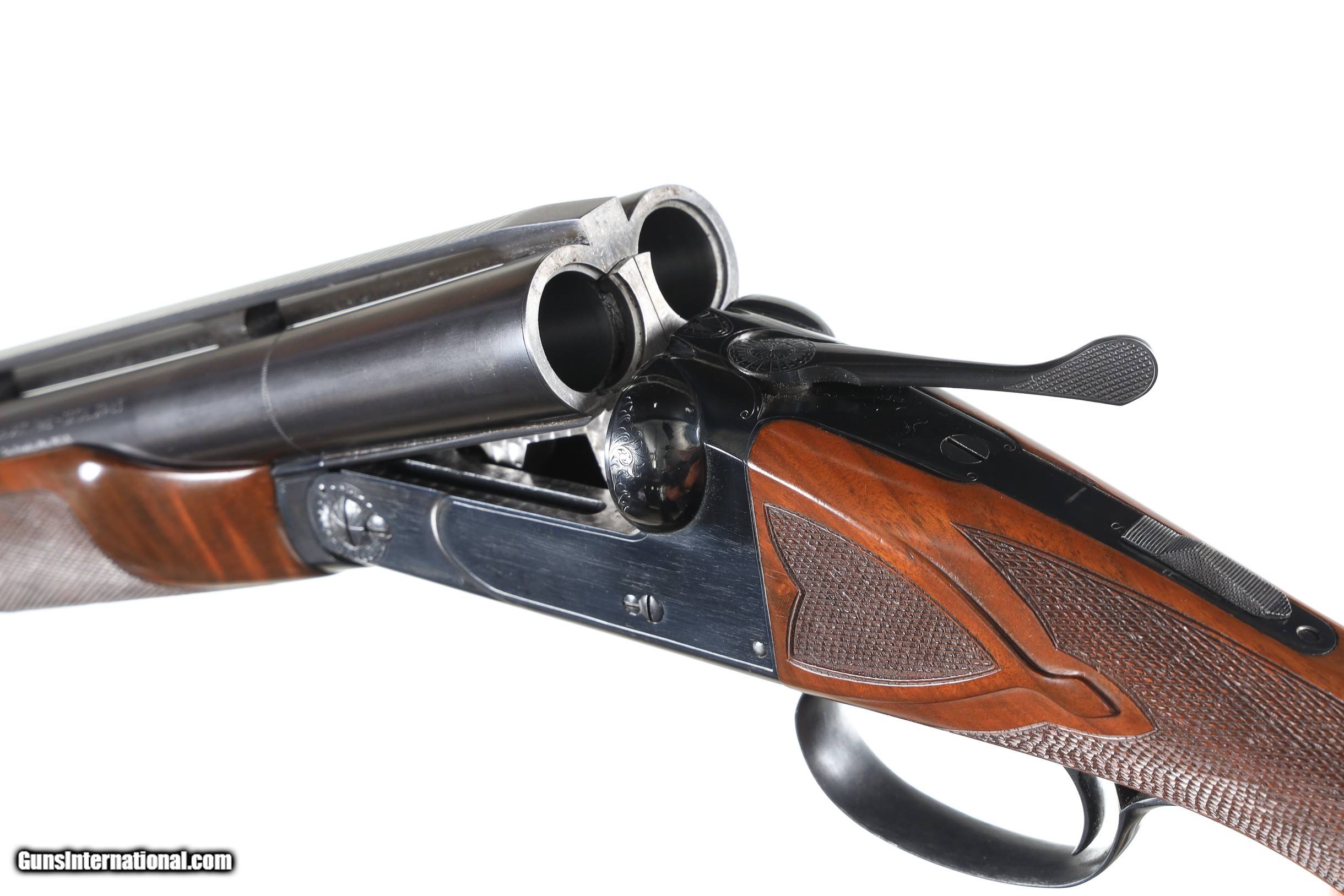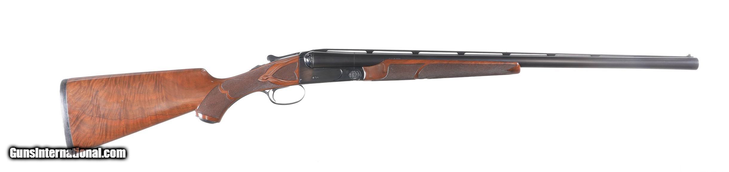 Description: Classic Doubles Winchester 201 12 ga. Faithful reissue of the Winchester 21 with blue finished boxlock action, raised vent rib bbl with single sight bead. Single selective trigger with ejectors. Varnished checkered pistol grip walnut stock with steel pistol grip cap and factory recoil pad. Interchangeable chokes. Barrel 26"LOP 14-1/2", DAC 1-1/2" DAH 2-1/4", Chamber 3". Condition is extremly fine showing little use. Stocks are excellent and action operates properly. Comes in factory shipping box with spare choke tube. Mfg in 1987 SOLD Shotgun Gauge: 12 Gauge Manufacturer: Classic Doubles Model: 201 Field Serial Number: CH2-838 Barrel Length: 26 |