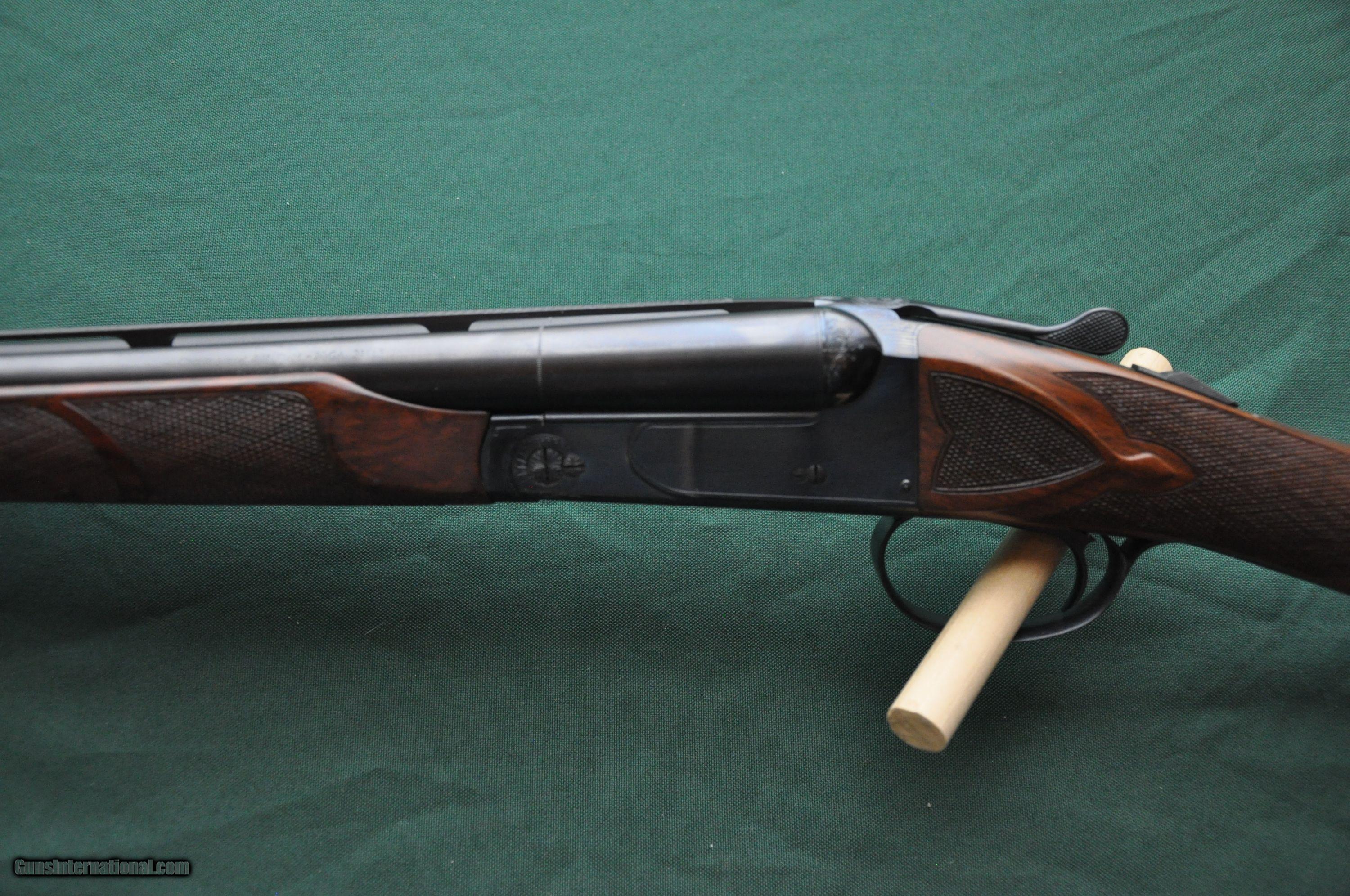 Description: Classic Doubles Model 201 20 Gauge Side by Side Shotgun. 26" vent rib barrels, choked improved cylinder and modified, chrome lined bores and is compatible with steel shot. Dual ivory beads with center rib half-bead, 2 3/4" and 3" chambers, single selective trigger, ejectors, lightly engraved blued receiver, blued barrels, premium walnut stock and forearm with fine line checkering. English grip. Pachmayr Old English recoil pad. LOP= 14 5/8", DAC= 1 1/4" DAH= 2". The gun is in excellent shape, about 97% condition with some very minor blue wear and a few scattered light marks in wood, excellent gun for upland birds.With Factory Box and paper. Buyer pays $40.00 shipping, 3-day inspection. Buyer pays to ship both ways. SOLD Manufacturer: Classic Doubles Model: 201 Bore: IC/MOD Chambers: 3 Ejectors: Yes Condition: 97% Metal Condition: 97% Wood Condition: 97% Bore Condition: Execllent Barrels: 26 Gauge Info: 20 Stock: English Stock Comb: 1 1/4 Stock Heel: 2 Fore End: Beavertail Butt Pad: Factory old English LOP: 14 5/8 Rib: Ventilated Weight: 7 lb Choke Left: Improved Cylinder Choke Right: Modified |