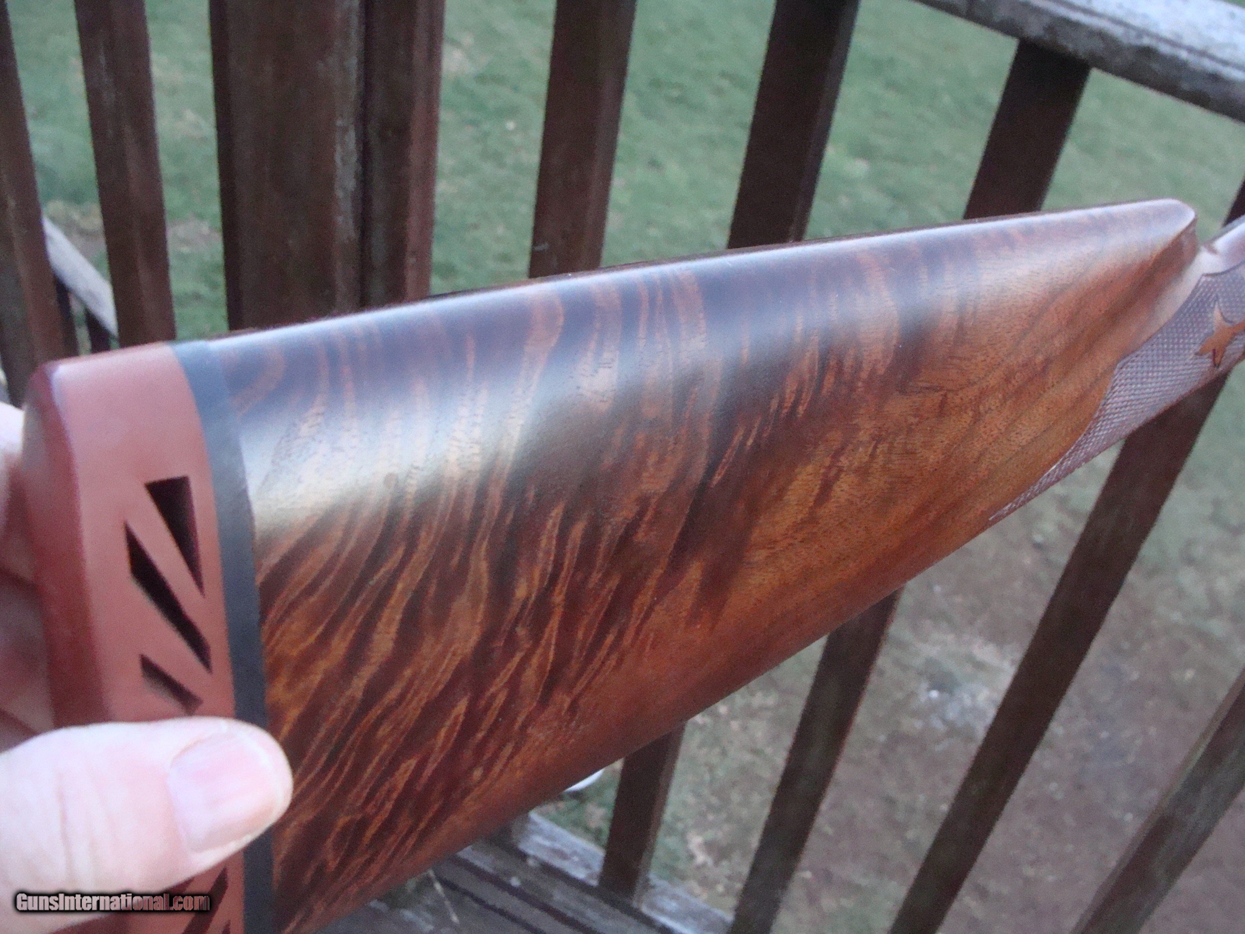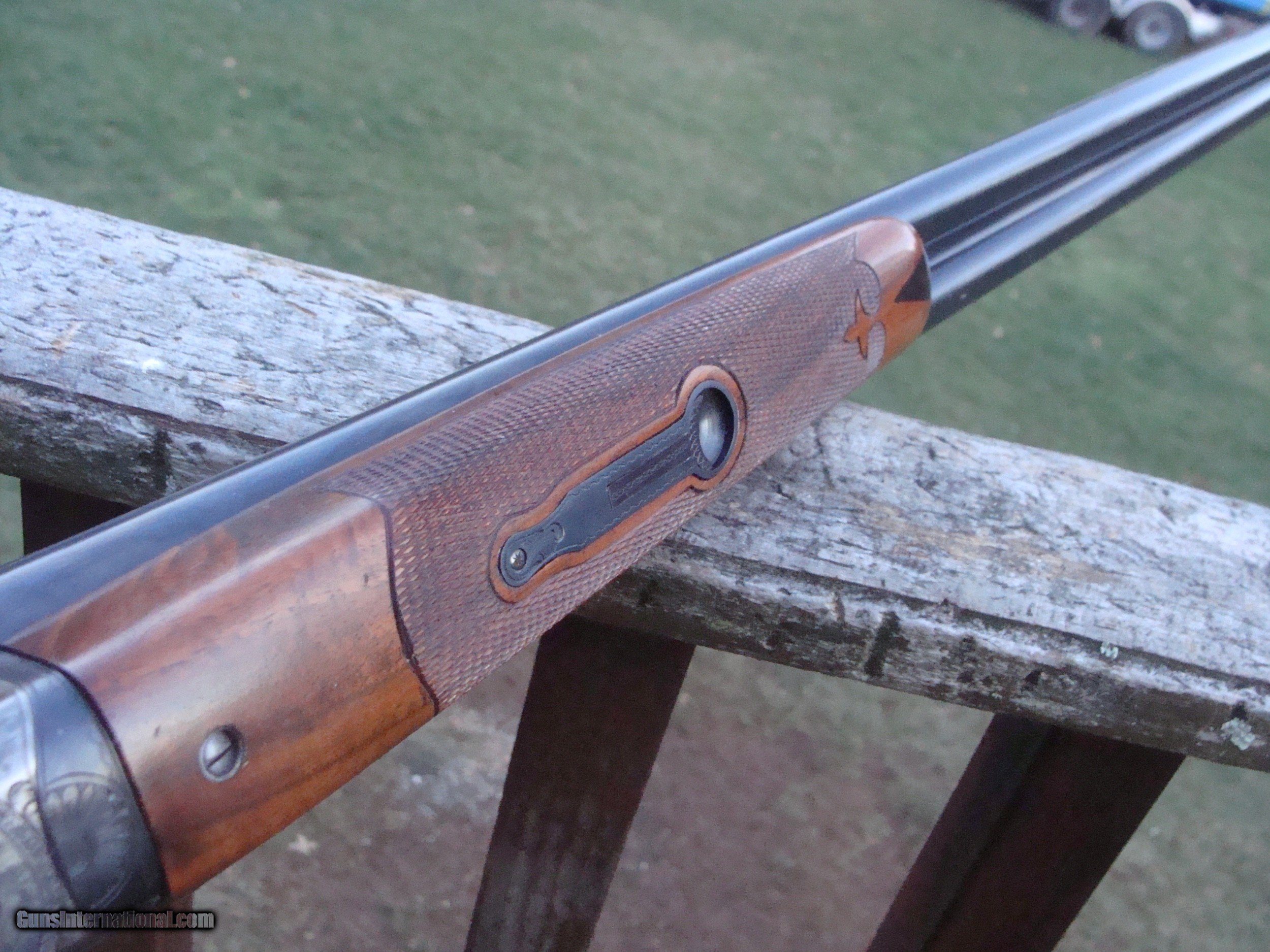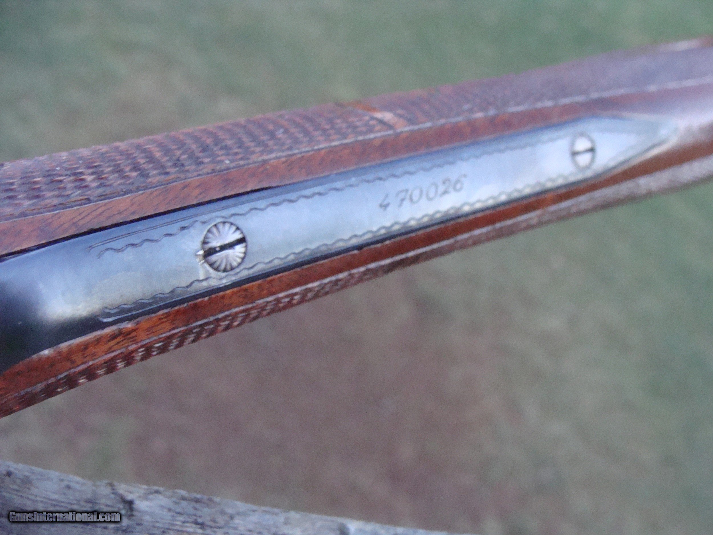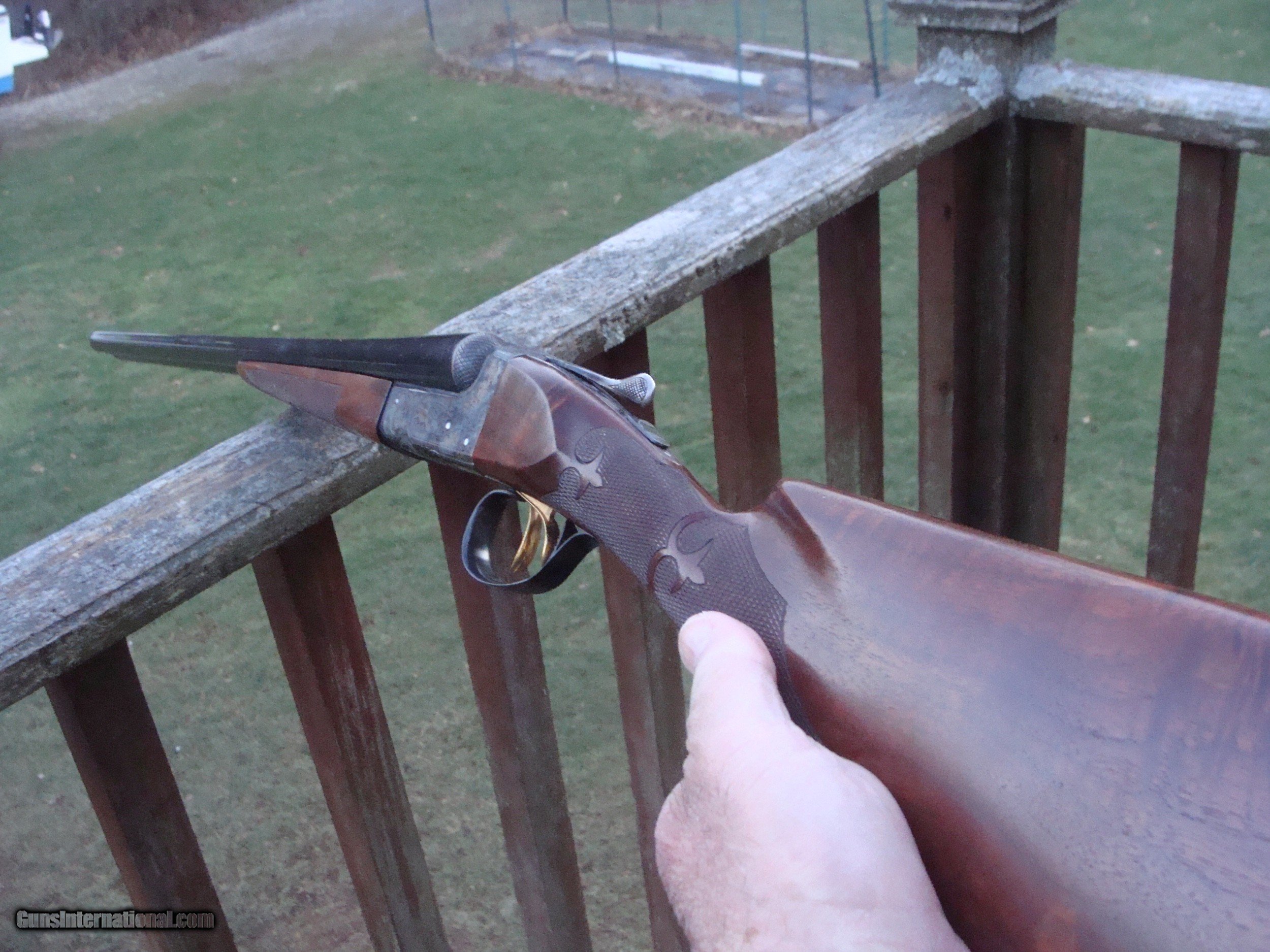 Description: Made Briefly with only approx 1000 made. Essentially a hand made gun resembling higher grade Parker Repro's. Deep Case Corlorored receiver is fully engraved with flying duck left side, snipe on the bottom and pheasant rite. It is belived that the case colors were done by Turnbull.. The rest of receiver is covered in floral . Handsome strait stock with nicely figured American Walnut, factory pad with nicely done fleur de list checkering showing no wear. LOP to end of Factory Pad is 15 and 14 1/8 approx to end of wood. Splinter forend with ebony inlet at end Solid filed solid ribe 28" barrel. Weights 6 1/2 lbs, points and swings beautiully . Would make a terrific Pheasant, quail, dove or grouse gun that anyone would be proud to own This fine US Made double is in as new cond. and is being offered for thousands less than others identical to it. WE DO NOT REPLY TO INQUIRIES THAT SAY "INTERESTED IN THIS GUN" OR "IS IT AVAILABLE" IF YOU WOULD LIKE TO BUY THIS OR ANY OF OUR GUNS WE SUGGEST YOU PHONE US; WE ARE OFTEN AVAIALABLE LONG HOURS. IF THIS OR ANY OF OUR LISTINGS DOES NOT SAY NEXT TO THE PRICE "SALE PENDING" IT IS AVAILABLE IF YOU ARE INTERSTED IN A GUN THAT IS UNDER DEPOSIT AND WOULD LIKE TO BE NOTIFIED IF A SIMILAR GUN COMES IN DROP US A LINE AND WE WILL MAKE EFFORTS TO CONTACT YOU WHEN ONE DOES COME IN. WE HAVE OVER 1500 SALES ON ALL SITES WITH AN A+ RATING ON ALL WE ALSO KEEP AN INVENTORY OF OLDER PERIOD CORRECT SCOPES; CALL WITH NEEDS WE MOSTLY PICK VERY CLEAN AND LIGHLTY USED GUNS. WE ARE HAPPY TO TAKE CONSIGNMENT GUNS AND COLLECTIONS OR WILL BUY YOURS OUTRIGHT. WE SOMETIMES ARE EMPLOYED FOR ESTATE PURPOSES AND VALUATIONS. CT RESIDENTS MUST CONTACT US TO UNDERSTAND OUR IN STATE TRANSFER POLICIES. WE CAN TAKE A CREDIT CARD HOWEVER THERE IS A 3% ADD ON BASED ON THE TOTAL FOR USE OF A CARD. IT IS ALWAYS THE BUYERS RESPONSIBILITY TO GET US A COPY OF YOUR RECEIVING FFL'S LIC AND WE REQUIRE A COPY OF YOUR PHOTO ID BEFORE THE GUN SHIPS YOU MUST CALL YOUR FFL.WE DO NOT CALL FOR YOU. LAYAWAY PURCHASES NOT COMPLETED OR ANY RETURNED ITEM UNLESS NOT AS DESCRIBED OR DAMAGED ARE SUBJECT TO A 10% RELISTING/RESTOCKING FEE AND MUST BE RETURNED WITH NO NEW MARKS OR SCRATCHES, SENT BACK INSURED, PRIORITY SIGNATURE REQUIRED SOLD |
