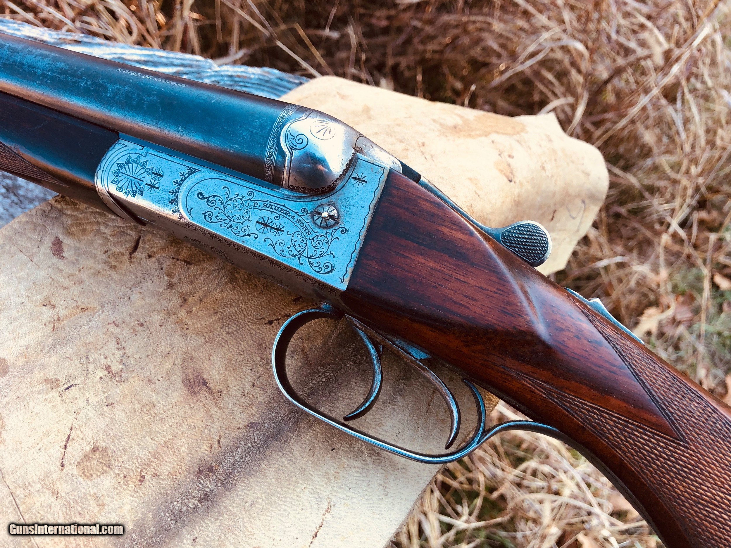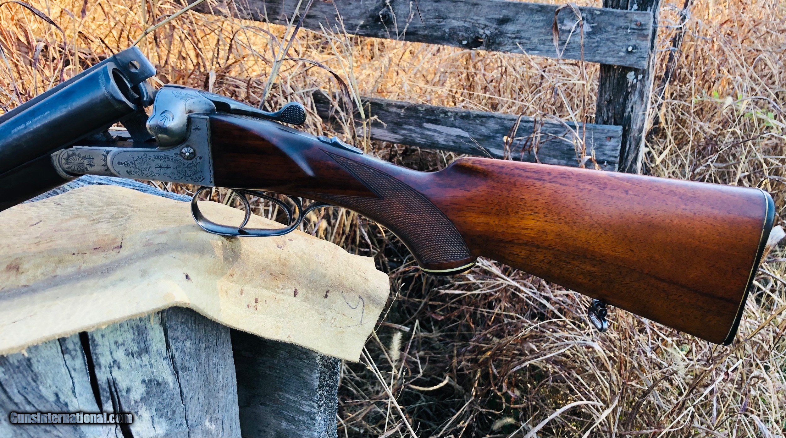Description: Attention bird hunters! This is a nice entry level German sxs shotgun that has a lot of nice features for the price. I got this gun in the shop needing the wood refurbished and so I gave a good cleaning to the wood to remove all the old dirt and gunk then rejuvenated what was lest of the existing finish and blended several new coats till it was back up to a beautiful satin polish again. I removed all the packed dirt and finish from the checkering and recut all of it . Other then some blue wear around the barrels where it had been carried the gun is in beautiful shape and tight as a vult and ready to hammer birds. This gun will make someone a very nice pheasant or grouse gun, it has side clips, a greener style crossbolt, cocking indicators, some light engraving, hand cut checkering, and a latch forend. If you have any questions please send me a message thanks. SOLD Shotgun Gauge: 12 Gauge Manufacturer: J.P. Sauer Chambers: 2-3/4” Ejectors: No Condition: Very good Metal Condition: Very good Wood Condition: Very good Bore Condition: Very good Barrel Type: Modern steel Action: Boxlock Triggers: Double Stock: European walnut Stock Comb: 1-5/8” Stock Heel: 2-3/4” Stock Cast: None Fore End: Latch Butt Pad: Hard plastic LOP: 14” Rib: Solid Finish: Oil Weight: 6.5 lbs Sights: Bead Manufacture Date: 1960 Choke Left: Full Choke Right: Full |