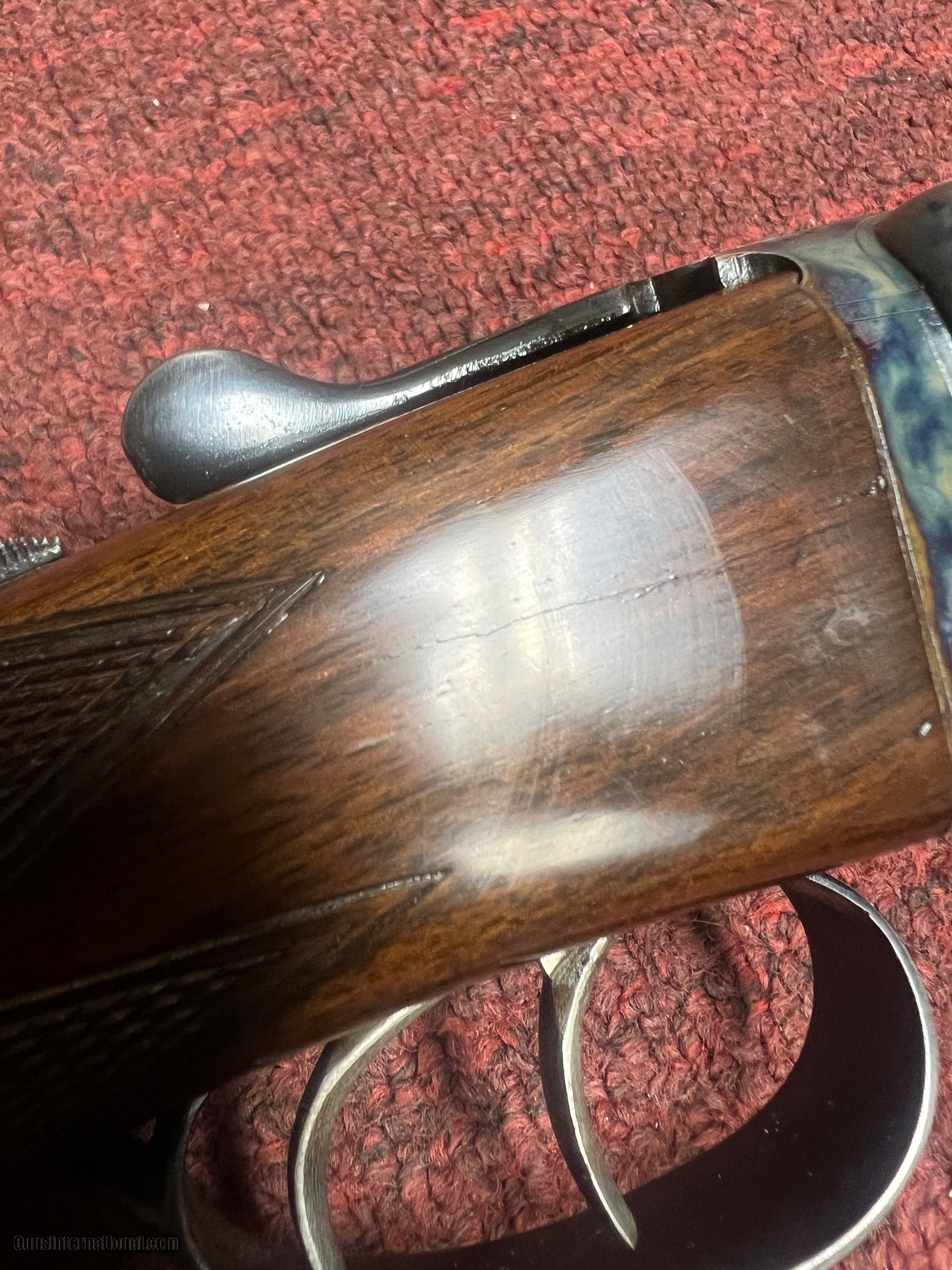 Description: Pre Owned Webley & Scott side by side. 12 gauge with 28" barrels. Fixed choke (Mod,IC). Good condition. Small marks in the wood. Two small fixed cracks in the stock. Shotgun Gauge: 12 Gauge Manufacturer: Webley Scott Barrel Length: 28 Condition: Good Price: $3,000.00 Contact Seller |