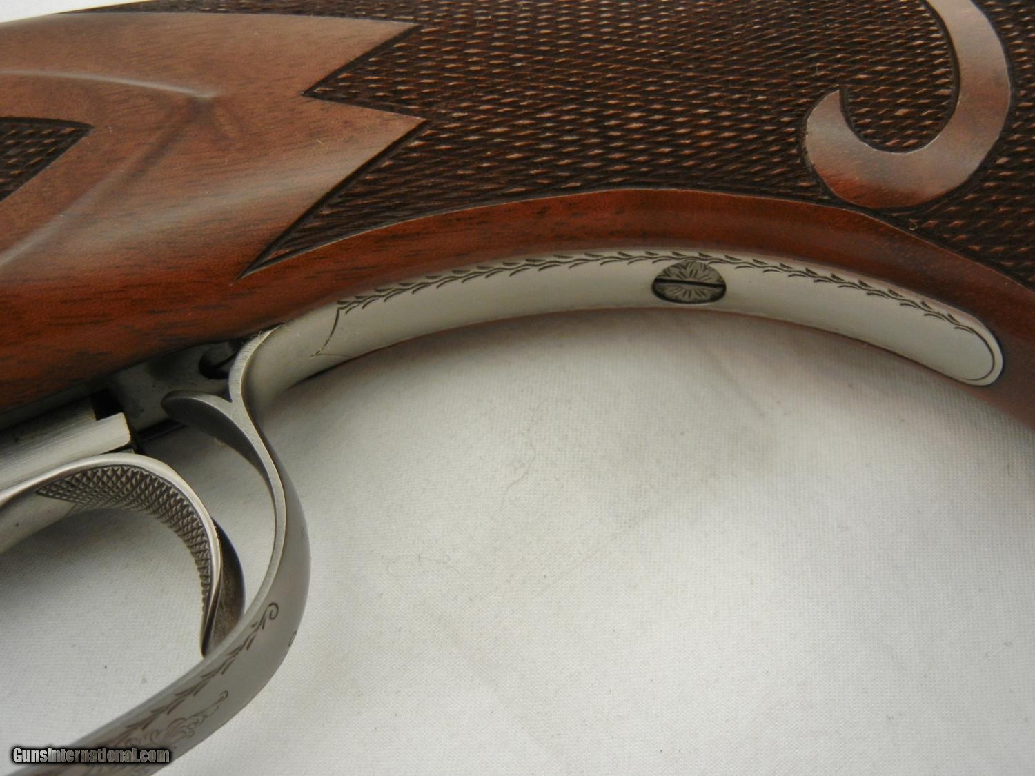 Description: This is a Classic Doubles 410 with 28 inch barrels. This gun is 99%+ in the box with case. Serial # is CA9-501. DAC 1 1/2 DAH 2 1/4 LOP 14 1/4 WT 6lb 7oz. (5)Chokes - Extra Full, Full, Modified, Skeet 1, Skeet 1. Buyer pays 65.00 shipping. Thank you. 32-21-15 SOLD |