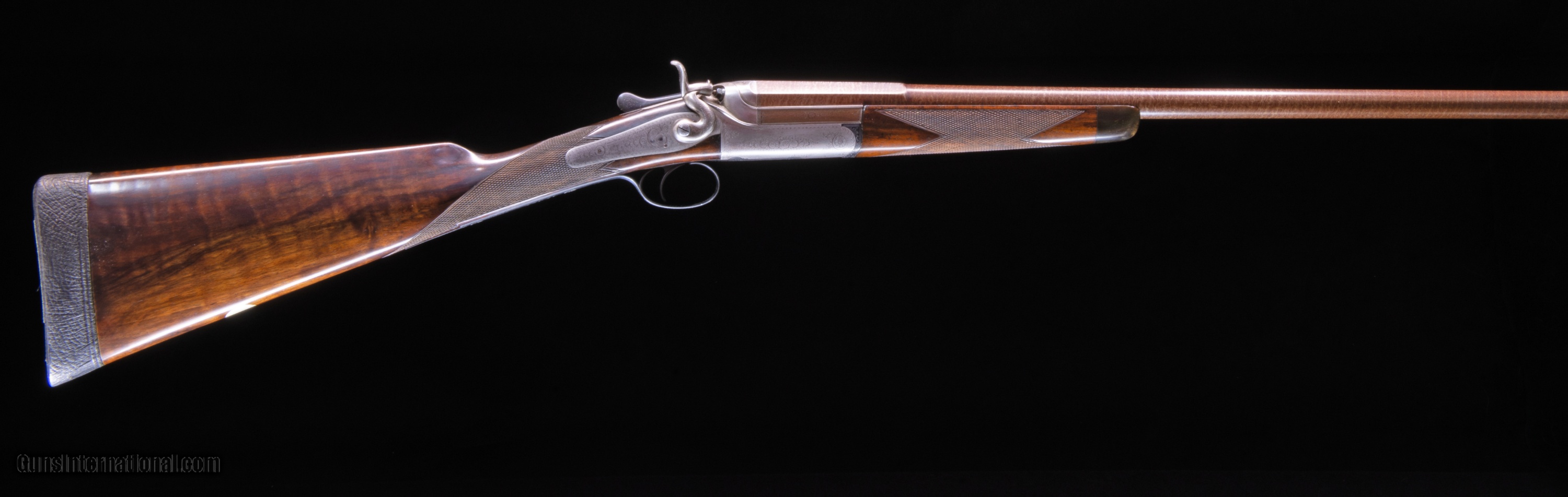 Description: Hammerguns - London proofed for 2 3/4" in 2007 this Teague lined single shot is a very classy little lady. The Damascus pattern is just stunning and the wood extremely elegant. Featuring a 28" barrel this petite flower only weighs 4 lbs. 12 oz. One could certainly carry this gun all day afield. This gun feels extremely good between the hands! *** Note: To see this gun with high resolution photos and a zoom-in feature, go to the vintagedoubles main site and search for the gun ID: 4447 or browse the main site to see our full gun collection. |