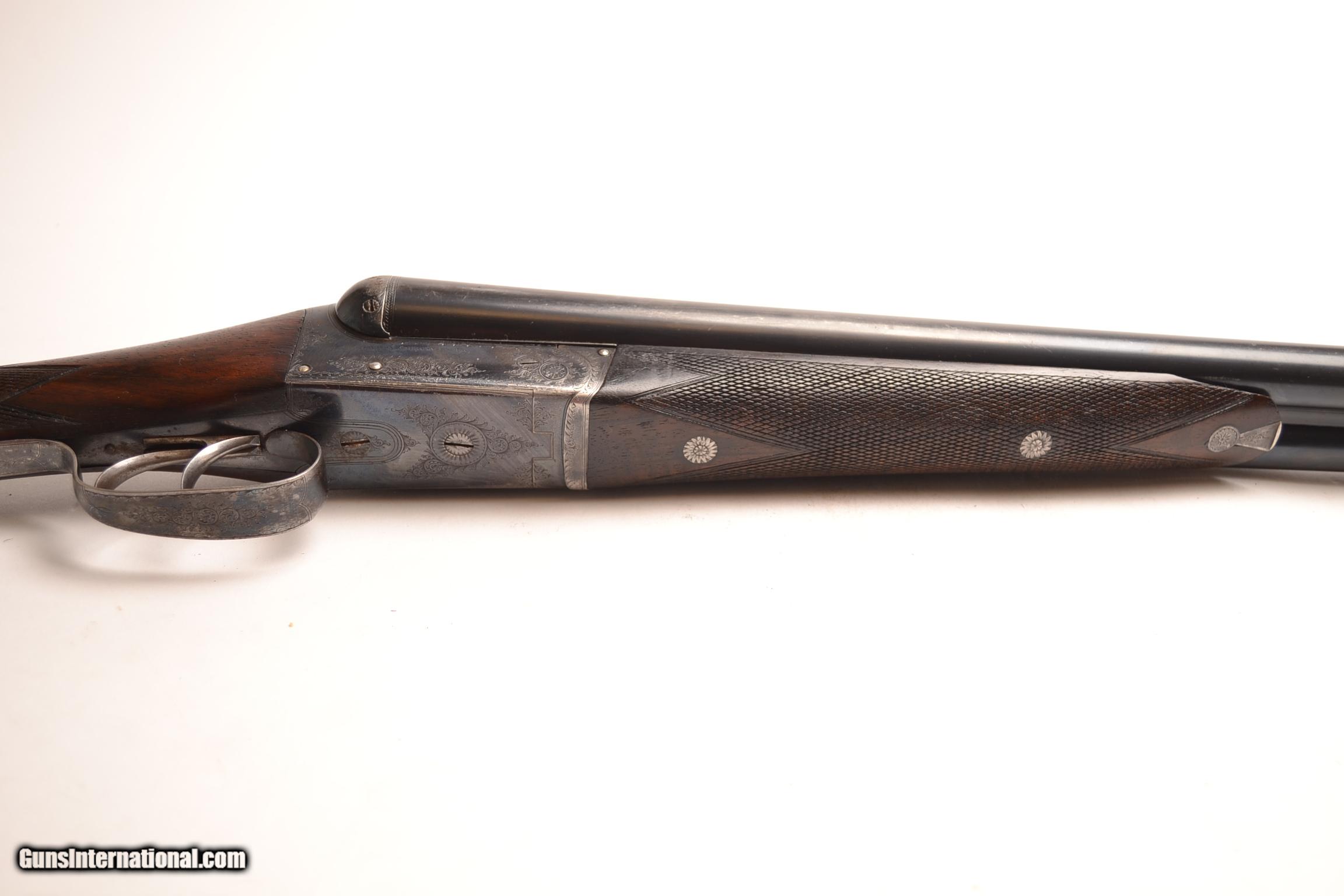 Description: Cogswell & Harrison – Avant Tout, 12ga., 30” barrels, M/F choked, straight grip stock, double triggers, automatic ejectors, splinter forend, checkered butt, mechanically sound gun, double bite lockup with Greener style crossbolt, 2 ½” chamber with 1 1/8 oz London proof, various handling marks on wood, 80% barrel bluing, assisted opener, game rib, sling swivels. Inv# 25532 6 lbs. 8 oz. 13 1/2”x 1 5/8” x 2 1/2” $2,299.00 SOLD |