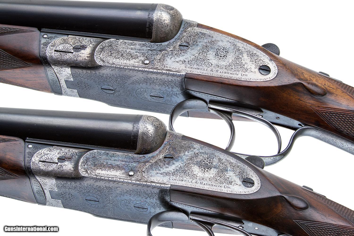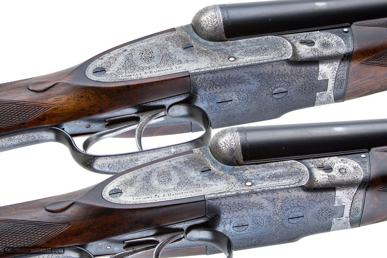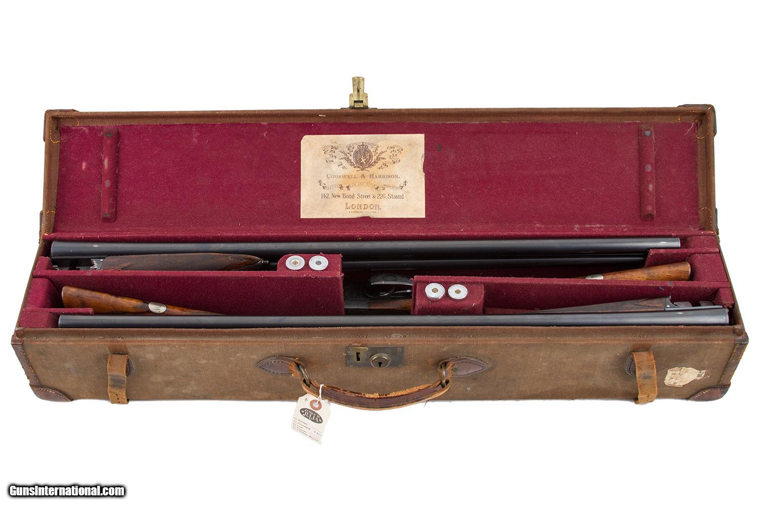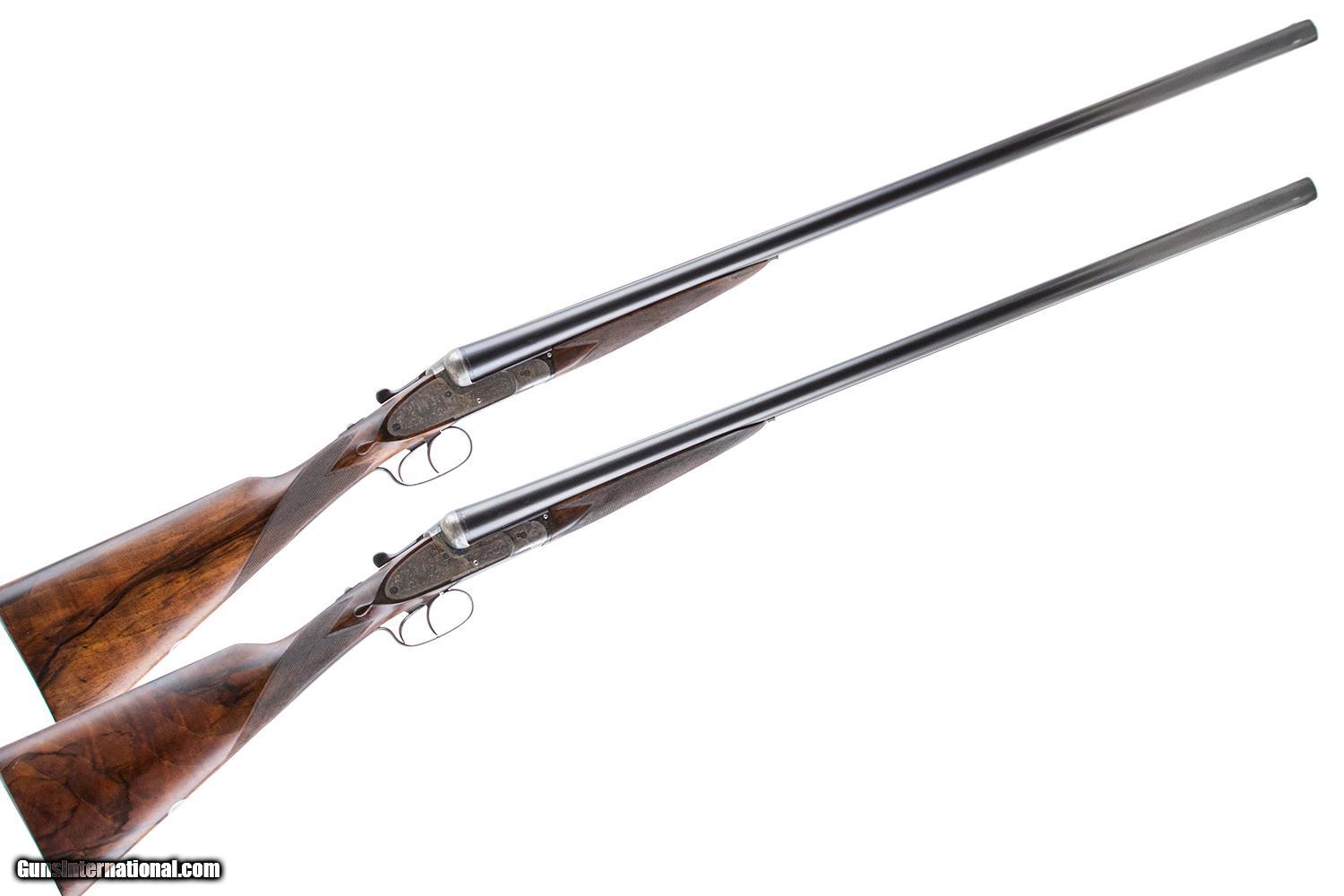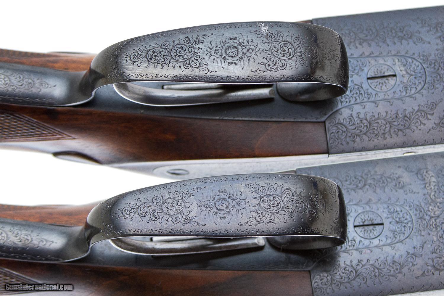 Description: BOTH GUNS HAVE 30" BARRELS AND BOTH ARE OO6 AND 016 BOTH ARE 2 3/4 DOUBLE TRIGGER EJECTORS SPLINTER FOREARM ENGLISH GRIP BOTH ARE 6LBS 9 OZ X 2 X 1 /16 X 13 3/4 MAKERS MOTOR CASE THESE ARE NOT CROSS OVER STOCKS THEY HAVE BEEN BENT FOR EXTREME CAST OFF AT FACE OBVIOUSLY MADE FOR SOMEONE WITH A VERY FULL FIGURE AND FACE THEY CURVE BACK FOR NORMAL STOCK PLACEMENT EXCELLENT CONDITION WITH LIGHT WEAR SOLD |