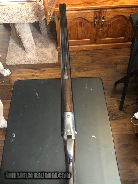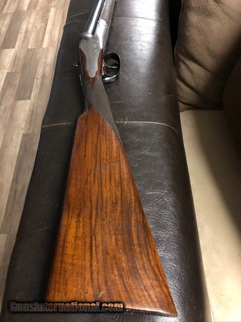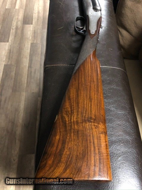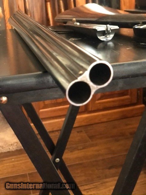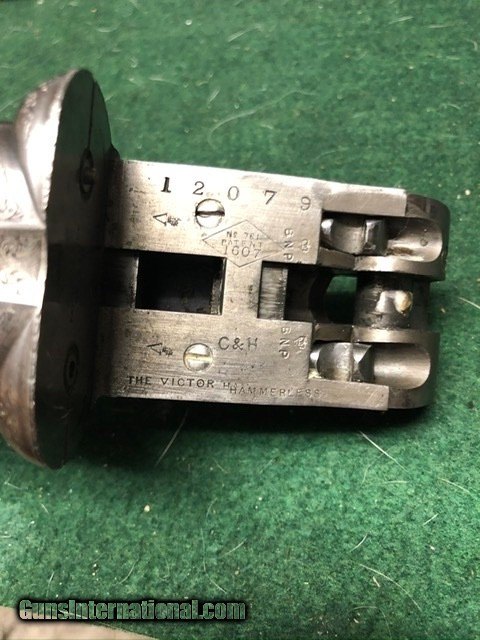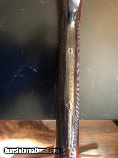 Description: SOLD For sale is my Cogswell & Harrison 16 gauge, “The Victor” sidelock extractor. It was made in 1886 on the round body Scott and Baker patent of 1874. The barrels are 28 in., very well sleeved in the UK with only the faintest seam visible. They are British nitro proofed for 2 1/2 shells. Rib is original and inscribed 142 New Bond Street London with a bit of scroll at the end. Action is beautifully engraved in, sharp, fine scroll and gold cocking indicator, Cogswell & Harrison in banner and gas checks. Gun was rejoined and is tight as new. Forend is original with Rigby-type latch. Gun was beautifully restocked at some point in its life to modern dimensions. Stock is dark-streaked walnut, English grip with with blank oval along toe-line. Drops at 1 1/2 and 2 1/4, LOP 14 3/4, weight 6.2 lbs. SOLD Antique: Yes Shotgun Gauge: 16 Gauge |
