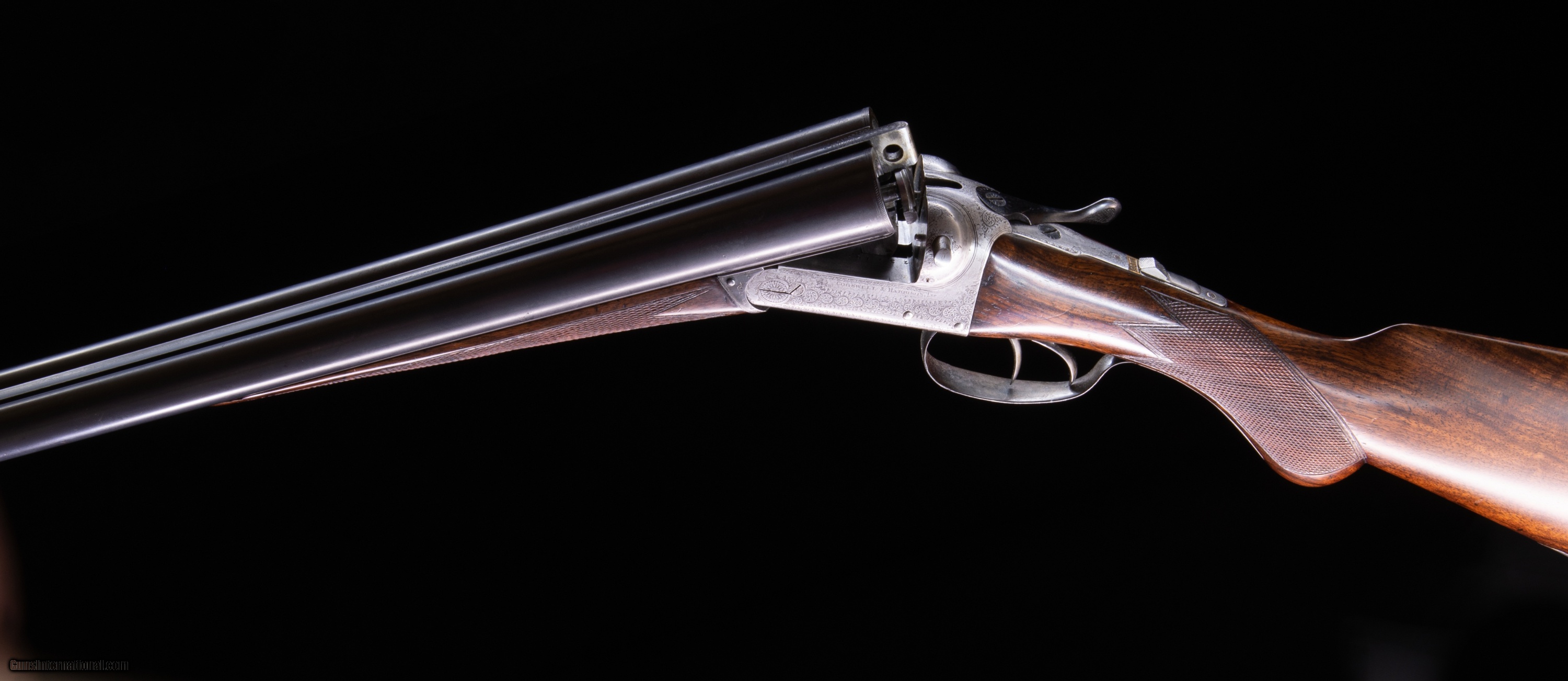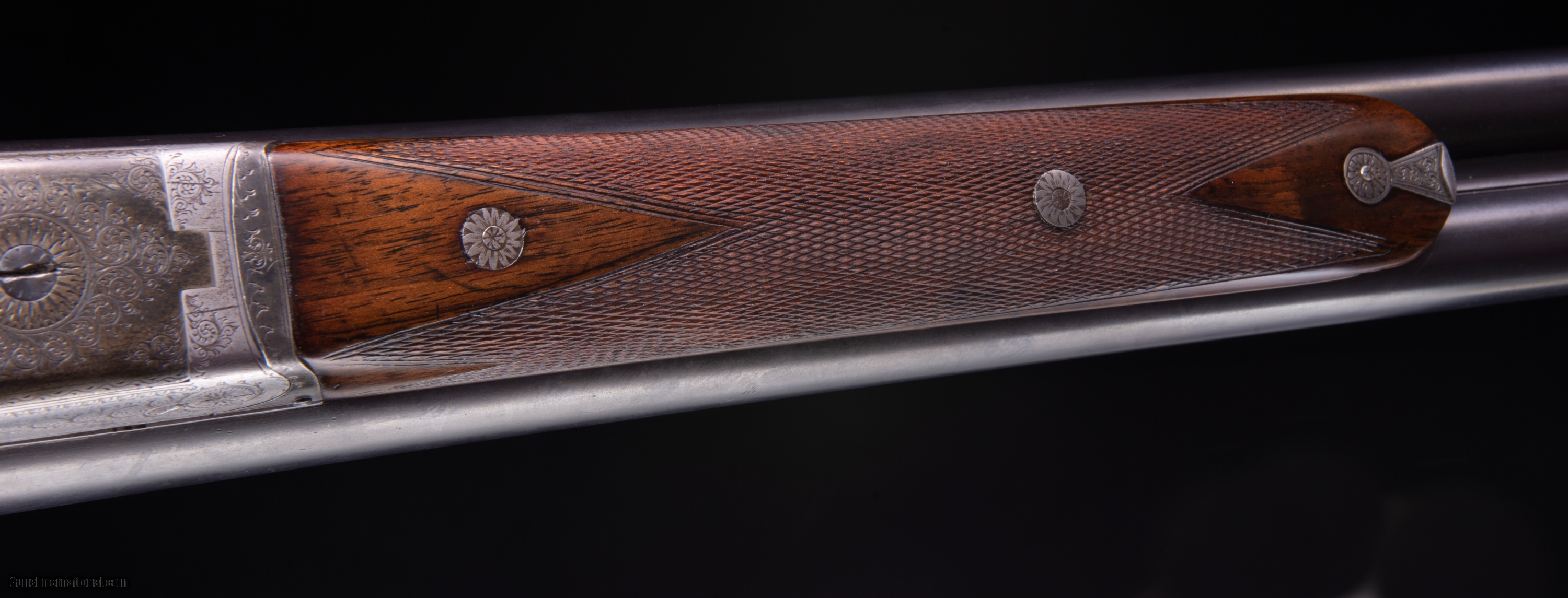 Description: Boxlocks - Good walls, stock dimensions, and sensible choking make this gun are real value for the hunter that wants to hunt with a well balanced English double without breaking the bank. A little light restoration would make this gun really beautiful. The 3" proofs would indicate this gun would be great for most American 2 3/4" shells. *** Note: To see this gun with high resolution photos and a zoom-in feature, go to the vintagedoubles main site and search for the gun ID: 4291 or browse the main site to see our full gun collection. |