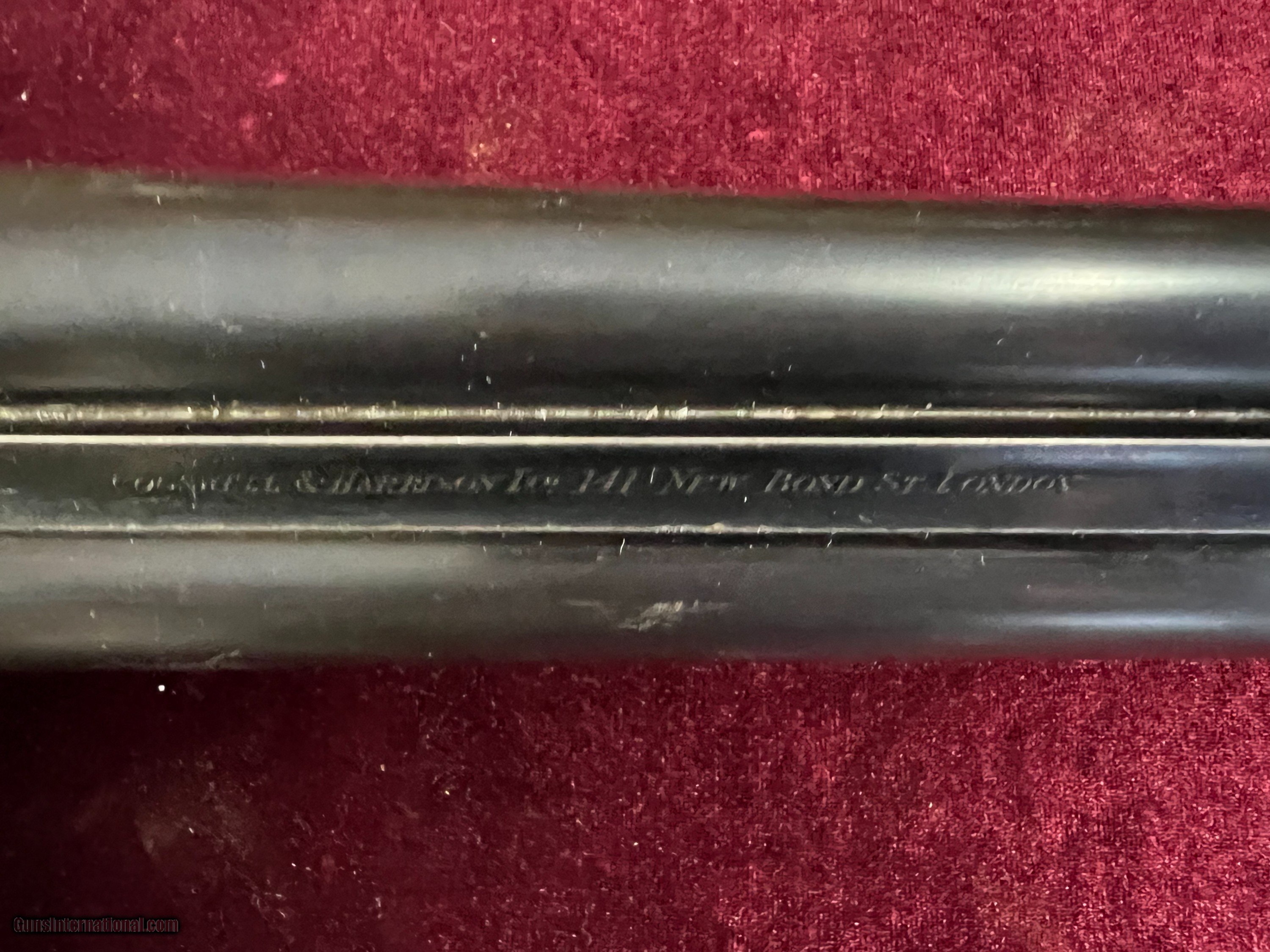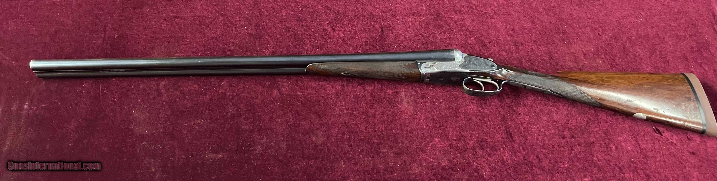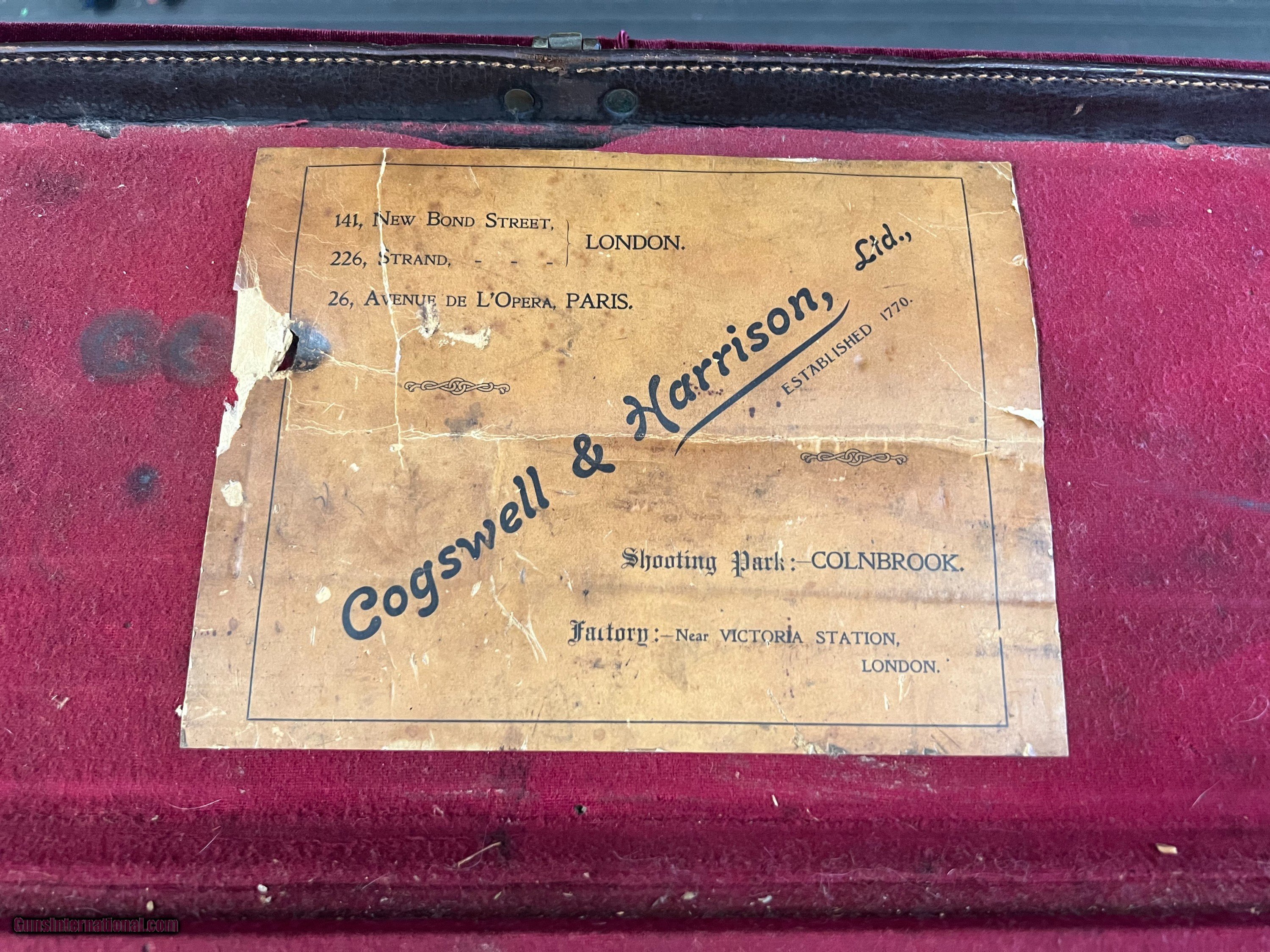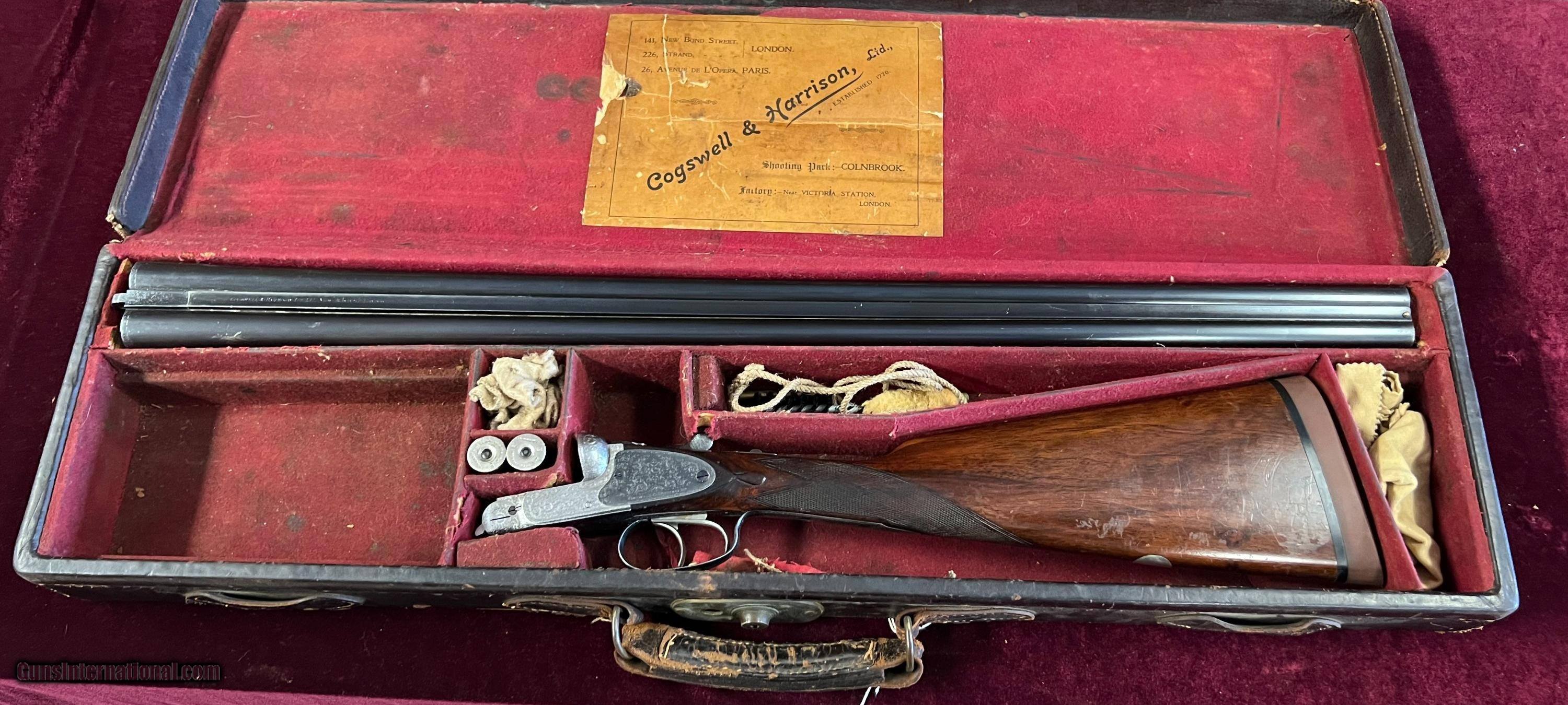 Description: Hello all. In this listing we are selling a beautiful Cogswell and Harrison Sideplated. This side by side 12GA sports 30" barrels with ejectors and 1/4 &1/2 chokes. The lenght of pull is 15", weighing 6lbs 10oz. The gun was manufactured in 1907, and has been nitro proofed at 1 1/8, and has 2 1/2" chambers. The bores are mint, the action is tight on face, and it has very crisp stamps and engraving. The receiver has 100% coverage on engraving. It is a fantastic hand made double barrel, with a full leather trunk case. If you have any questions, or would like additional photos, please feel free to contact us. Buyer pays shipping. We charge 3% on all card transactions. We are selling this for a very affordable price of $1895. SOLD Shotgun Gauge: 12 Gauge Manufacturer: Cogswell & Harrison Model: Sideplated Serial Number: 34975 Barrel Length: 30 LOP: 15 Weight: 6lbs 10oz Manufacture Date: 1907 |