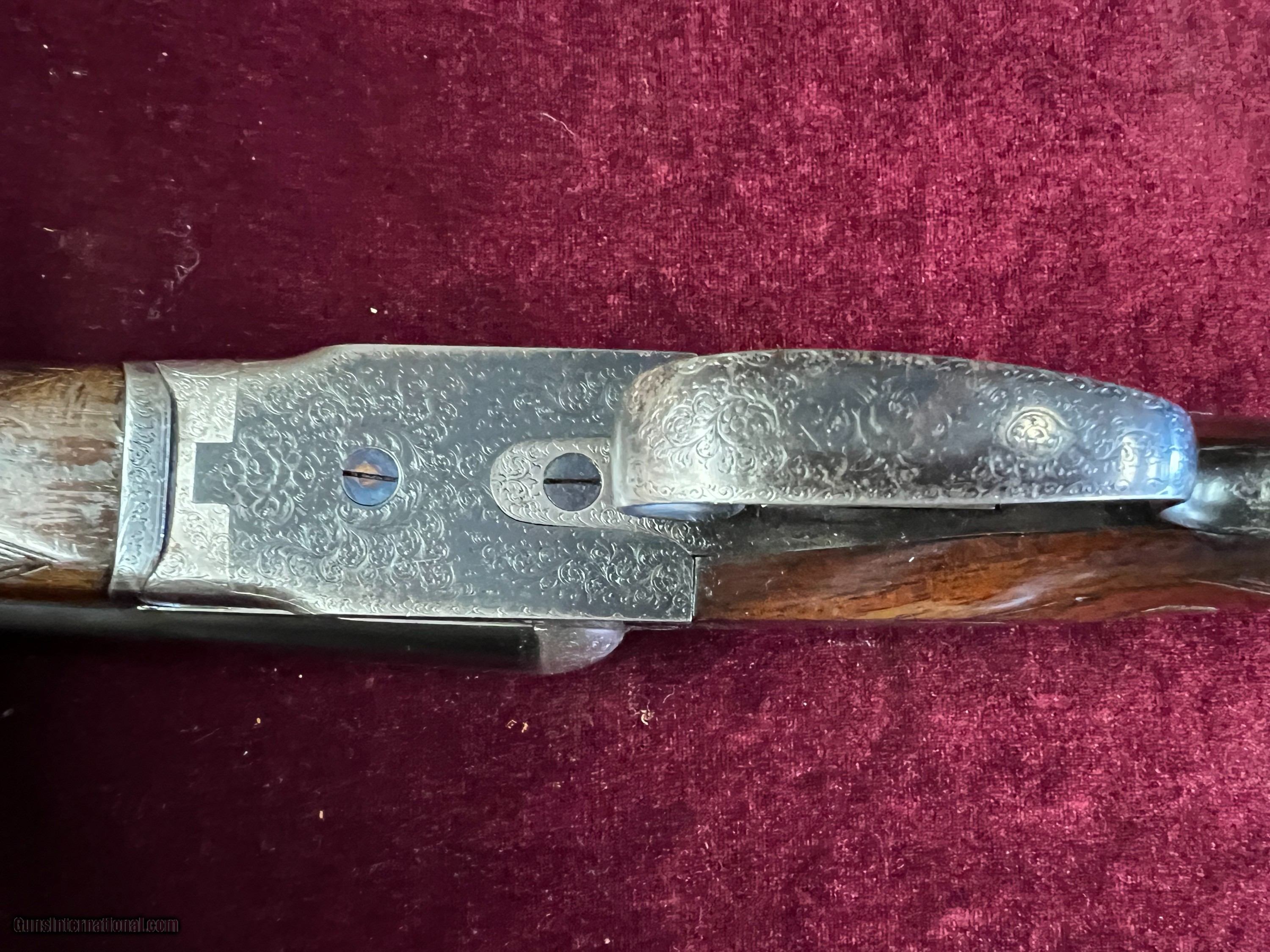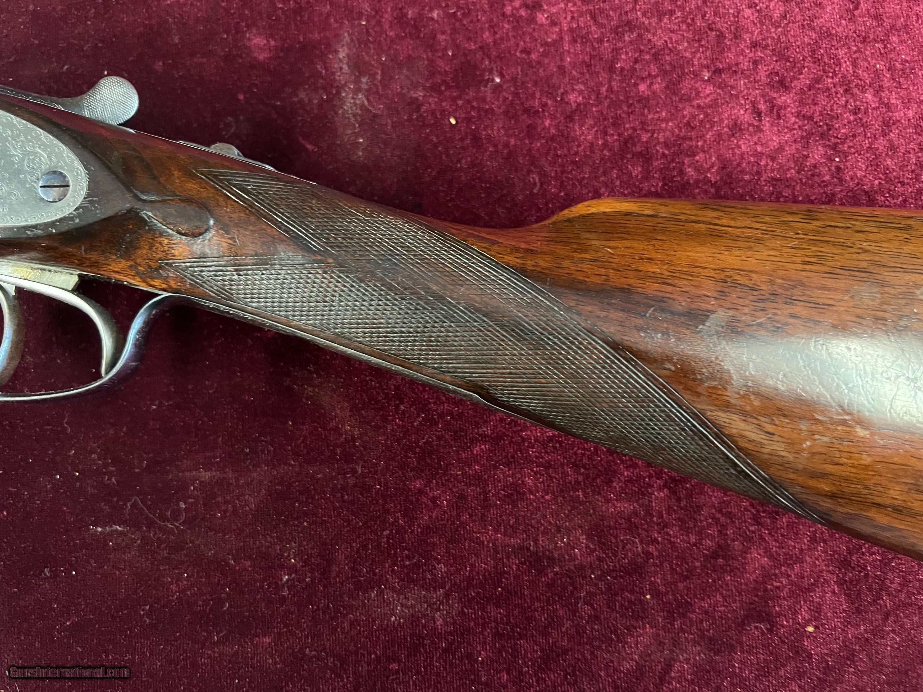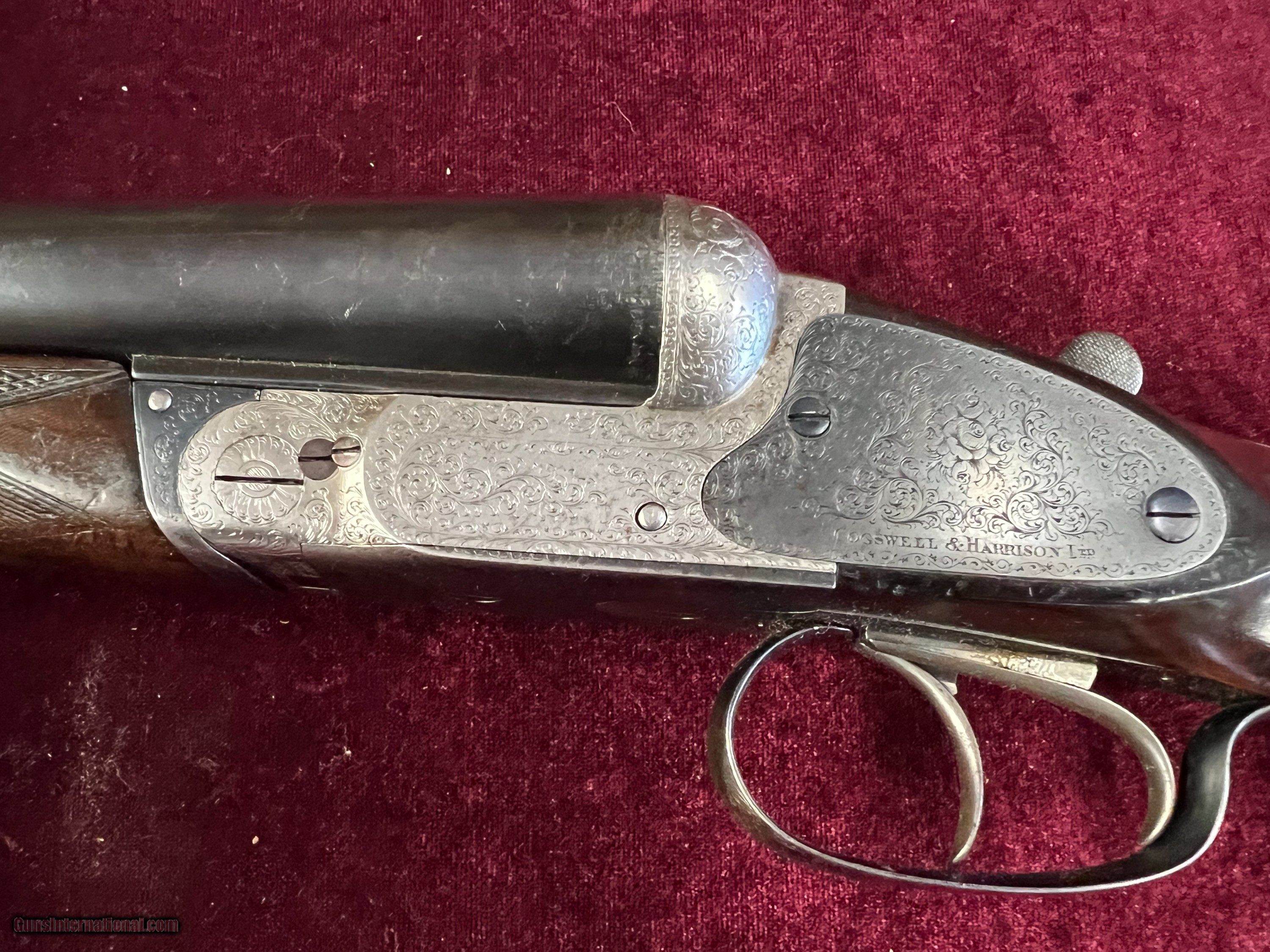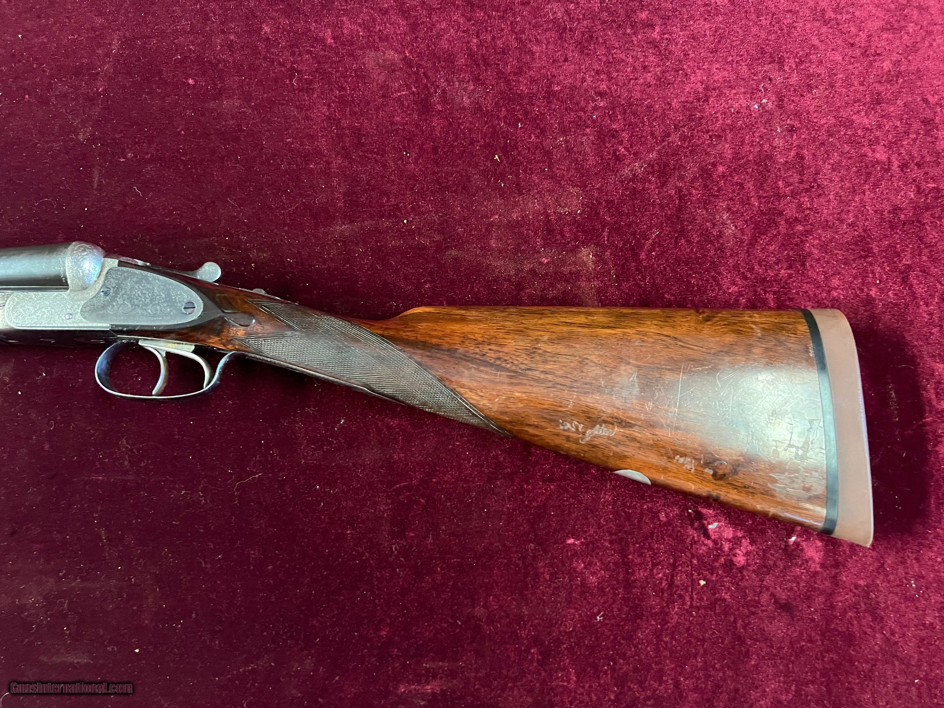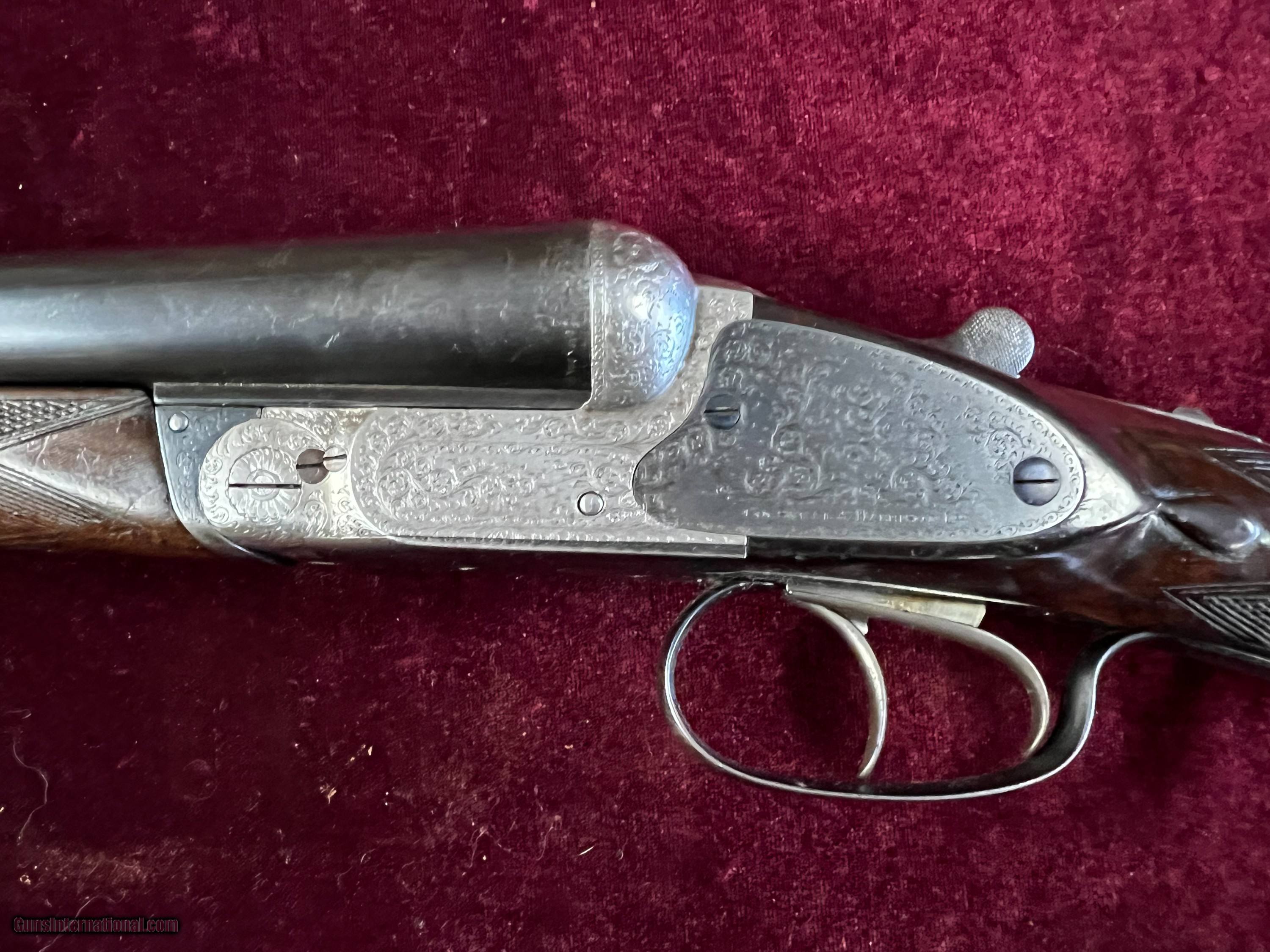 Description: Hello all. In this listing we are selling a beautiful Cogswell and Harrison Sideplated. This side by side 12GA sports 30" barrels with ejectors and 1/4 &1/2 chokes. The lenght of pull is 15", weighing 6lbs 10oz. The gun was manufactured in 1907, and has been nitro proofed at 1 1/8, and has 2 1/2" chambers. The bores are mint, the action is tight on face, and it has very crisp stamps and engraving. The receiver has 100% coverage on engraving. It is a fantastic hand made double barrel, with a full leather trunk case. If you have any questions, or would like additional photos, please feel free to contact us. Buyer pays shipping. We charge 3% on all card transactions. We are selling this for a very affordable price of $1895. SOLD Shotgun Gauge: 12 Gauge Manufacturer: Cogswell & Harrison Model: Sideplated Serial Number: 34975 Barrel Length: 30 LOP: 15 Weight: 6lbs 10oz Manufacture Date: 1907 |