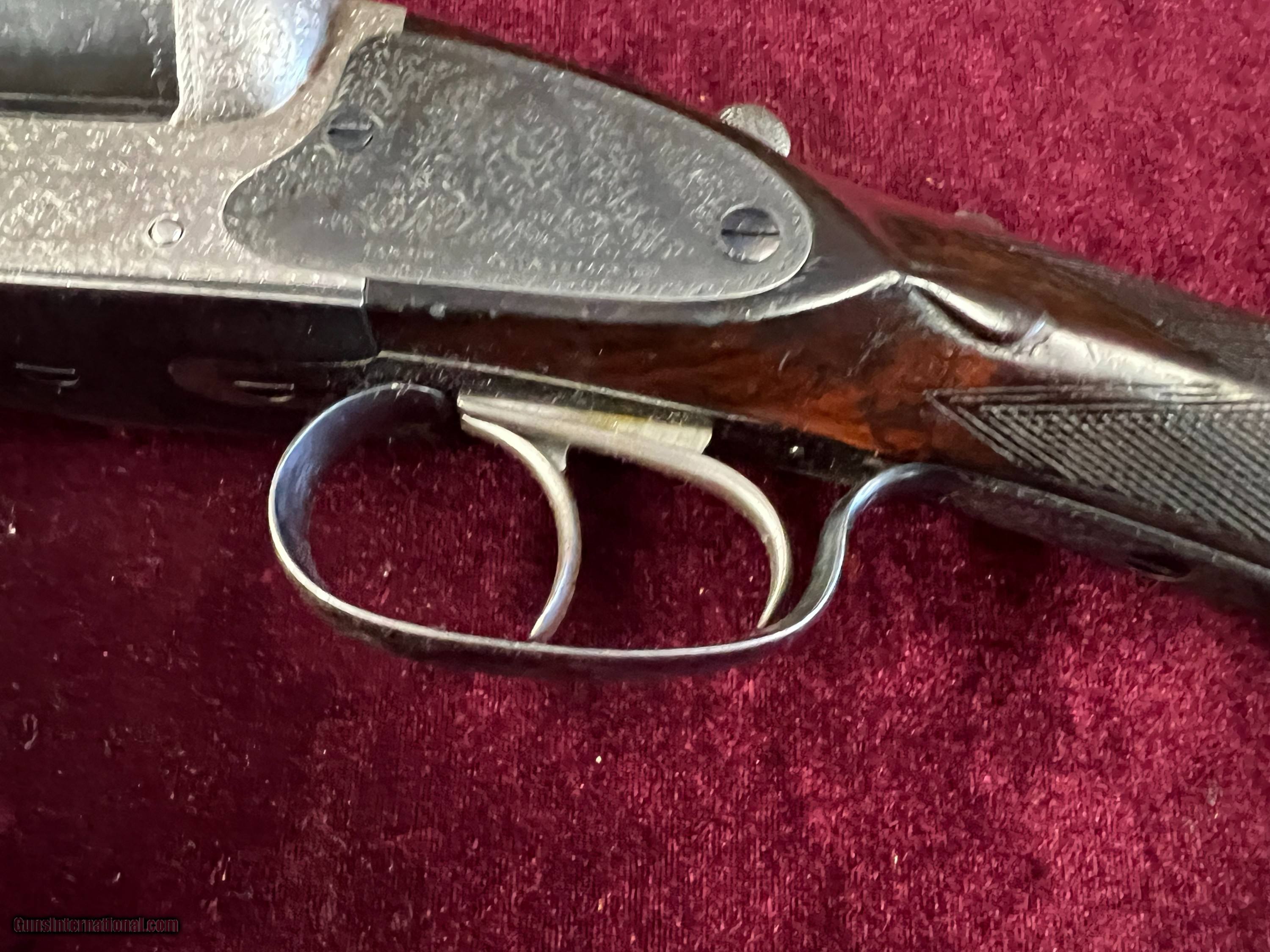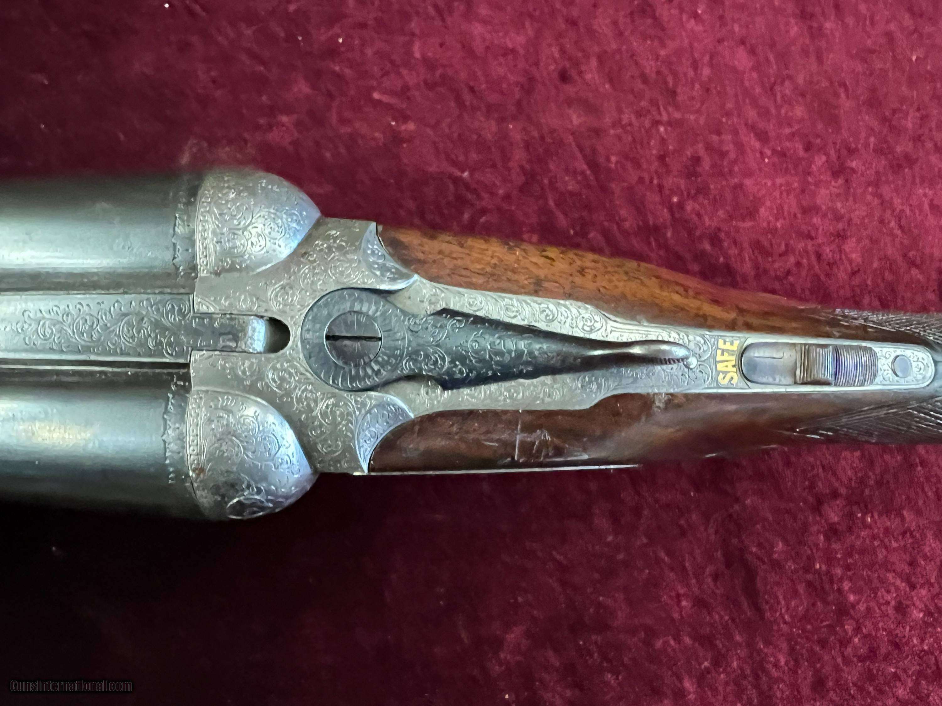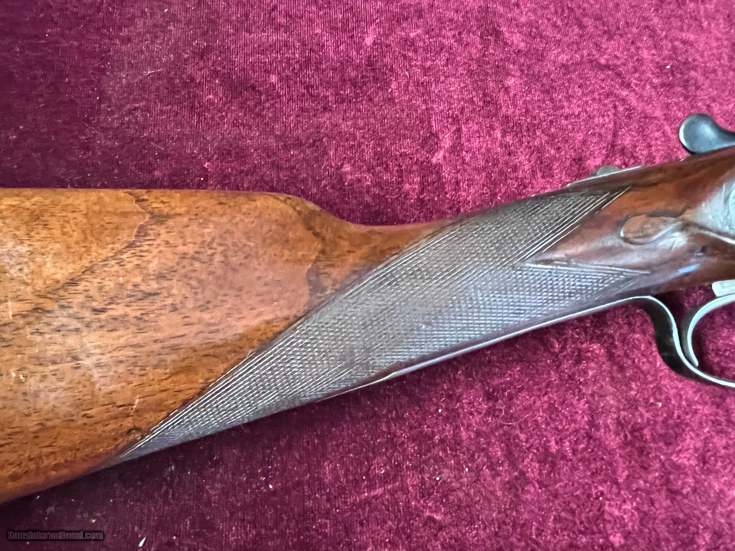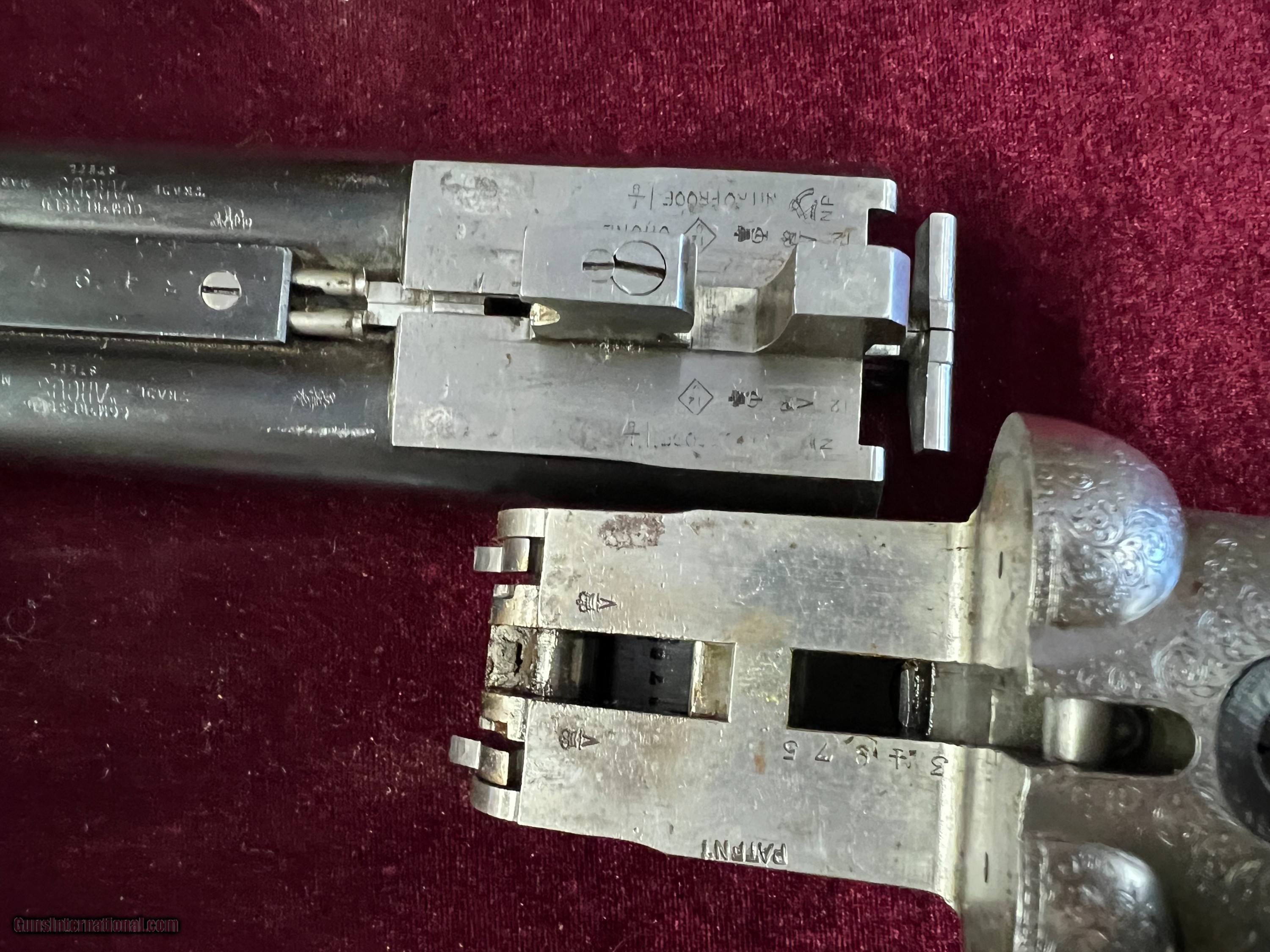 Description: Hello all. In this listing we are selling a beautiful Cogswell and Harrison Sideplated. This side by side 12GA sports 30" barrels with ejectors and 1/4 &1/2 chokes. The lenght of pull is 15", weighing 6lbs 10oz. The gun was manufactured in 1907, and has been nitro proofed at 1 1/8, and has 2 1/2" chambers. The bores are mint, the action is tight on face, and it has very crisp stamps and engraving. The receiver has 100% coverage on engraving. It is a fantastic hand made double barrel, with a full leather trunk case. If you have any questions, or would like additional photos, please feel free to contact us. Buyer pays shipping. We charge 3% on all card transactions. We are selling this for a very affordable price of $1895. SOLD Shotgun Gauge: 12 Gauge Manufacturer: Cogswell & Harrison Model: Sideplated Serial Number: 34975 Barrel Length: 30 LOP: 15 Weight: 6lbs 10oz Manufacture Date: 1907 |