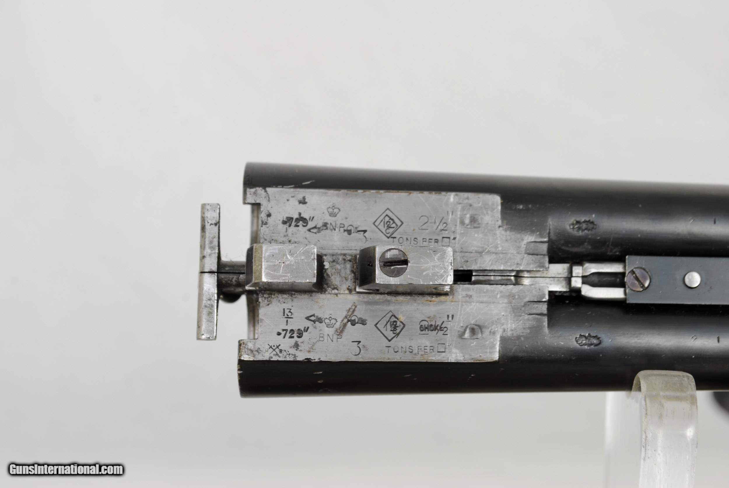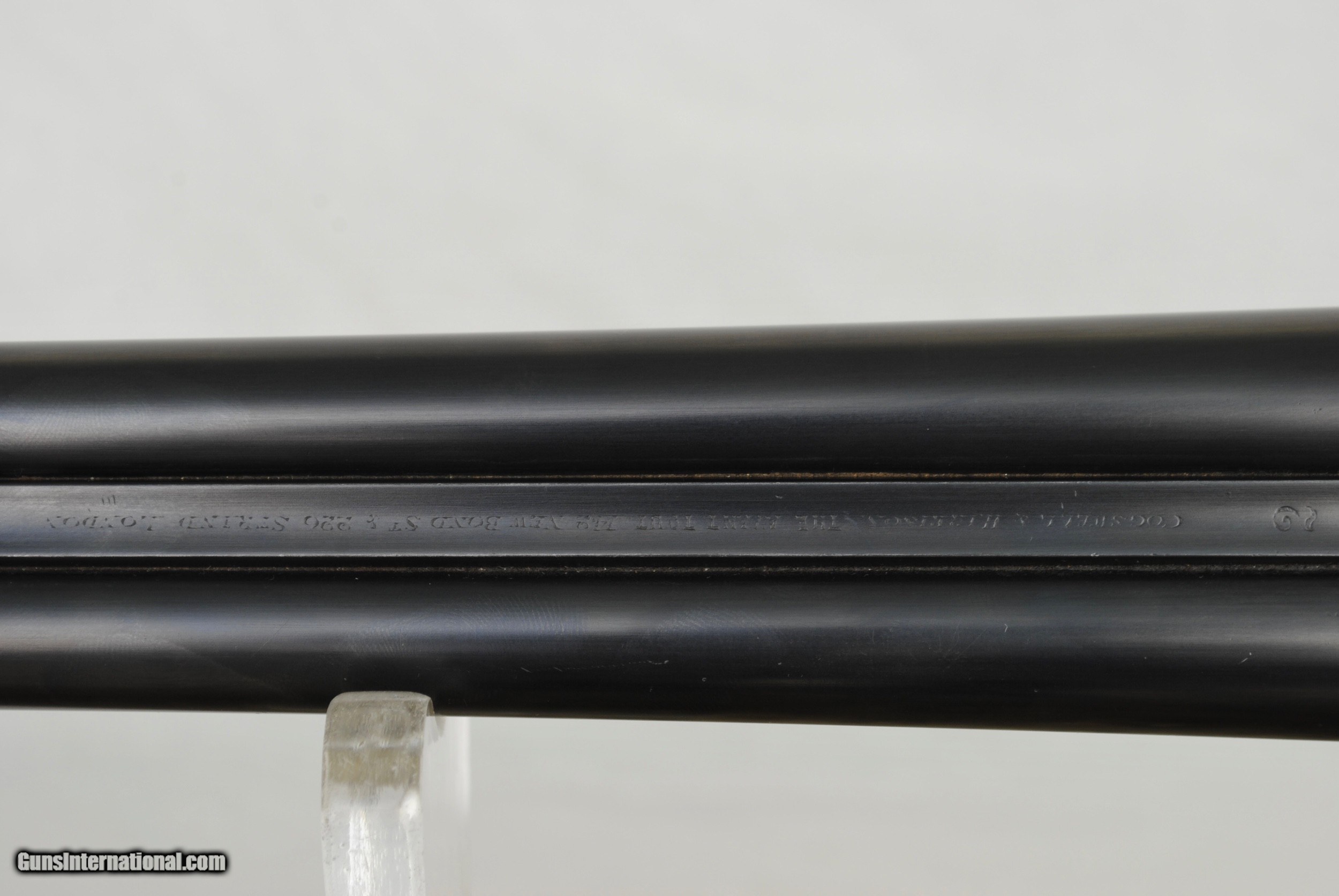 Description: SALE PENDING. Vintage Cogswell & Harrison - The Avant Tout Model is a self opening boxlock ejector shotgun. This gun was made in 1893 and its design was patented by Edgar Harrison. As an antique it can be shipped directly as local law allows. Barrels are 29 3/4" with Cyc and Mod chokes. Bores measure .735 in each barrel. Chambers measure 3" (would suggest staying with 2 3/4" light loads as this is a light game gun). Gun was #2 of a pair. Auto safety. Ribs are tight. Gun is on face. Buttstock is free of any cracks. Third fastener. Snap on forend fastening system. Weight of the gun is 6 LBS 4 1/4 OZ. LOP is 14 5/8". Drop at comb - 1 3/4". Drop at heel - 2 5/8". Wood has some nice figure. Shipping is $75 by USPS Priority Mail. SOLD Antique: Yes Shotgun Gauge: 12 Gauge |