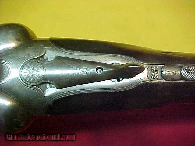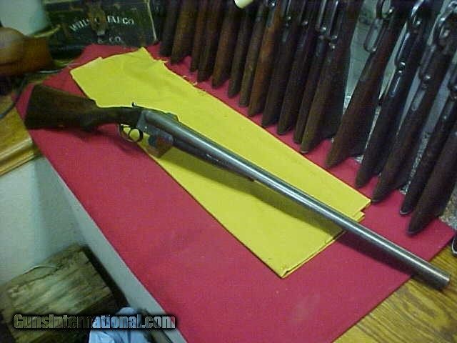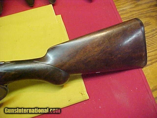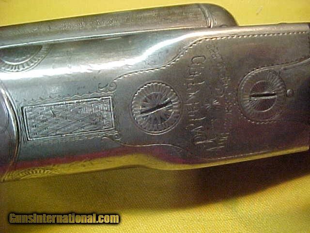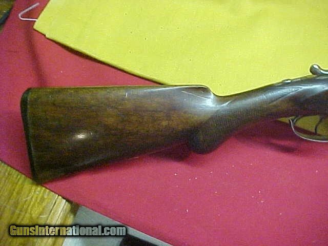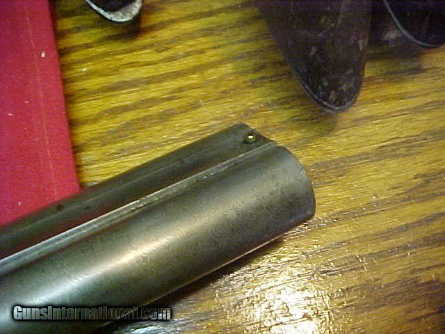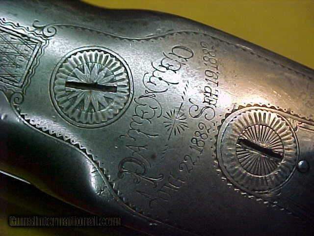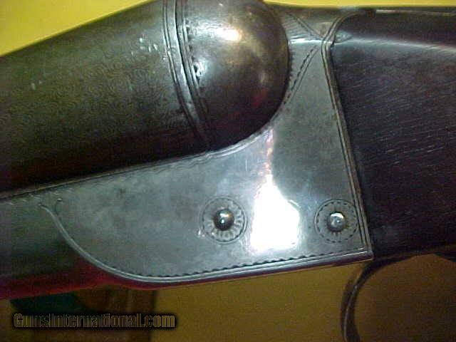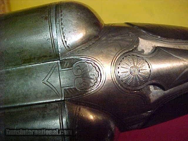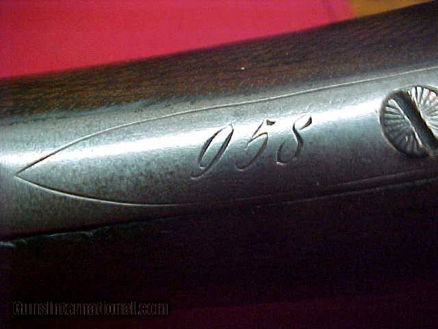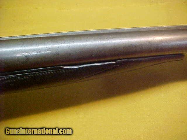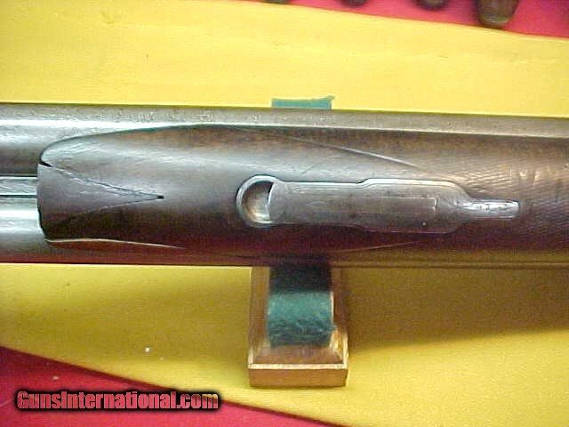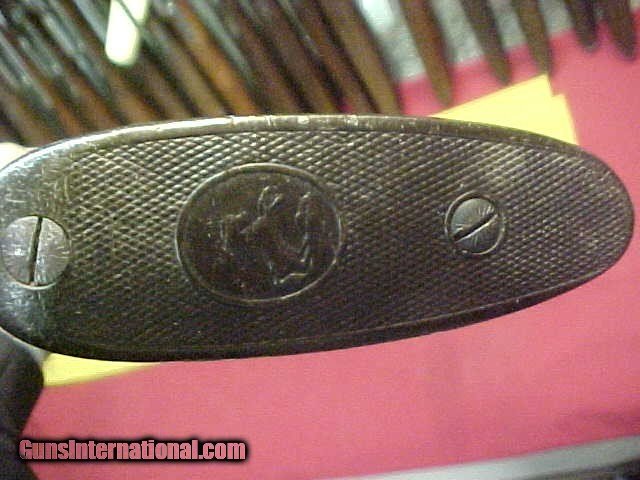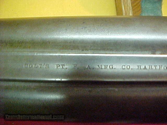 Description: #4833 Colt 1883 Double Barrel Heavy Frame Hammerless Shotgun, simple factory engraving on the belly and top of the frame and fancy Damascus pattern on the barrels. Serial numbered in the 9XX serial range (1887 manufacture) 28”x10guage with excellent bores and tight action. Fine metal with no pitting but also no appreciable amount of finish remaining. Action is tight, wood looks to be the standard grade and in very good condition although it has medium wear to the checking and has had the decorative horn foretip piece replaced with wood. It has a very fine Rampant Colt hard rubber buttplate. There apparently were TWO frame sizes made in the 1883 model shotgun and this is the first heavy framed one that I have ever seen. All the 1883s that I’ve ever seen or had , both 10 and 12gauge, were all the lighter framed ones. Considered by many to be the finest American made shogun of the late 1800s (….a bold statement which will likely raise the hackles of Parker owners!) this Colt still has many good hunts left in it! About VG-VG+. $1450 SOLD Antique: Yes |