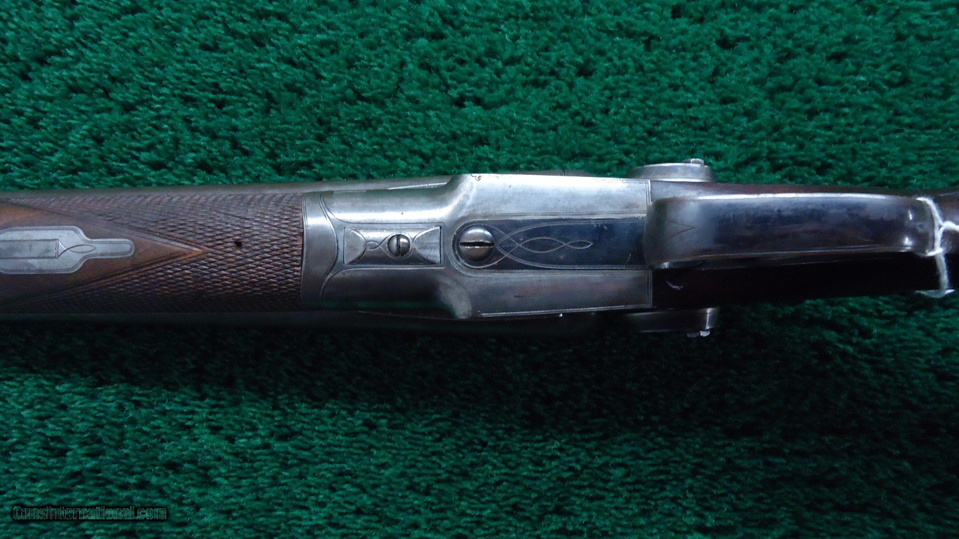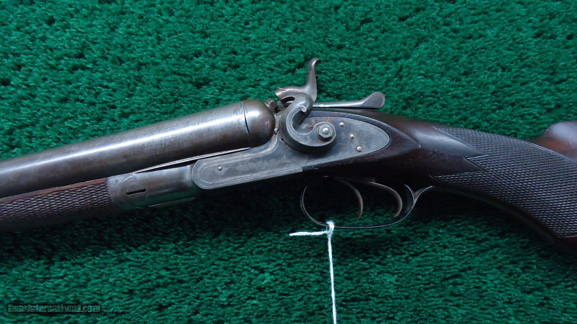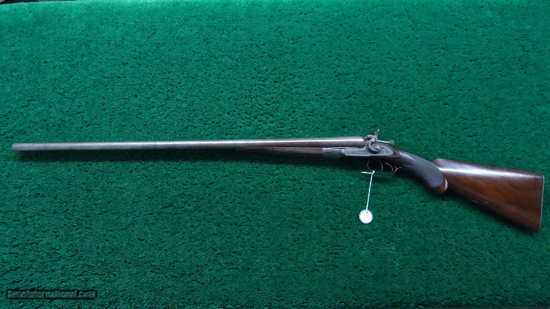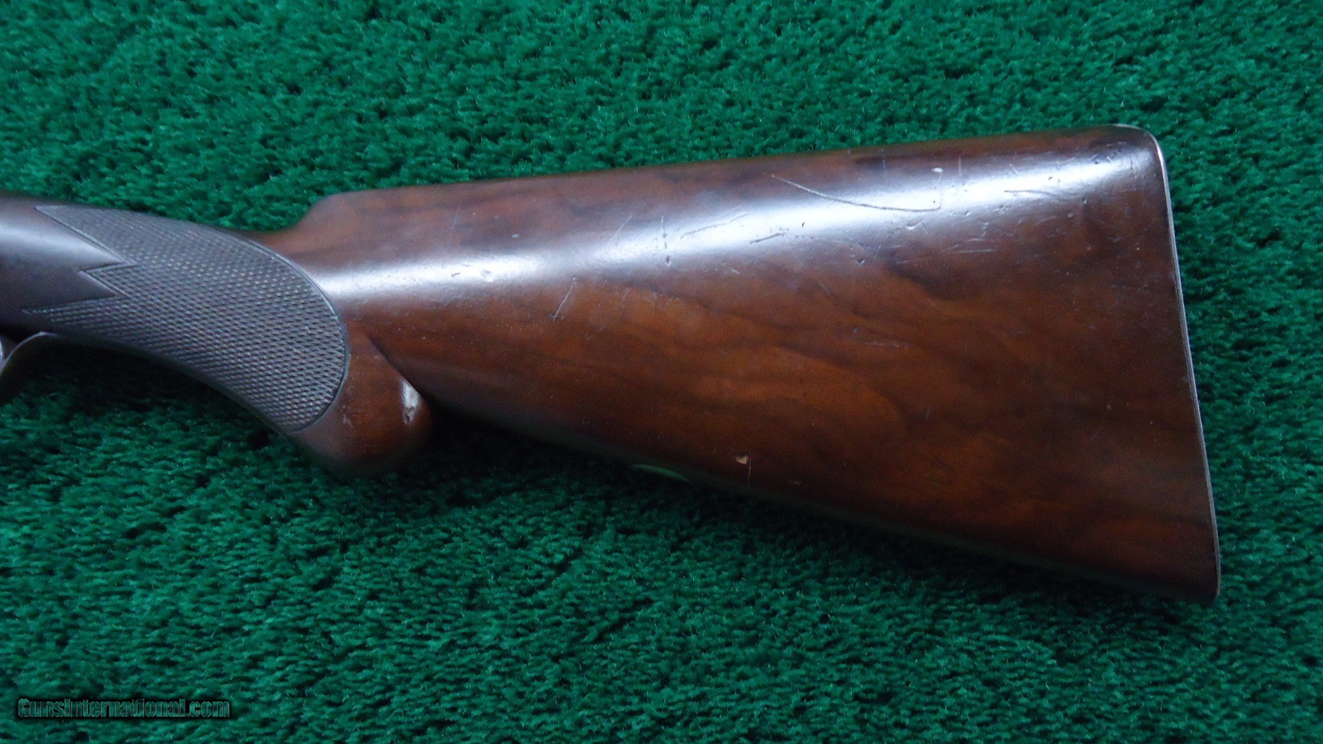 Description: 12 Gauge double barrel hammer shotgun. Wood is in very nice condition with sharp checkering and steel buttplate. Nice shiny bores. Mechanics are excellent. 32 inch barrels retain 30-40% Damascus pattern. Frame retains 60-70% bright case color in protected area. On the bottom it has turned a silver color. Good blue on the trigger guard. Comes complete with an interesting case that appears to be alligator. Case needs some TLC with a missing handle and straps in tough shape. Leroy Merz Antique Firearms specializes in antique and vintage Winchesters and other fine American firearms. Since 1965 Mr. Merz has taken part in the world of firearms and has been a contributor to many well known reference books. We have hundreds of additional guns in every price range at our home online. Search for Merz Antiques in google. SOLD Curio/Relic: Yes Antique: Yes Shotgun Gauge: 12 Gauge |