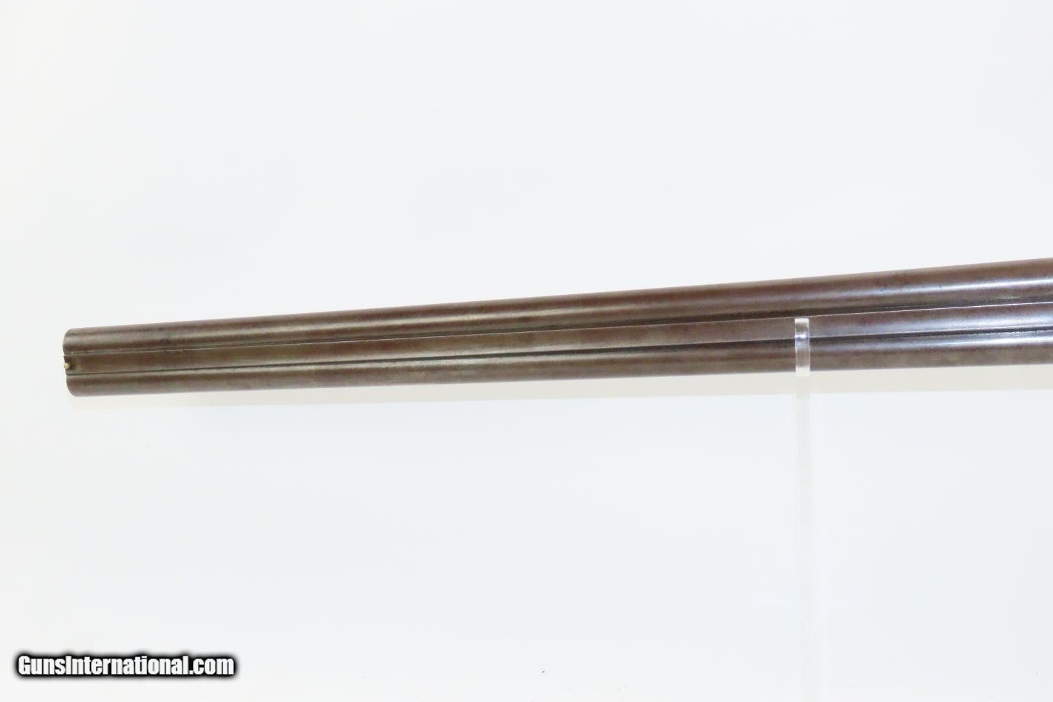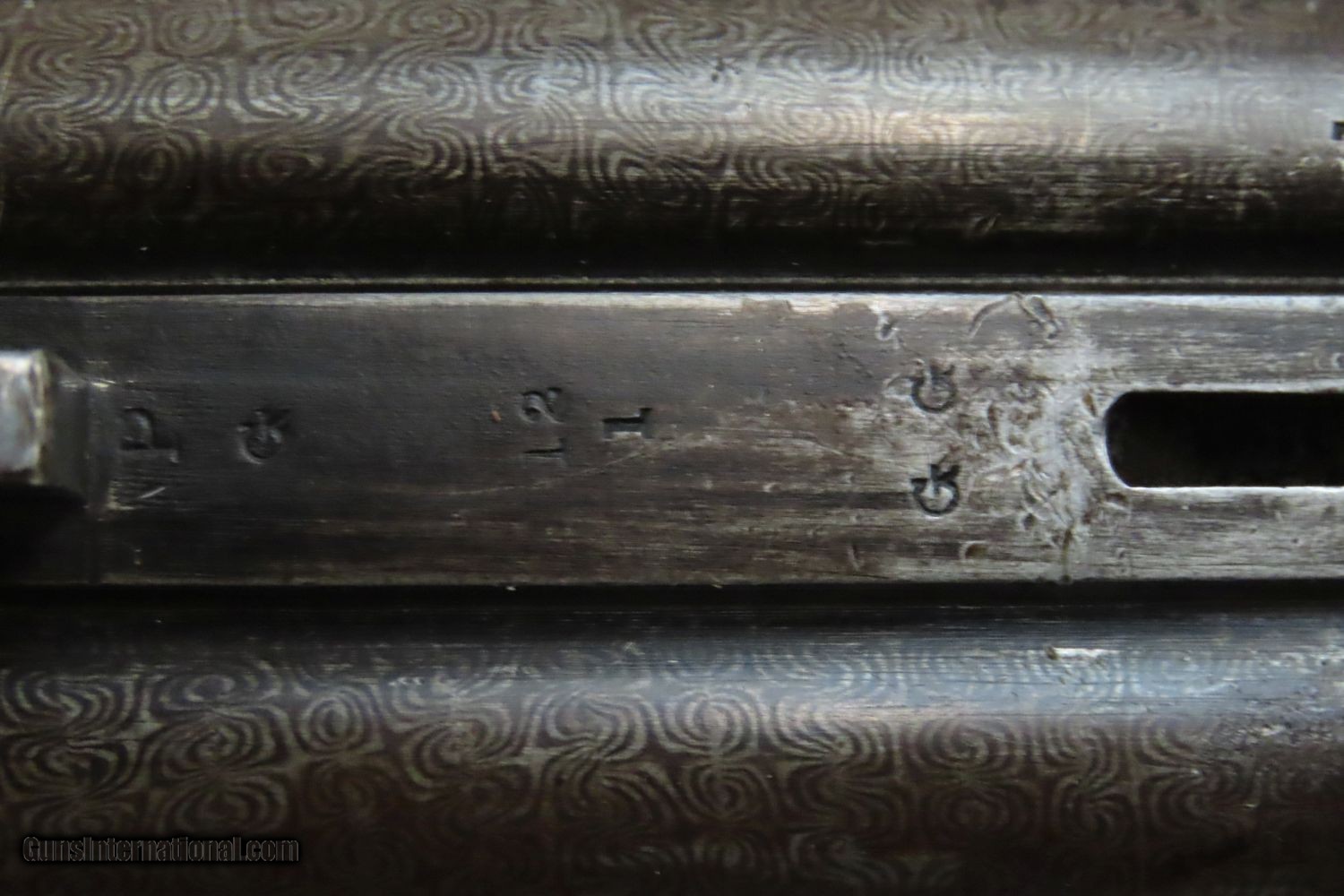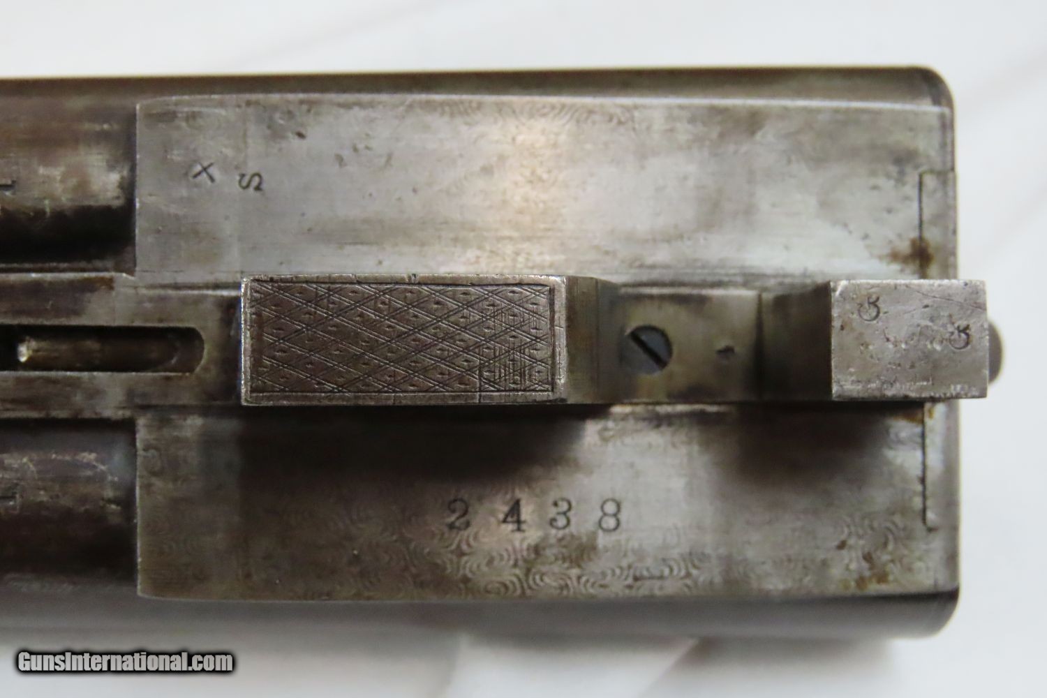 Description: CASED Colt 1883 Double Barrel SHOTGUN 12 Gauge w 1883 Morgan SILVER DOLLAR Scarce ENGRAVED Shotgun Made in 1887 with Damascus Barrels! Here we present an antique Colt Model 1883 Hammerless Double Barrel Shotgun, manufactured in Hartford, Connecticut in 1887. The Model 1883 was made from 1883 to 1895, with approximately 7,360 manufactured. These double barrel shotguns were often custom made to order and fitted with Damascus barrels from 28 to 32 inches in length. According to early sources, “The Hammerless Model 1883 ranks among the best grade doubles produced in the entire American arms trade. The limited number completed and the great pains devoted to handling specific orders from often fussy shooters means that a considerable degree of quality and variety is evident in the Model 1883 series.” The barrel address is “COLT’S PT F A MFG CO HARTFORD CT USA”. The underside of the frame is marked “PATENTED/AUG.22 SEPT.19 1882”. The overall condition is nearing fine. The action is strong and tight. The bore is reflective and smooth. The finish on the wood still shines. The Damascus barrels have good pattern with a light brown patina. The walnut takedown case has a “1883” dated Morgan silver dollar set in the case lid. The number “2438” is engraved on the trigger guard. The manufacturer address is atop the barrel. The case includes shooting accessories, brass shells, and a cleaning rod. Here is an absolutely stunning set to put on display! Own the original! This is a legitimate antique and not a reproduction. Barrels are 28 inches. Caliber: 12 Gauge Chambers: 2-3/4 inches w/single extractor LOP: 14-1/8 inches Overall condition as seen in photos. Very Fast. Very Safe. FREE SHIPPING WORLDWIDE. Delivered directly to your door by express mail! Guaranteed AUTHENTIC & Includes CERTIFICATE OF AUTHENTICITY. ancestryguns $2975 #20241 SOLD Antique: Yes |