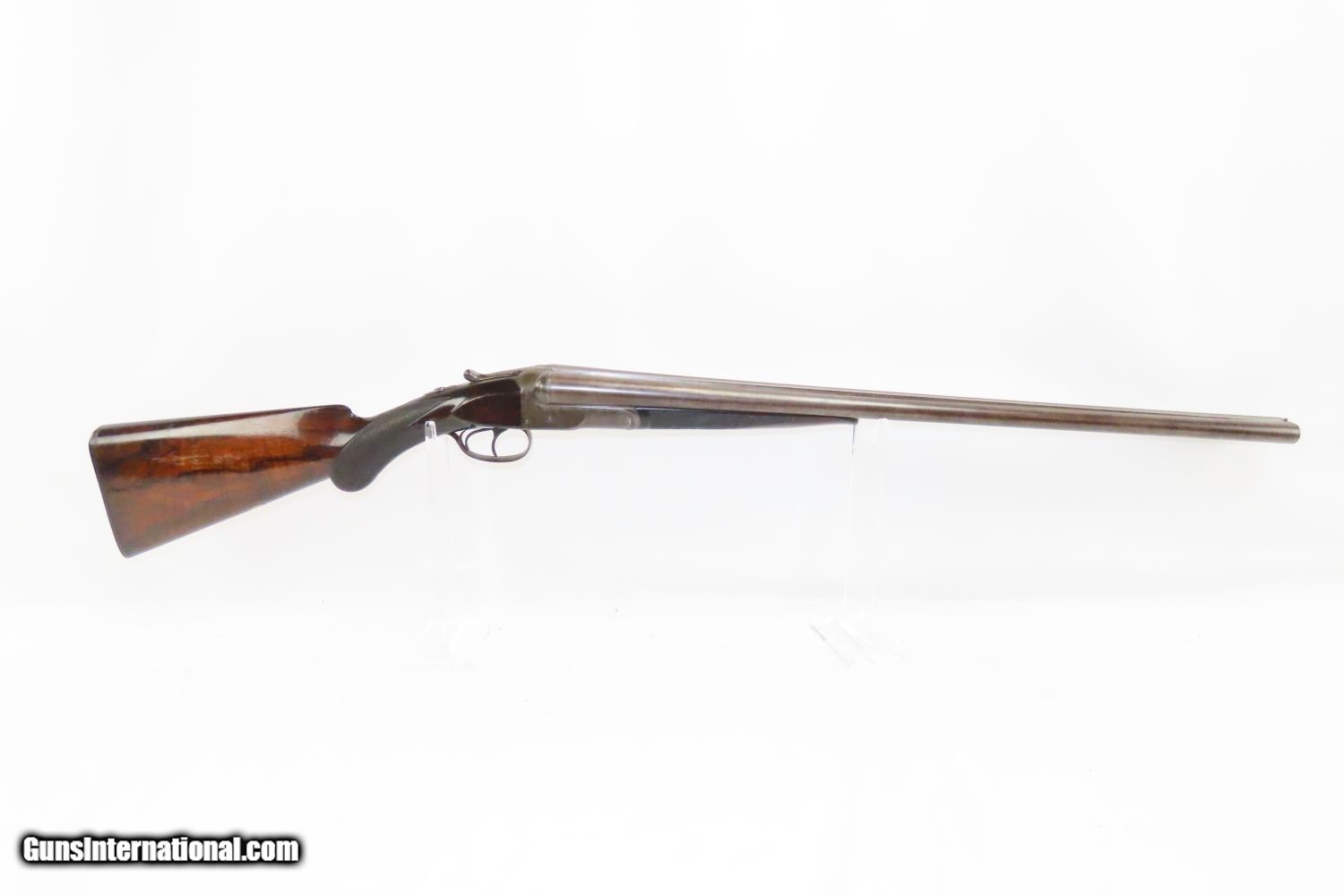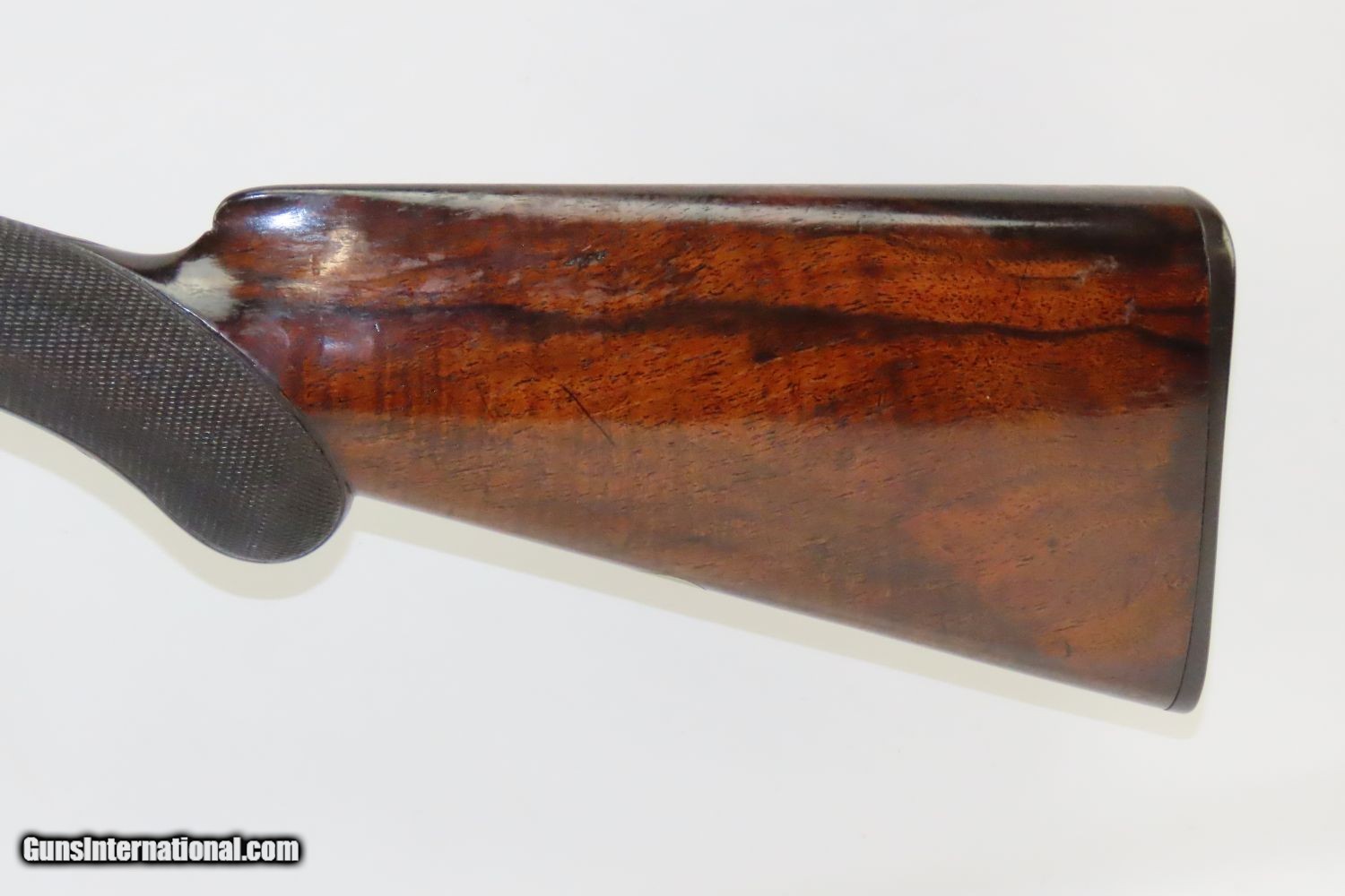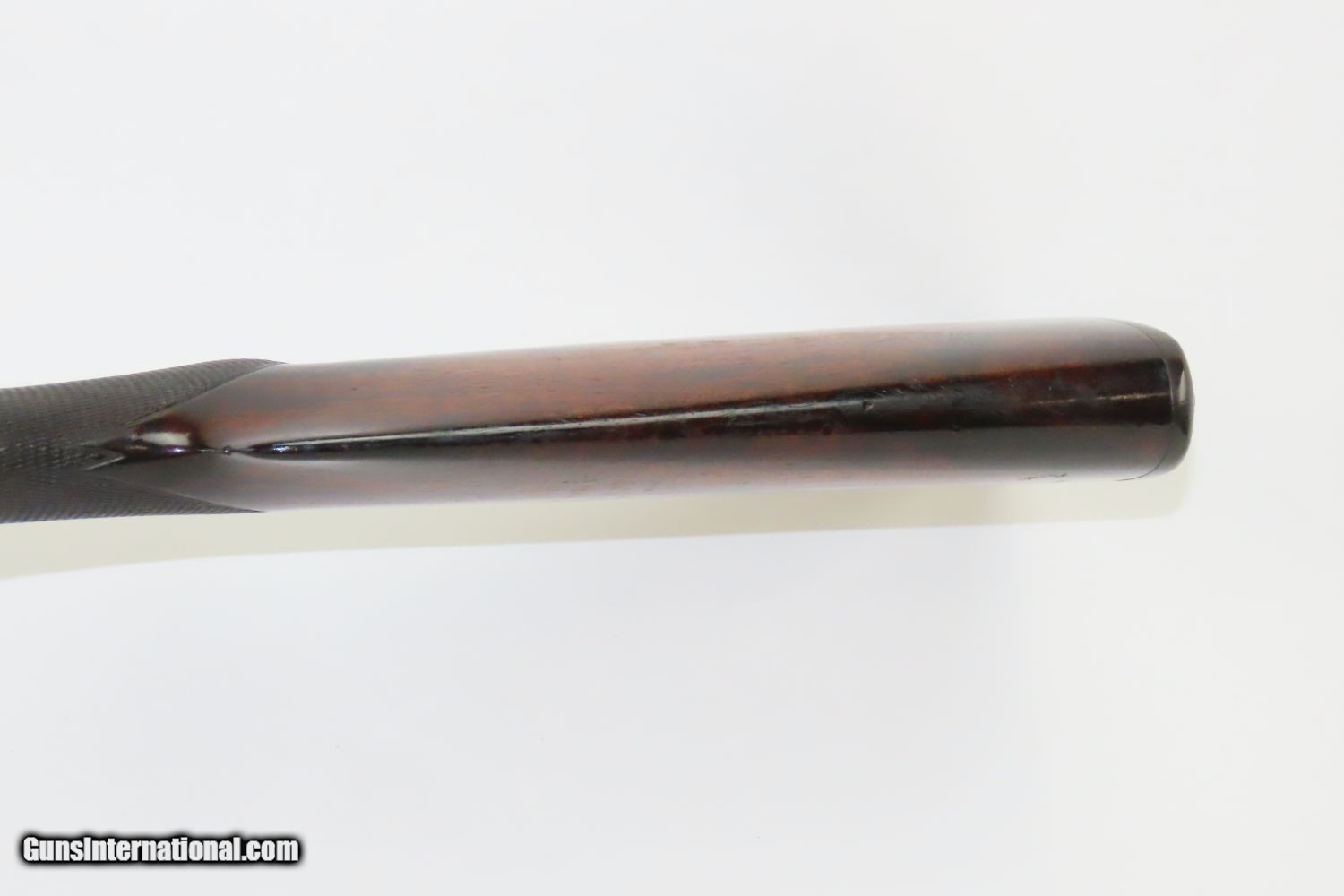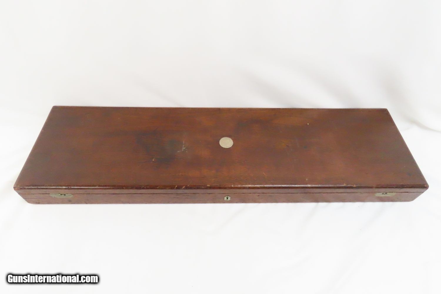 Description: CASED Colt 1883 Double Barrel SHOTGUN 12 Gauge w 1883 Morgan SILVER DOLLAR Scarce ENGRAVED Shotgun Made in 1887 with Damascus Barrels! Here we present an antique Colt Model 1883 Hammerless Double Barrel Shotgun, manufactured in Hartford, Connecticut in 1887. The Model 1883 was made from 1883 to 1895, with approximately 7,360 manufactured. These double barrel shotguns were often custom made to order and fitted with Damascus barrels from 28 to 32 inches in length. According to early sources, “The Hammerless Model 1883 ranks among the best grade doubles produced in the entire American arms trade. The limited number completed and the great pains devoted to handling specific orders from often fussy shooters means that a considerable degree of quality and variety is evident in the Model 1883 series.” The barrel address is “COLT’S PT F A MFG CO HARTFORD CT USA”. The underside of the frame is marked “PATENTED/AUG.22 SEPT.19 1882”. The overall condition is nearing fine. The action is strong and tight. The bore is reflective and smooth. The finish on the wood still shines. The Damascus barrels have good pattern with a light brown patina. The walnut takedown case has a “1883” dated Morgan silver dollar set in the case lid. The number “2438” is engraved on the trigger guard. The manufacturer address is atop the barrel. The case includes shooting accessories, brass shells, and a cleaning rod. Here is an absolutely stunning set to put on display! Own the original! This is a legitimate antique and not a reproduction. Barrels are 28 inches. Caliber: 12 Gauge Chambers: 2-3/4 inches w/single extractor LOP: 14-1/8 inches Overall condition as seen in photos. Very Fast. Very Safe. FREE SHIPPING WORLDWIDE. Delivered directly to your door by express mail! Guaranteed AUTHENTIC & Includes CERTIFICATE OF AUTHENTICITY. ancestryguns $2975 #20241 SOLD Antique: Yes |