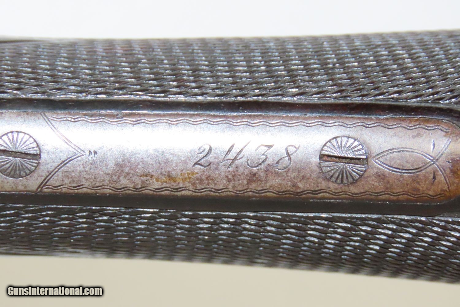 CASED Colt 1883 Double Barrel SHOTGUN 12 Gauge w 1883 Morgan SILVER DOLLAR Scarce ENGRAVED Shotgun Made in 1887 with Damascus Barrels!