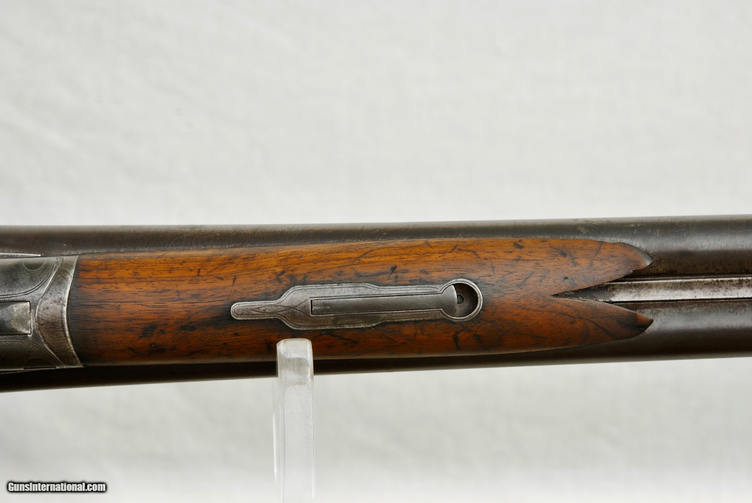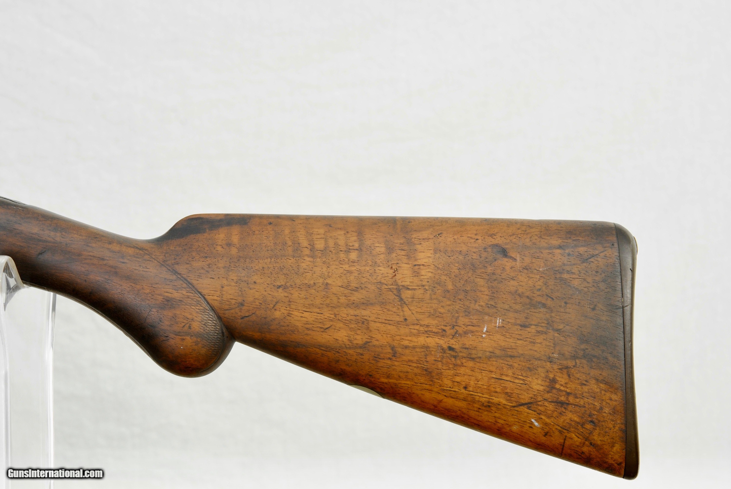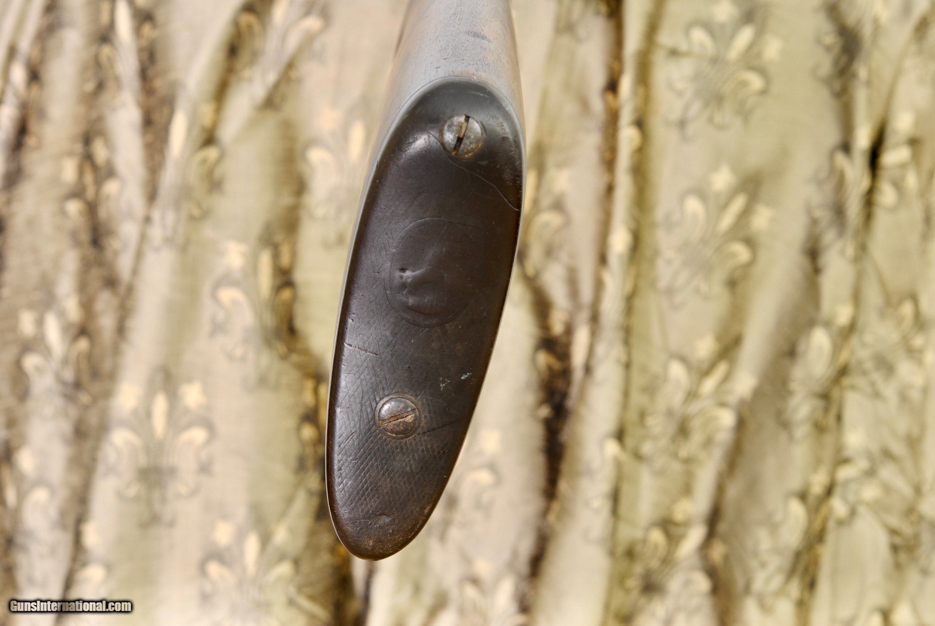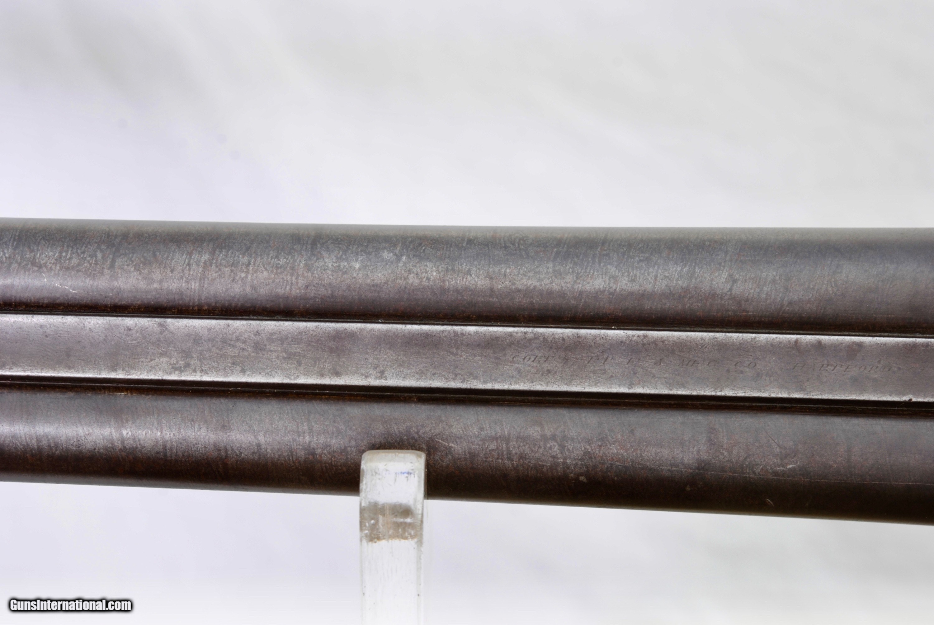 Description: Colt Model 1878 shotgun. Antique, can be shipped directly as local law allows. Barrels are 31 1/4". Chambers are 3". Mirror bores with scattered smooth (not deep) pitting. Barrels would rate "6" or "7" on a 10 point scale. Original barrel brown on exterior of barrels. Tight on face / no loose ribs / no cracks to wood. Forend is missing ebony inlayed tip. Examined locks and found them in excellent condition with all original parts. Hammers are rebounding. Checkering has worn smooth. LOP is 14 3/8" with original worn Colt buttplate. As an antique this shotgun can be shipped directly as local law allows. Shipping is $75. SOLD Antique: Yes Shotgun Gauge: 10 Gauge |