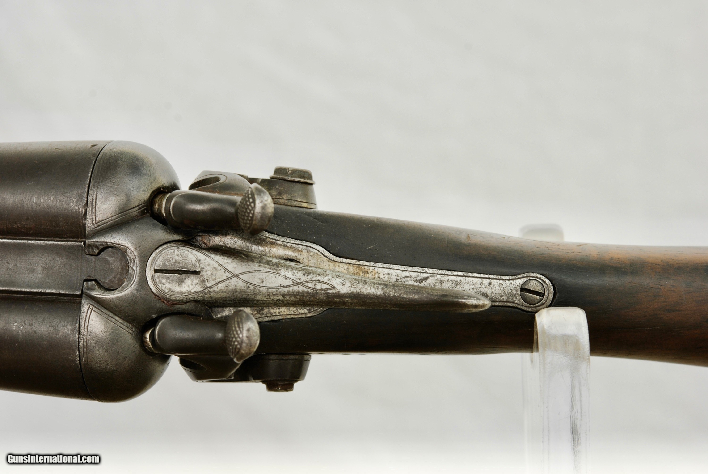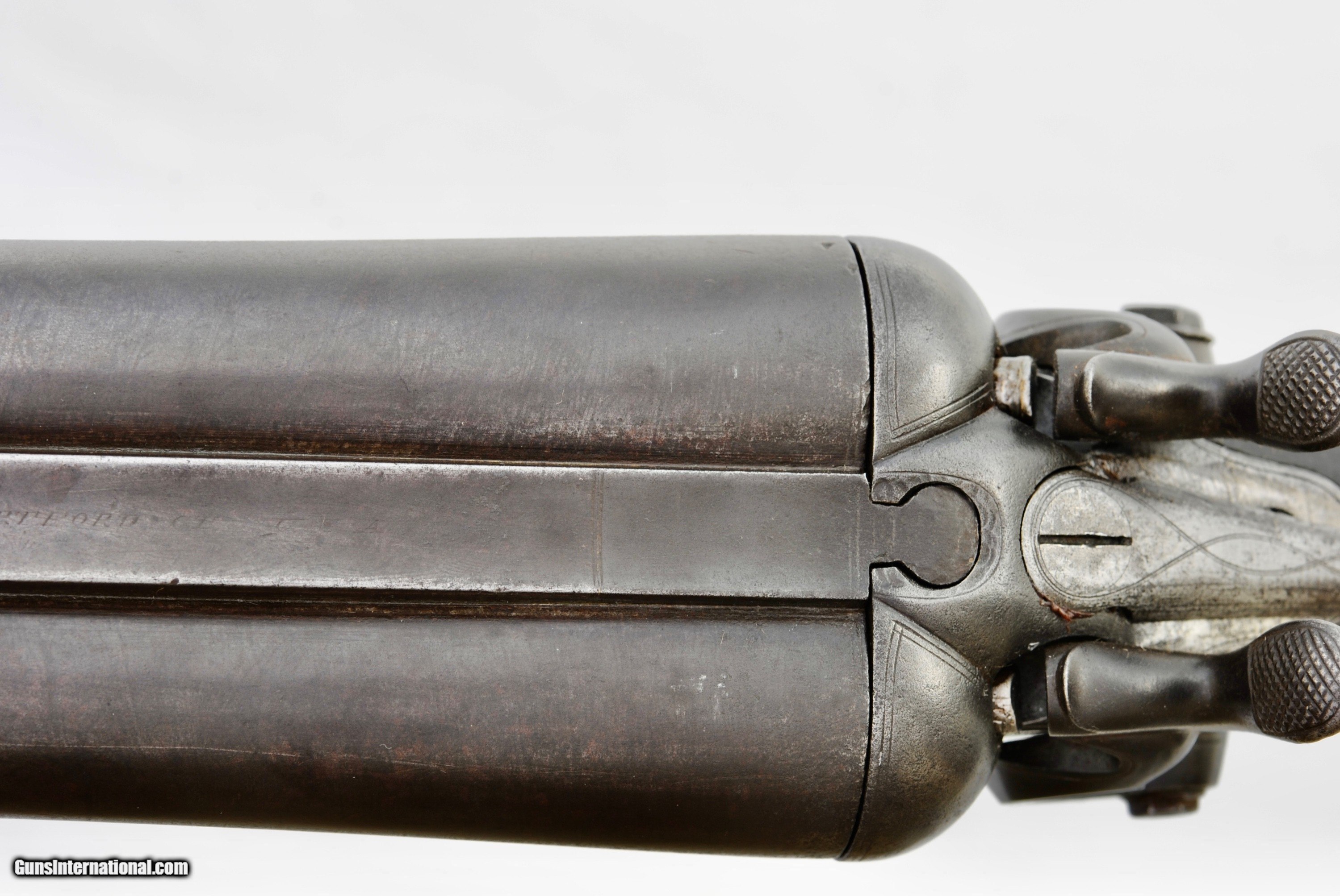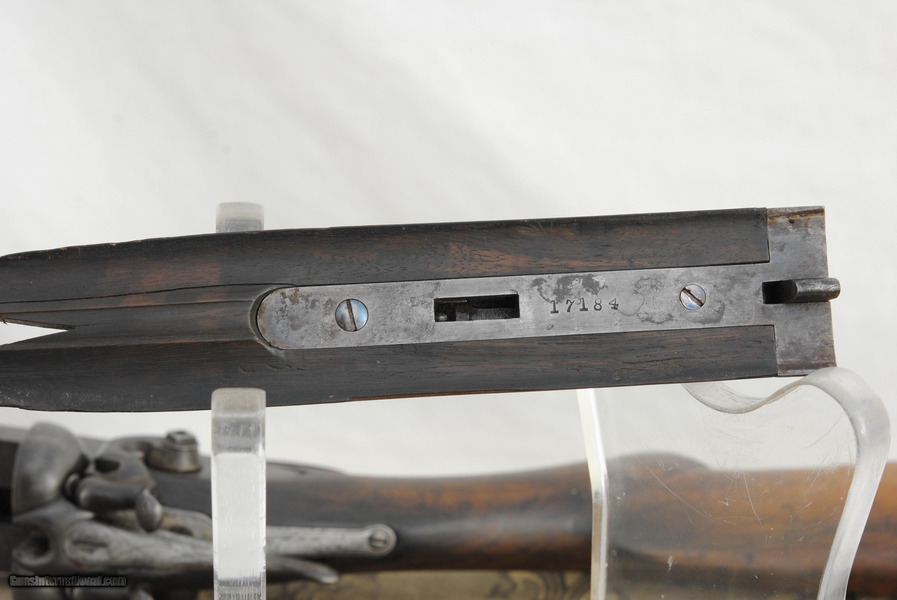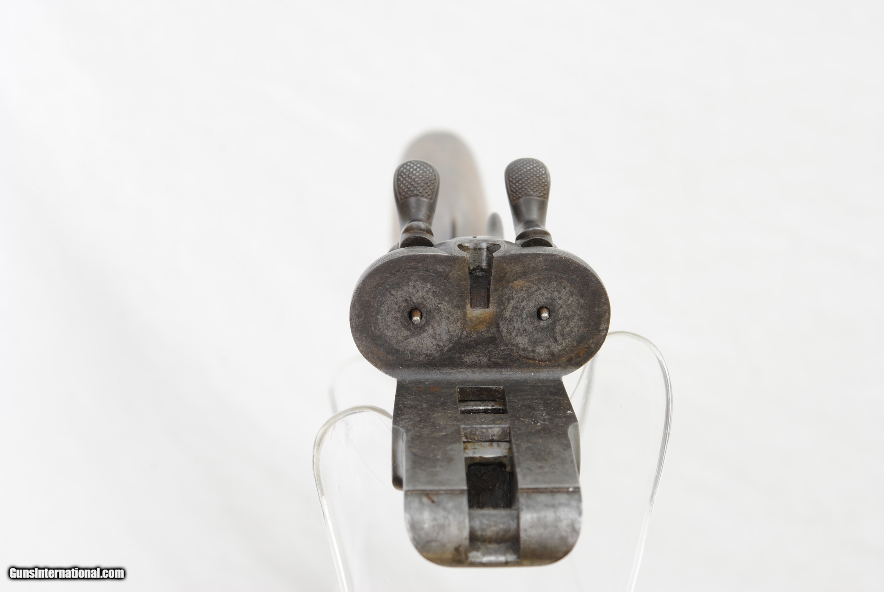 Description: Colt Model 1878 shotgun. Antique, can be shipped directly as local law allows. Barrels are 31 1/4". Chambers are 3". Mirror bores with scattered smooth (not deep) pitting. Barrels would rate "6" or "7" on a 10 point scale. Original barrel brown on exterior of barrels. Tight on face / no loose ribs / no cracks to wood. Forend is missing ebony inlayed tip. Examined locks and found them in excellent condition with all original parts. Hammers are rebounding. Checkering has worn smooth. LOP is 14 3/8" with original worn Colt buttplate. As an antique this shotgun can be shipped directly as local law allows. Shipping is $75. SOLD Antique: Yes Shotgun Gauge: 10 Gauge |
